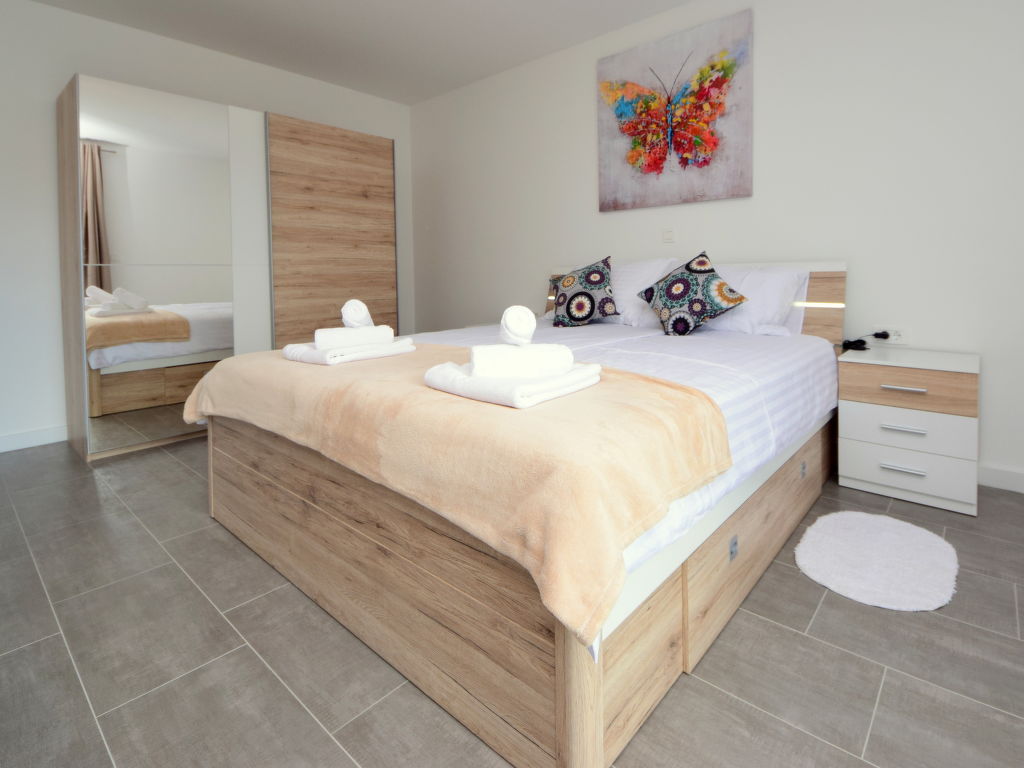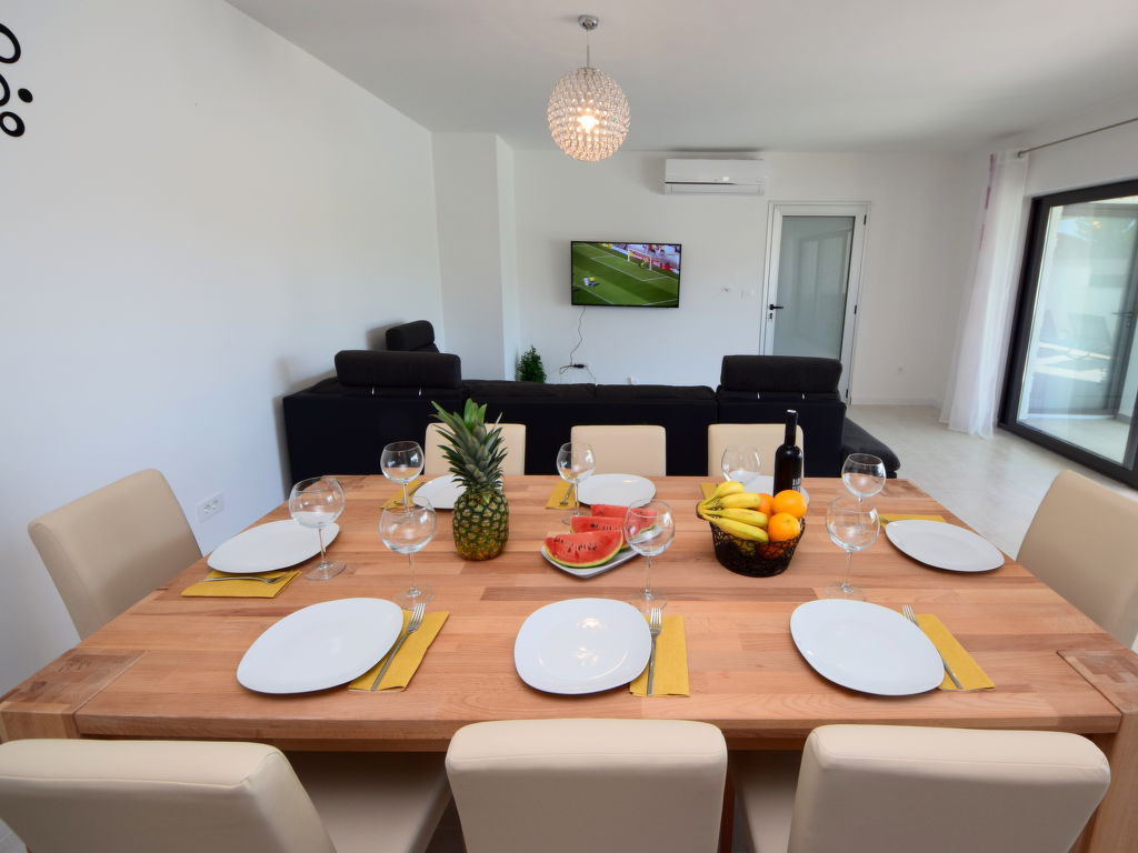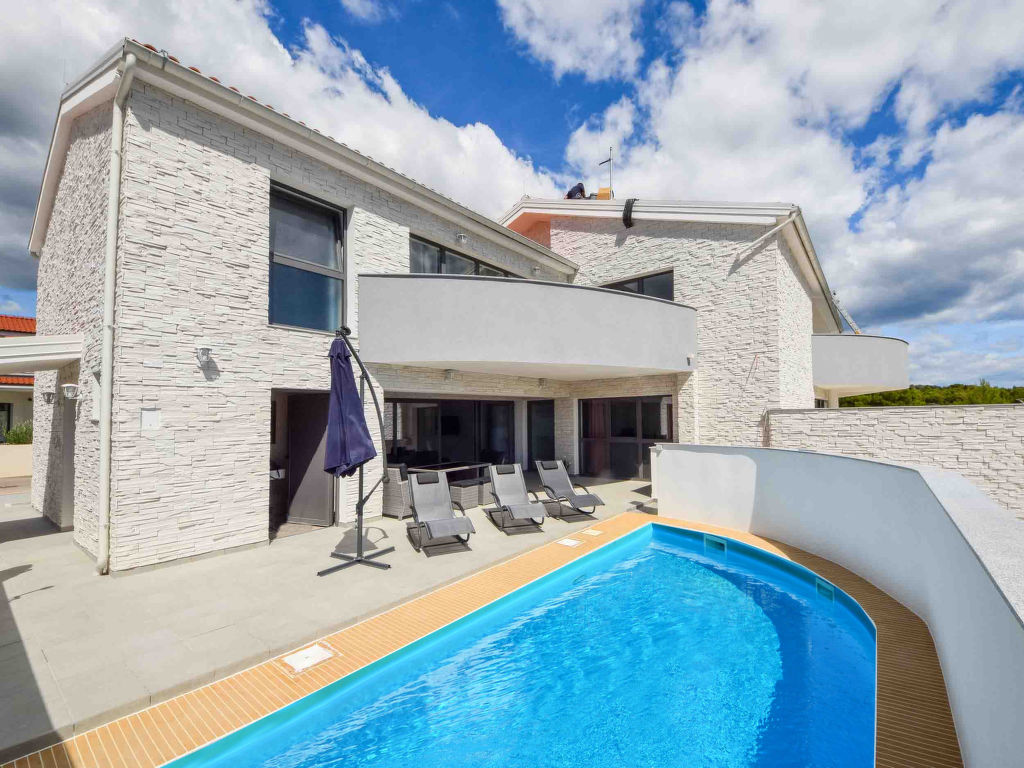 Tribunj 5 km von Vodice: Doppelhaus "West", auf 2 Stockwerken, Baujahr 2018. Im Weiler Sovlje, 1.5 km vom Zentrum von Tribunj, ruhige, sonnige Lage, 250 m vom Meer, 450 m vom Strand. Zur Mitbenutzung: Grundstück 400 m2. Gartenmöbel, Grill, Kinderspielplatz (Rutschbahn, Schaukel). Zur Alleinbenutzung: Schwimmbad (20 m2, 150 cm tief, 01.05.-31.10.) mit Innentreppe. Ungleichmässige Schwimmbadform, WC im Poolbereich, Aussendusche. Im Hause: Internetzugang, Waschmaschine, Wäschetrockner. Koch möglich (extra). Parkplatz (für 3 Autos) beim Haus auf dem Grundstück. Einkaufsgeschäft 1 km, Restaurant 200 m, Kieselstrand, betonierter Strand 450 m.