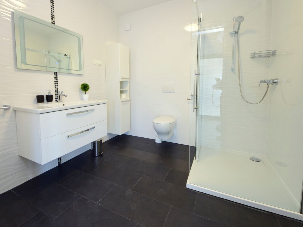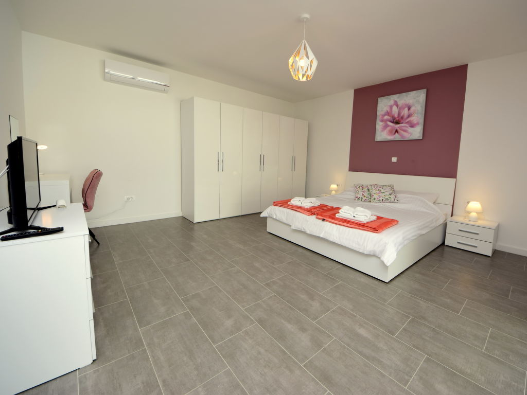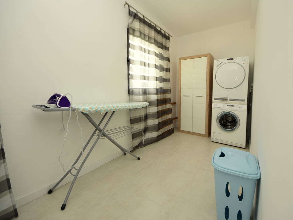 5-Zimmer-Doppelhaushälfte 260 m2 auf 2 Stockwerken, Südwestlage. Modern eingerichtet: Wohn-/Esszimmer 40 m2 mit 1 Doppeldiwanbett (150 cm, Länge 220 cm), Sat-TV (Flachbildschirm), Klimaanlage. Ausgang zur Terrasse. 1 Zimmer 40 m2 mit 1 franz. Bett (180 cm, Länge 200 cm), Dusche/WC und Sat-TV (Flachbildschirm), Klimaanlage. Ausgang zur Terrasse. Offene Küche (Backofen, Geschirrspüler, 4 Glaskeramikherd Platten, Mikrowelle, Tiefkühler, elektrische Kaffeemaschine). Sep. WC. Obergeschoss: 1 Zimmer 30 m2 mit 1 franz. Bett (180 cm, Länge 200 cm), Dusche/WC und Sat-TV (Flachbildschirm), Klimaanlage. Ausgang zur Terrasse. 1 Zimmer 40 m2 mit 1 franz. Bett (180 cm, Länge 200 cm), Dusche/WC und Sat-TV (Flachbildschirm), Klimaanlage. Ausgang zur Terrasse. 1 Zimmer 30 m2 mit 1 franz. Bett (180 cm, Länge 200 cm), Dusche/WC und Sat-TV (Flachbildschirm), Klimaanlage. Ausgang zur Terrasse. Warmluftheizung. Terrasse 55 m2 teilweise überdacht, Terrasse 12 m2 teilweise überdacht. Terrassenmöbel, Liegestühle. Sicht auf das Schwimmbad. Zur Verfügung: Safe, Bügeleisen, Babybett. Internet (Wireless LAN, gratis). Terrasse 10 m2.
