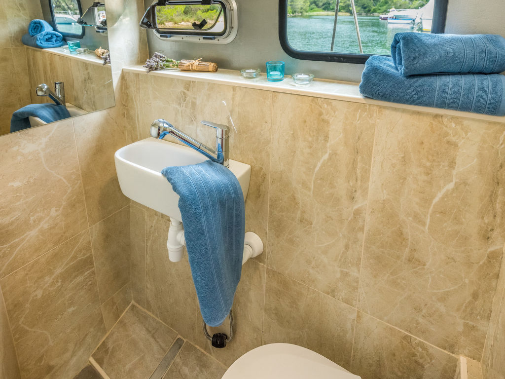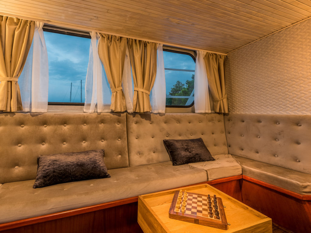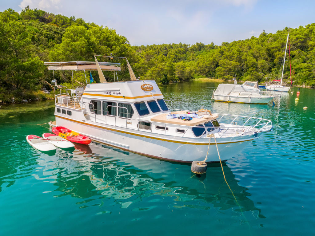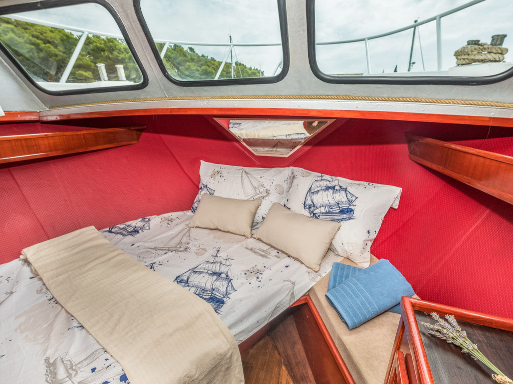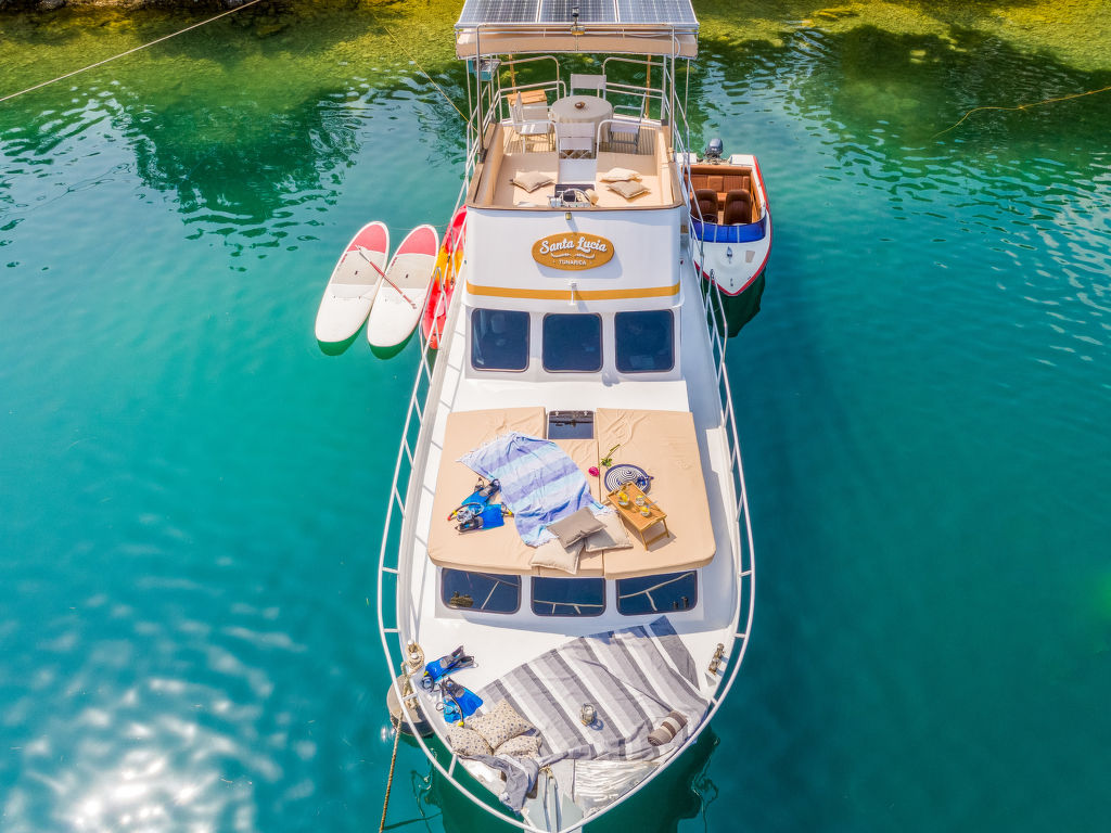 Sveti Lovreč Labinski 20 km von Rabac: Das Hausboot liegt in einer wunderschönen, geschützten und ruhigen Bucht vor Anker. Das mit Sorgfalt und Geschick renovierte Boot bietet alles für einen schönen und entspannten Urlaub. Die Städte Rabac und Labin bieten Unterhaltungsmöglichkeiten und sind in unmittelbarer Nähe. Hausboot "Santa Lucia". 16 km vom Zentrum von Labin, ruhige, sonnige Lage, direkt am Meer, direkt am Strand. Zur Alleinbenutzung: Aussendusche, Terrasse (6 m2), Gartenmöbel, Grill. Im Hause: Internetzugang. Zufahrt bis 100 m zum Haus (800 m Naturweg). Öffentliche Parkplätze 100 m. Einkaufsgeschäft, Restaurant, Kieselstrand 500 m, Felsstrand 10 m. Wanderwege ab Haus 100 m, Radweg 150 m. Verfügbar: Schnellboot (10 PS) für den Transfer vom Land zum Hausboot und vom Hausboot zum Land und für eine Besichtigung der nahe gelegenen Strände und Restaurants in der Bucht von Raša, im eigenen Arrangement (keine Lizenz erforderlich). Verfügbar: Kajak, 2x Stehpaddel, 4x Schnorchelausrüstung (alles im Preis inbegriffen). Der Eigentümer kann die Lieferung von vorbereiteten Gerichten, Lebensmitteln und anderen Haushaltsgegenständen arrangieren (auf Anfrage, gegen Aufpreis). Desinfektionsmittel sind in der Unterkunft erhältlich.