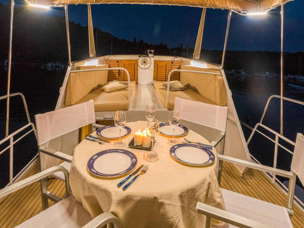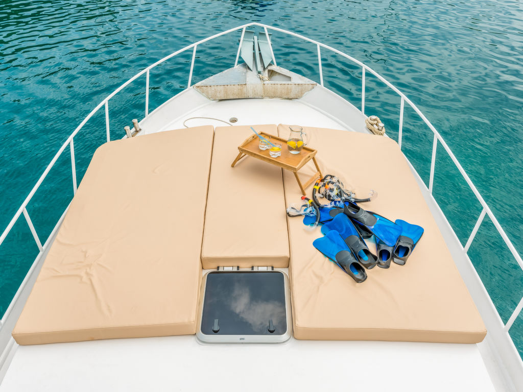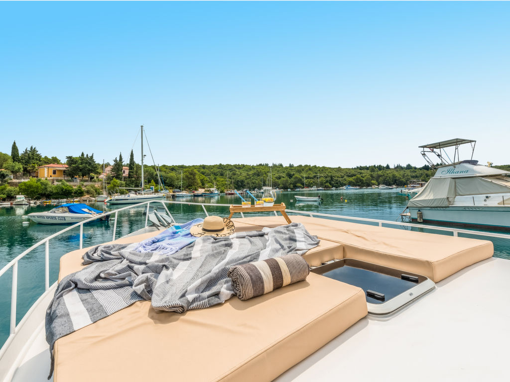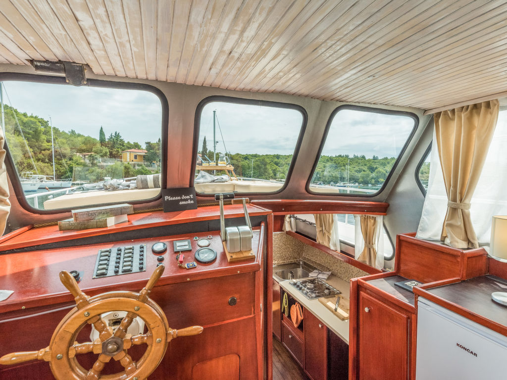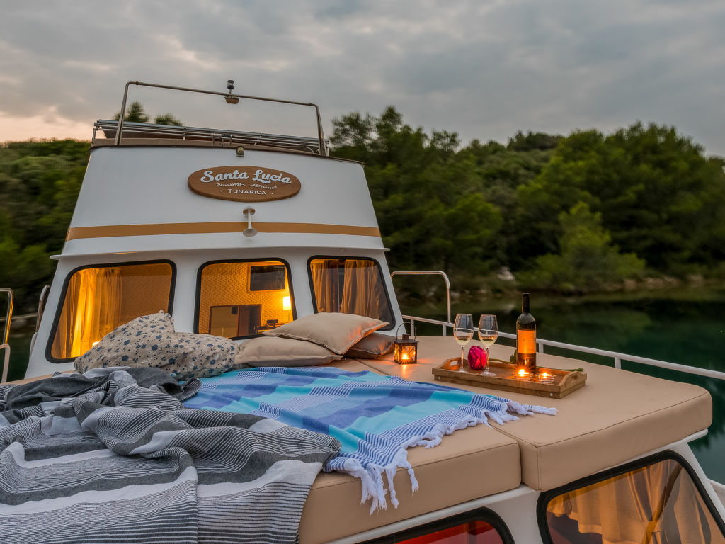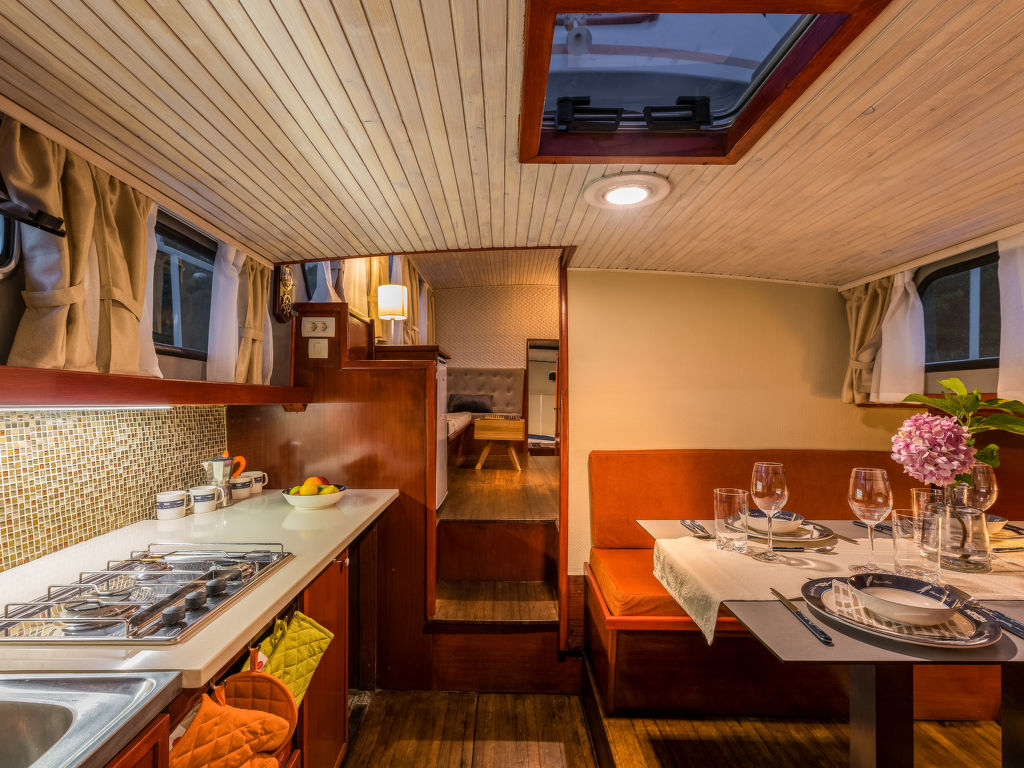 Sveti Lovreč Labinski 20 km von Rabac: Das Hausboot liegt in einer wunderschönen, geschützten und ruhigen Bucht vor Anker. Das mit Sorgfalt und Geschick renovierte Boot bietet alles für einen schönen und entspannten Urlaub. Die Städte Rabac und Labin bieten Unterhaltungsmöglichkeiten und sind in unmittelbarer Nähe. Hausboot "Santa Lucia". 16 km vom Zentrum von Labin, ruhige, sonnige Lage, direkt am Meer, direkt am Strand. Zur Alleinbenutzung: Aussendusche, Terrasse (6 m2), Gartenmöbel, Grill. Im Hause: Internetzugang. Zufahrt bis 100 m zum Haus (800 m Naturweg). Öffentliche Parkplätze 100 m. Einkaufsgeschäft, Restaurant, Kieselstrand 500 m, Felsstrand 10 m. Wanderwege ab Haus 100 m, Radweg 150 m. Verfügbar: Schnellboot (10 PS) für den Transfer vom Land zum Hausboot und vom Hausboot zum Land und für eine Besichtigung der nahe gelegenen Strände und Restaurants in der Bucht von Raša, im eigenen Arrangement (keine Lizenz erforderlich). Verfügbar: Kajak, 2x Stehpaddel, 4x Schnorchelausrüstung (alles im Preis inbegriffen). Der Eigentümer kann die Lieferung von vorbereiteten Gerichten, Lebensmitteln und anderen Haushaltsgegenständen arrangieren (auf Anfrage, gegen Aufpreis). Desinfektionsmittel sind in der Unterkunft erhältlich.