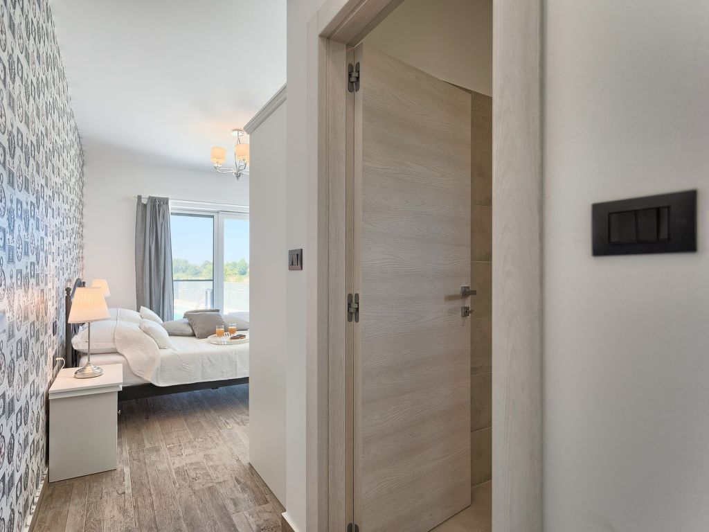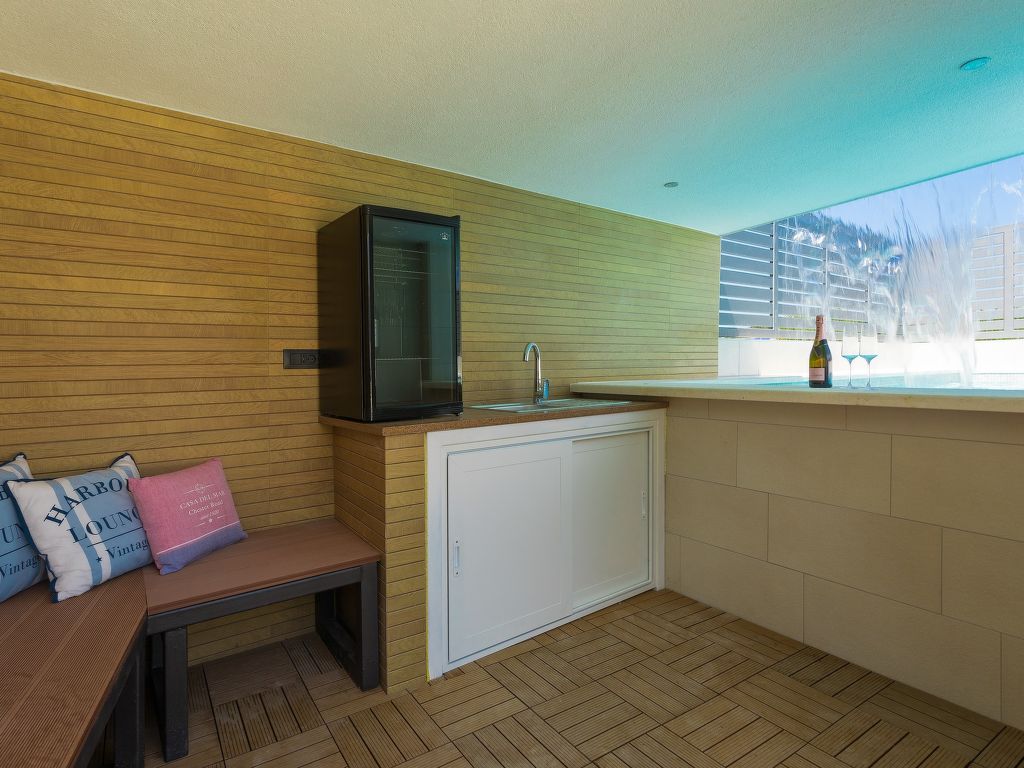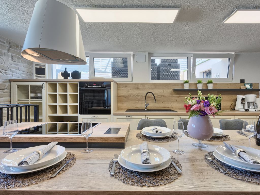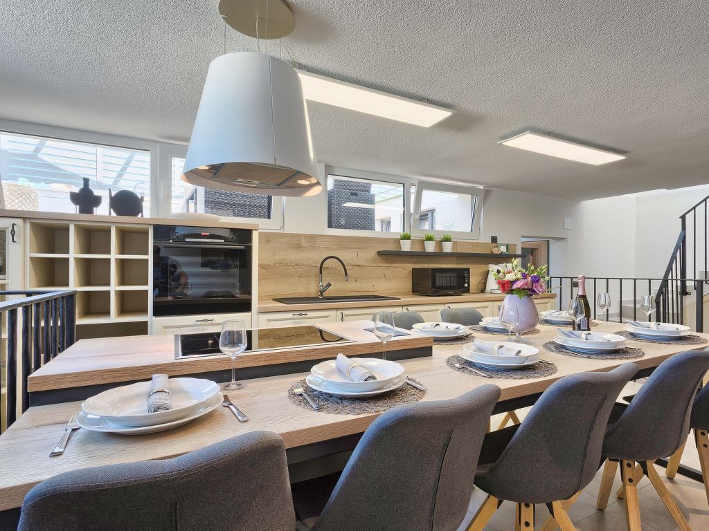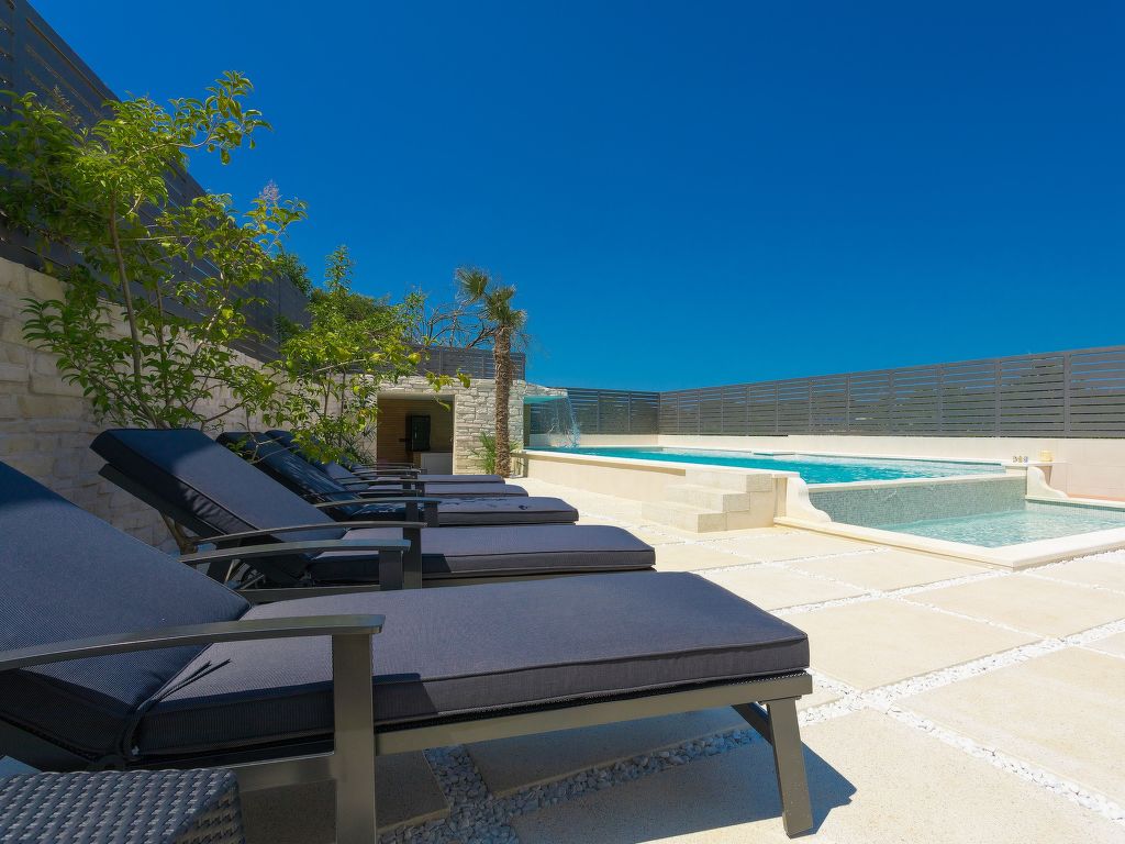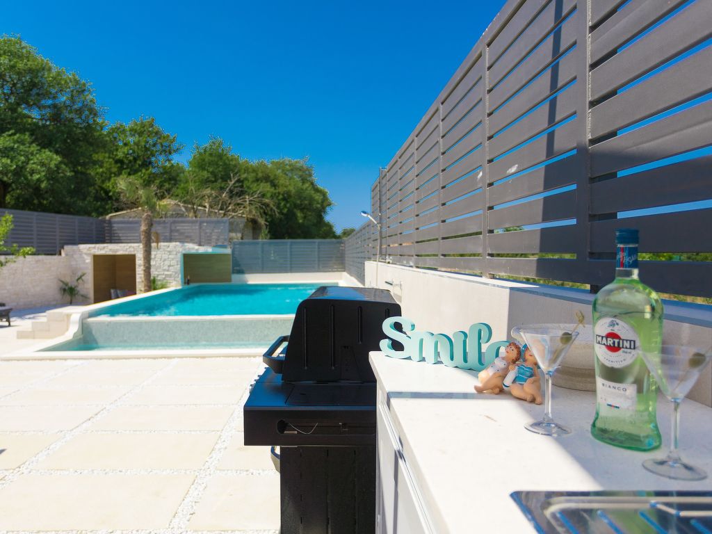 Moderne Villa "La Mer", auf 2 Stockwerken. Im Ortsteil Veli Vrh, 3 km vom Zentrum von Pula, sonnige Lage, 3 km vom Meer, in einer Sackgasse. Zur Alleinbenutzung: Grundstück 400 m2 (eingezäunt), Garten mit Pflanzen, Schwimmbad eckig, beheizt (12 x 5 m, 140 cm tief, 01.01.-31.12.) mit Innentreppe. Kinderbecken, Aussendusche, Terrasse (20 m2), Gartenmöbel. Im Hause: Internetzugang, Waschmaschine. Parkplatz beim Haus auf dem Grundstück. Einkaufsgeschäft 1 km, Supermarkt 2.5 km, Restaurant 1 km, Kieselstrand 4.5 km, Felsstrand 4.5 km. Tennis 5 km, Wanderwege ab Haus 200 m, Radweg 250 m. Nahe gelegene Sehenswürdigkeiten: Amphitheater 3 km, NP Brijuni 6 km. Schwimmbad beheizt (extra). Zur Mitbenutzung auf dem Nachbargrundstück mit dem Nachbarhaus HR2600.151, 30 m von der Villa: Hallenbad eckig, beheizt (6 x 5 m, Tiefe 140 cm, 01.01.-31.12., mit Innentreppe, mit Gegenstrom), Sprudelbad, Ruheraum, Wellnessbereich, Tischfußball, Tischtennis, Darts, Flipper, Kinderspielplatz (Rutsche), Fußballplatz (alles im Preis inbegriffen). Sauna, Massage (auf Anfrage, alles extra). Möglichkeit, 4 Fahrräder zu mieten (auf Anfrage, extra).