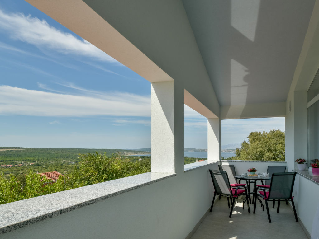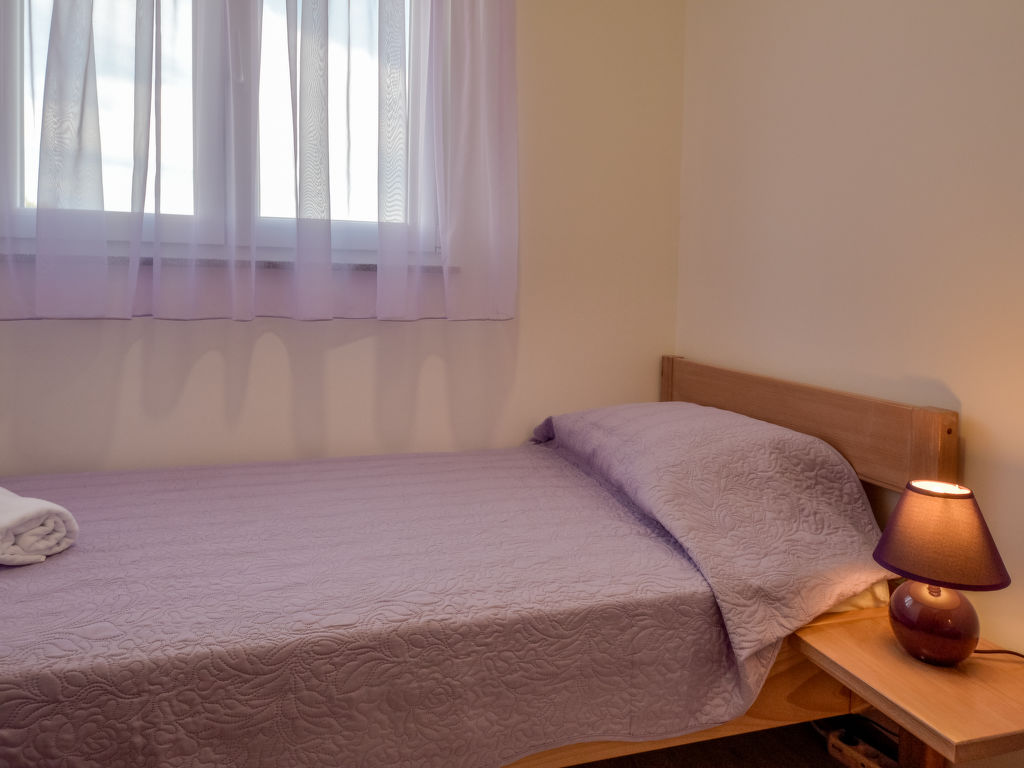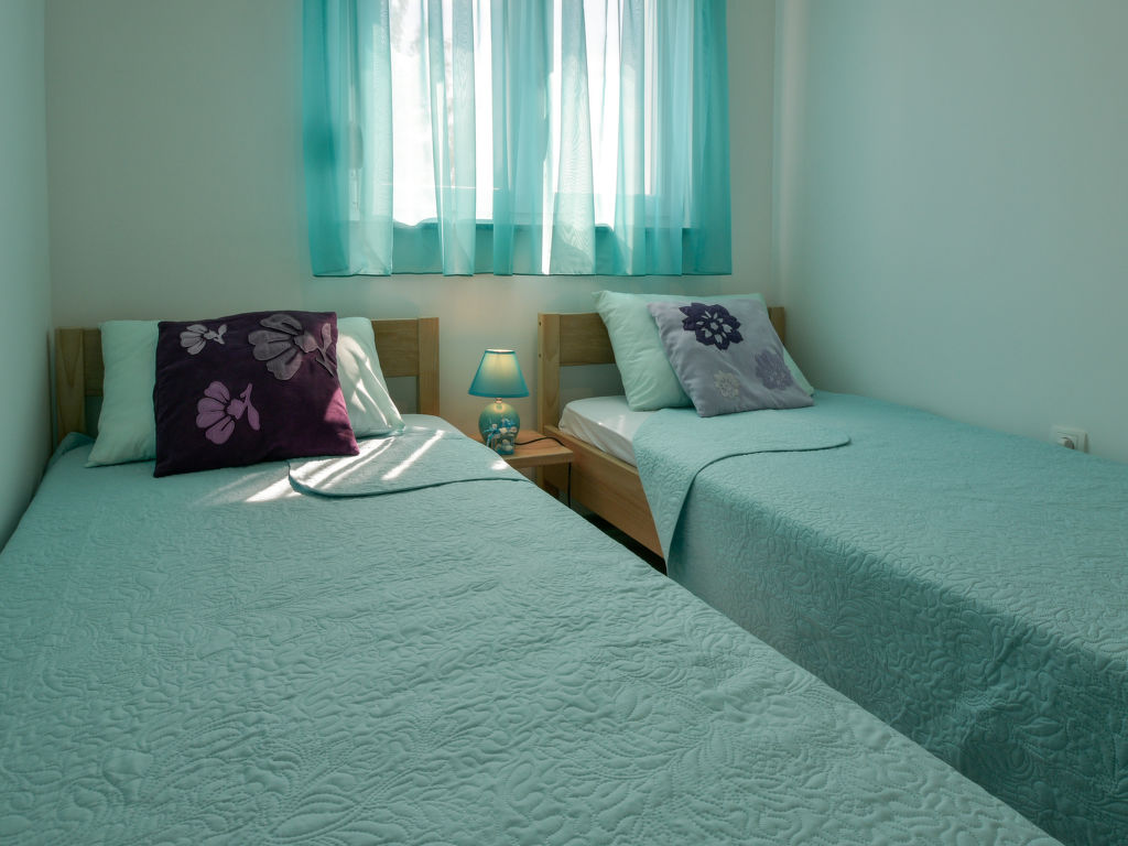 4-Zimmer-Wohnung 125 m2 im 1. Stock, Südwestlage. Wohn-/Esszimmer 50 m2 mit Sat-TV (Flachbildschirm), Klimaanlage. Ausgang zur Terrasse. 1 Zimmer mit 1 franz. Bett (160 cm, Länge 200 cm). 2 Zimmer, jedes Zimmer mit 2 Betten (90 cm, Länge 200 cm). Offene Küche (4 Kochplatten, Backofen, Geschirrspüler, Mikrowelle, Tiefkühler, elektrische Kaffeemaschine). Dusche/WC, sep. WC. Terrasse 20 m2, überdacht. Terrassenmöbel, Liegestühle. Fernsicht auf das Meer. Zur Verfügung: Waschmaschine, Safe, Haartrockner. Internet (Wireless LAN, gratis). Bitte beachten: eigener Eingang.