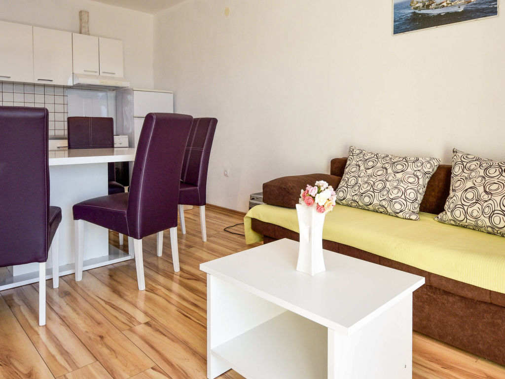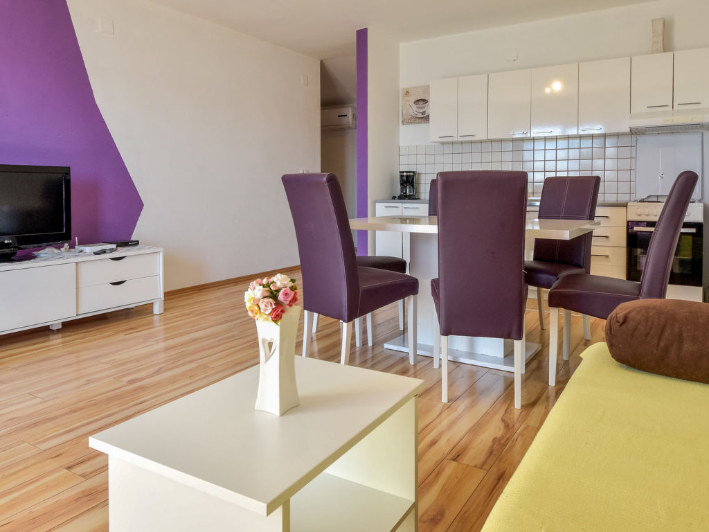 3-Zimmer-Wohnung 90 m2 im 2. Stock, Südwestlage. Wohn-/Esszimmer 30 m2 mit 1 Doppeldiwanbett (140 cm, Länge 200 cm), Sat-TV (Flachbildschirm). Ausgang zur Terrasse. Eingang mit Klimaanlage. 1 abgeschrägtes Zimmer, Deckenhöhe 150 - 250 cm mit 2 Betten (90 cm, Länge 200 cm). 1 Zimmer mit 1 Doppelbett (2 x 90 cm, Länge 200 cm), Dusche/WC. Offene Küche (4 Kochplatten, Backofen, Geschirrspüler, Tiefkühler, elektrische Kaffeemaschine). Dusche/WC. Klimaanlage (extra). Terrasse 13 m2 teilweise überdacht. Terrassenmöbel. Sicht auf das Meer. Zur Verfügung: Waschmaschine. Internet (Wireless LAN, gratis).