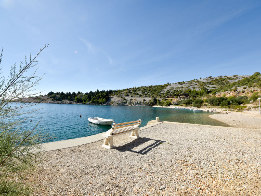 Ribarica 5 km von Karlobag: Mehrfamilienhaus "Beba". 80 m vom Meer, 80 m vom Strand, an einer Hauptstrasse. Zur Mitbenutzung: Grundstück 300 m2 (eingezäunt). Grill. Im Hause: Internetzugang. Parkplatz beim Haus auf dem Grundstück. Einkaufsgeschäft, Restaurant 250 m, Kieselstrand 80 m.