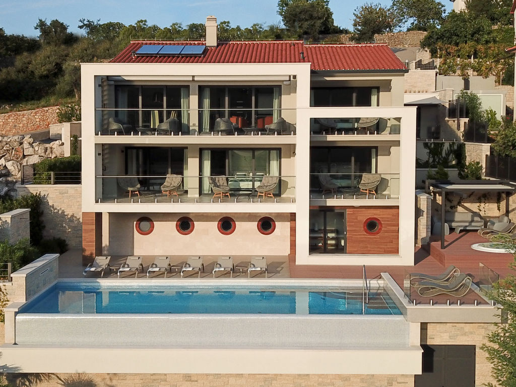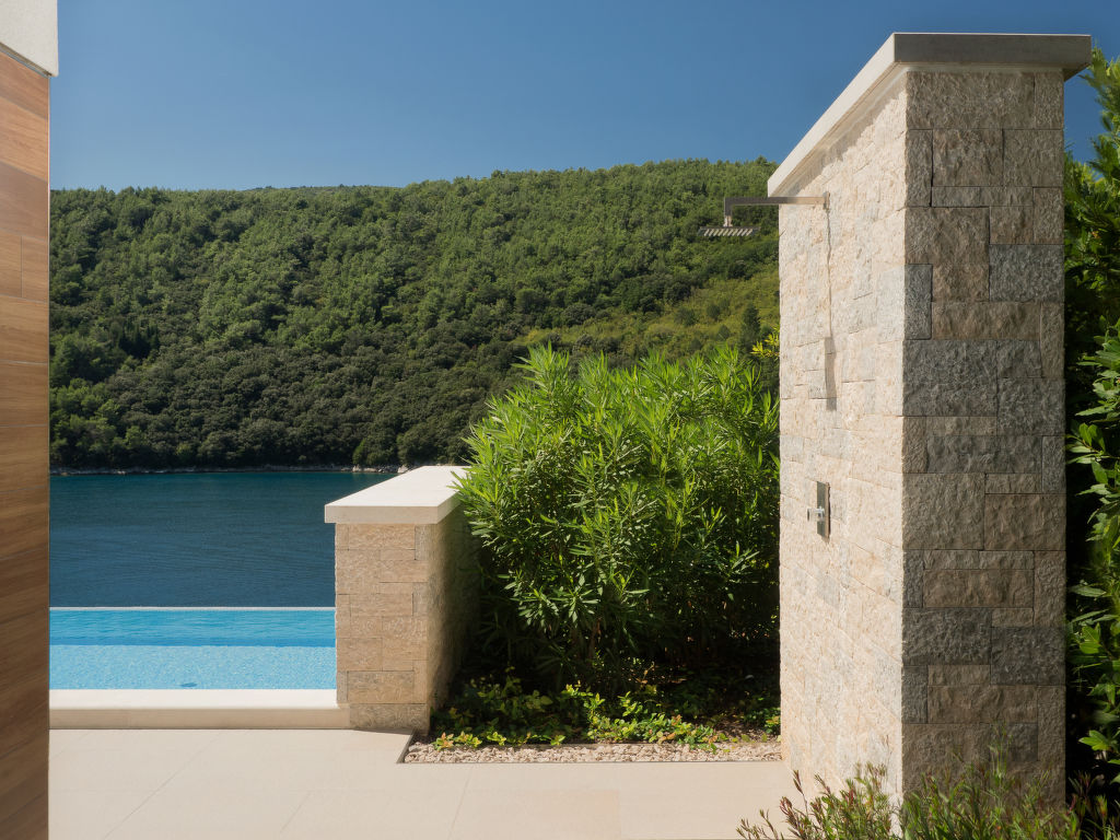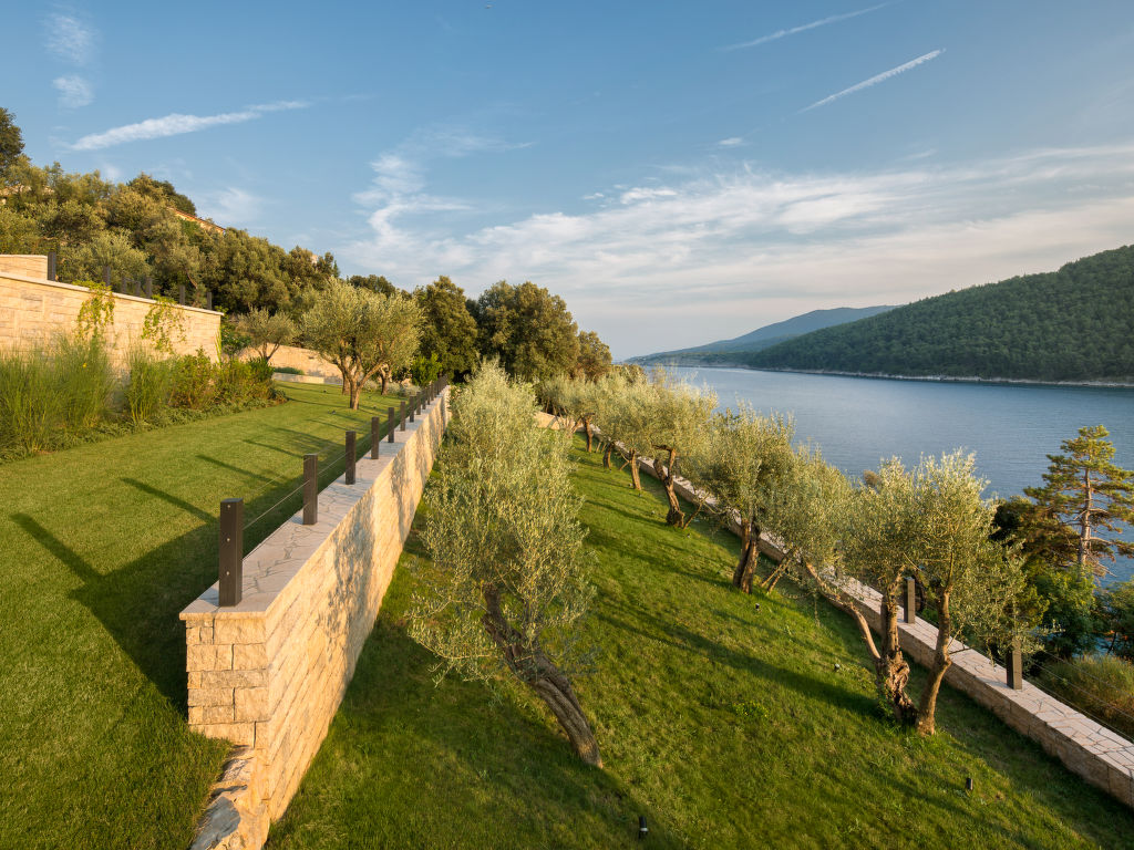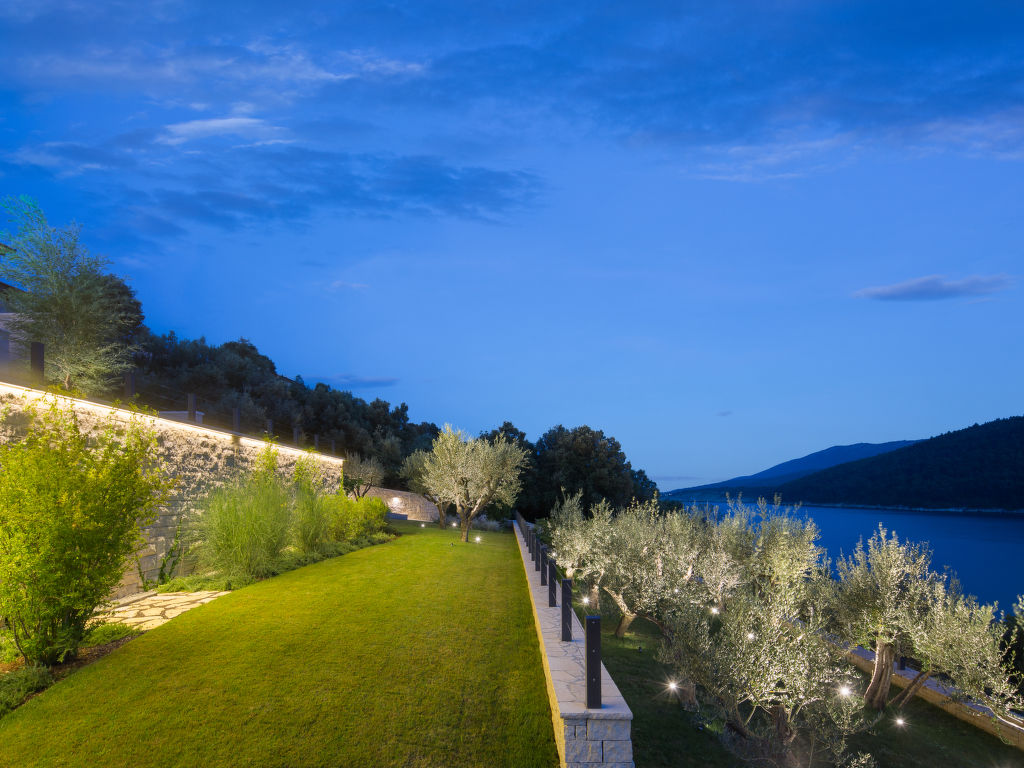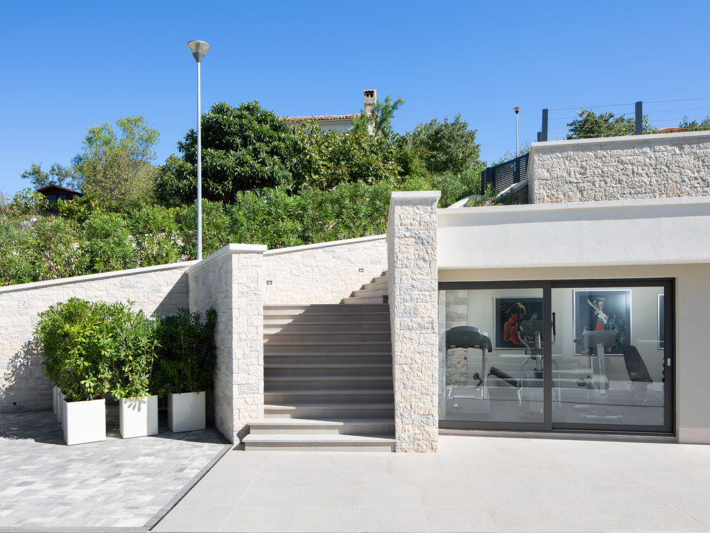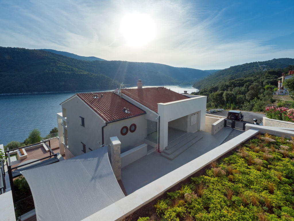 Prtlog (Duga Luka) 5 km von Labin: Moderne, luxuriöse Villa "Vlastelini II", auf 2 Stockwerken, Baujahr 2018. Ruhige, sonnige Lage, 30 m vom Meer, 30 m vom Strand, direkter Zugang zum Strand. Zur Alleinbenutzung: Grundstück 2'500 m2 (eingezäunt), schöner, gepflegter Garten Pflanzen und Bäumen, Schwimmbad eckig, beheizt (12 x 4 m, 50 m2, 140 cm tief, 21.03.-31.10.) mit Innentreppe. WC im Poolbereich, Aussendusche, Sprudelbad, Terrasse (25 m2), Gartenmöbel. Im Hause: Internetzugang, Sauna, Fitnessraum, Billard, Zentralheizung, Alarmanlage, Waschmaschine, Wäschetrockner. Koch möglich (extra). Parkplatz (für 4 Autos) beim Haus auf dem Grundstück. Supermarkt 5 km, Restaurant 5 km, Kieselstrand, Felsstrand 30 m. Wanderwege ab Haus 100 m, Radweg 150 m. Bitte beachten: Jugendgruppen nur auf Anfrage. Private Bootsanlegestelle, auf Anfrage. Schwimmbad mit Gegenstromanlage und mit Wasserfall. Es ist notwendig 7 Tage im Voraus bekannt zu geben, ob die Schwimmbadheizung eingeschaltet werden soll. Von Gruppen junger Leute wird ein doppeltes Pfand verlangt bei der Ankunft. Massage (extra) auf Anfrage.