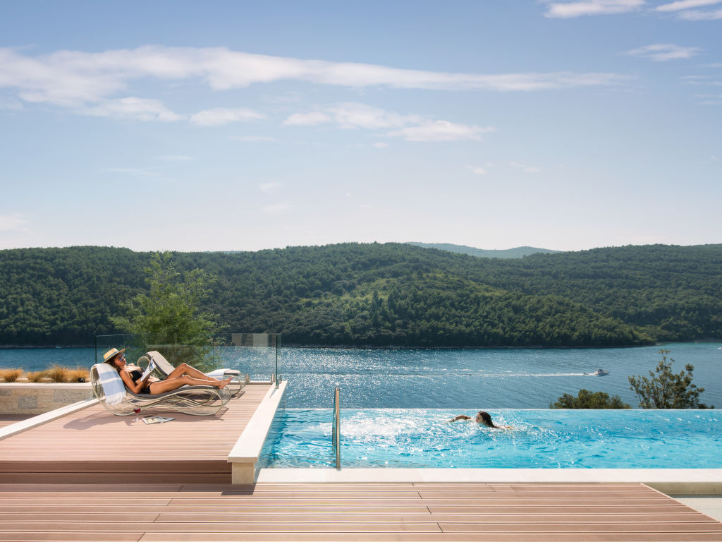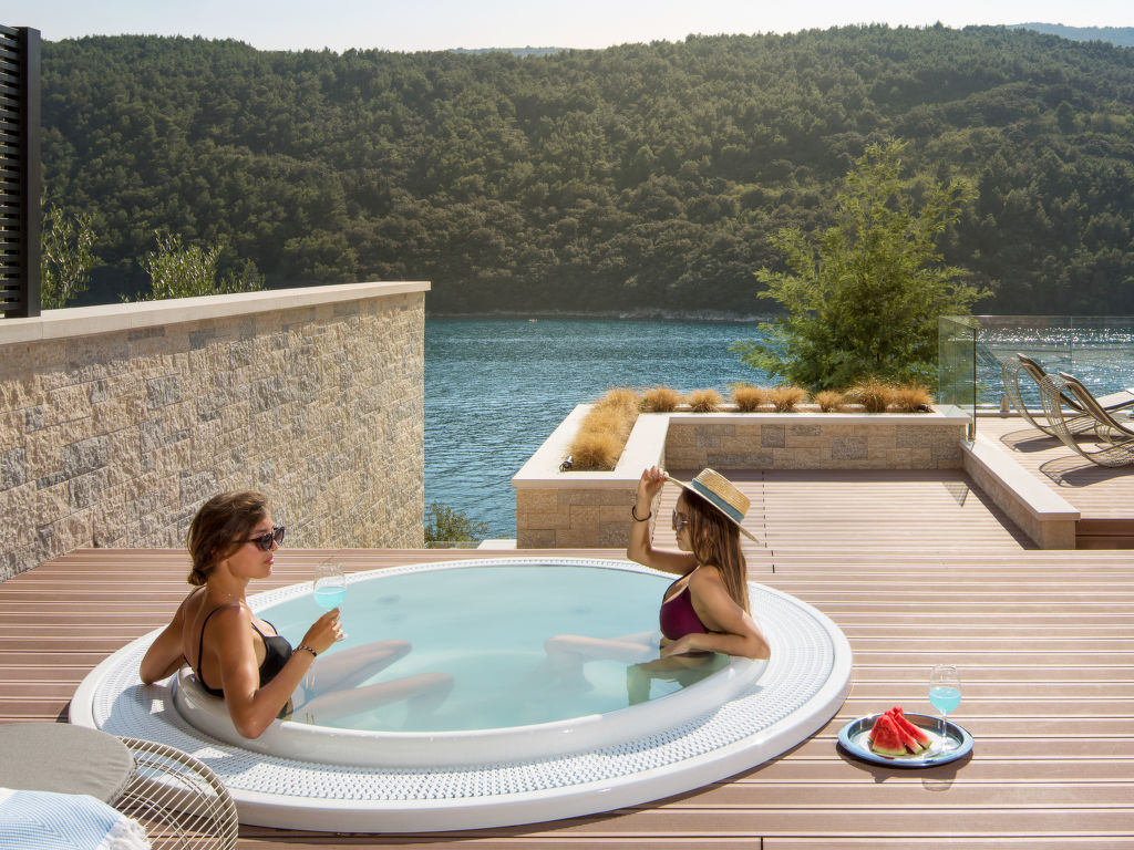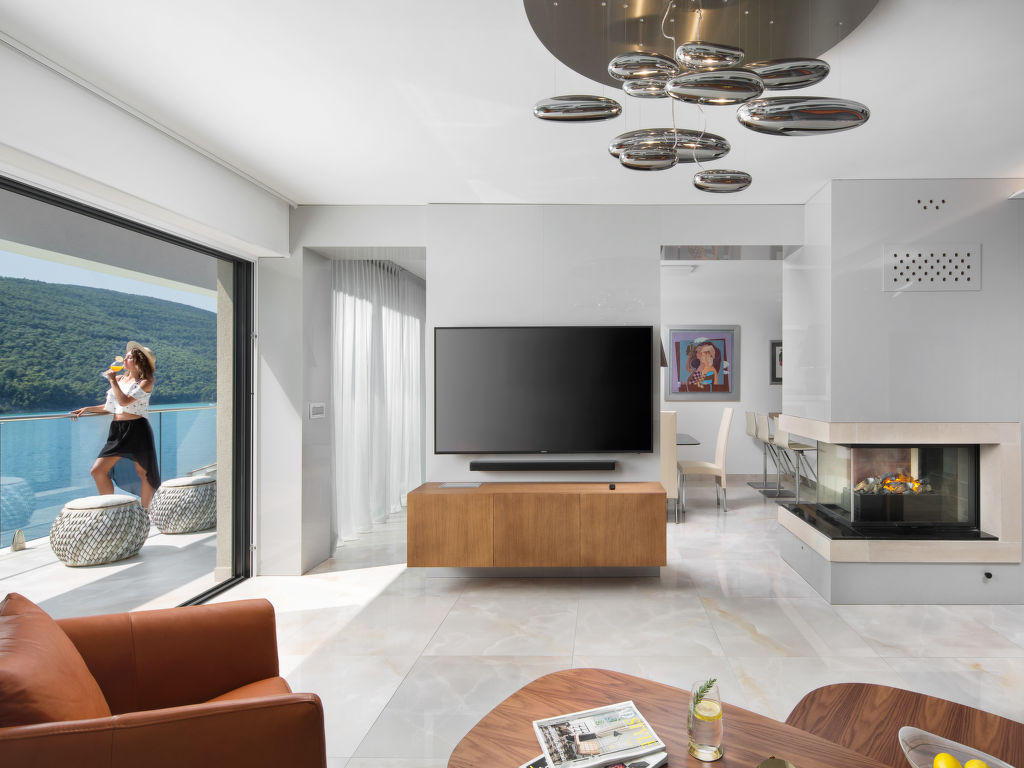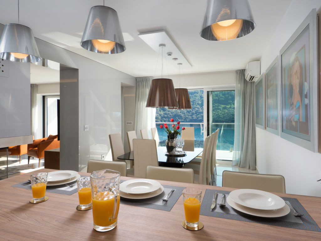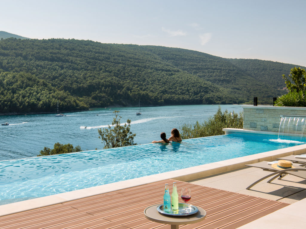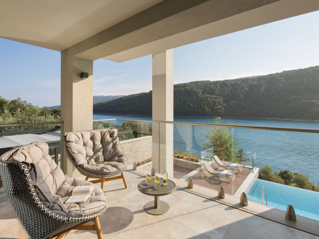 Prtlog (Duga Luka) 5 km von Labin: Moderne, luxuriöse Villa "Vlastelini II", auf 2 Stockwerken, Baujahr 2018. Ruhige, sonnige Lage, 30 m vom Meer, 30 m vom Strand, direkter Zugang zum Strand. Zur Alleinbenutzung: Grundstück 2'500 m2 (eingezäunt), schöner, gepflegter Garten Pflanzen und Bäumen, Schwimmbad eckig, beheizt (12 x 4 m, 50 m2, 140 cm tief, 21.03.-31.10.) mit Innentreppe. WC im Poolbereich, Aussendusche, Sprudelbad, Terrasse (25 m2), Gartenmöbel. Im Hause: Internetzugang, Sauna, Fitnessraum, Billard, Zentralheizung, Alarmanlage, Waschmaschine, Wäschetrockner. Koch möglich (extra). Parkplatz (für 4 Autos) beim Haus auf dem Grundstück. Supermarkt 5 km, Restaurant 5 km, Kieselstrand, Felsstrand 30 m. Wanderwege ab Haus 100 m, Radweg 150 m. Bitte beachten: Jugendgruppen nur auf Anfrage. Private Bootsanlegestelle, auf Anfrage. Schwimmbad mit Gegenstromanlage und mit Wasserfall. Es ist notwendig 7 Tage im Voraus bekannt zu geben, ob die Schwimmbadheizung eingeschaltet werden soll. Von Gruppen junger Leute wird ein doppeltes Pfand verlangt bei der Ankunft. Massage (extra) auf Anfrage.