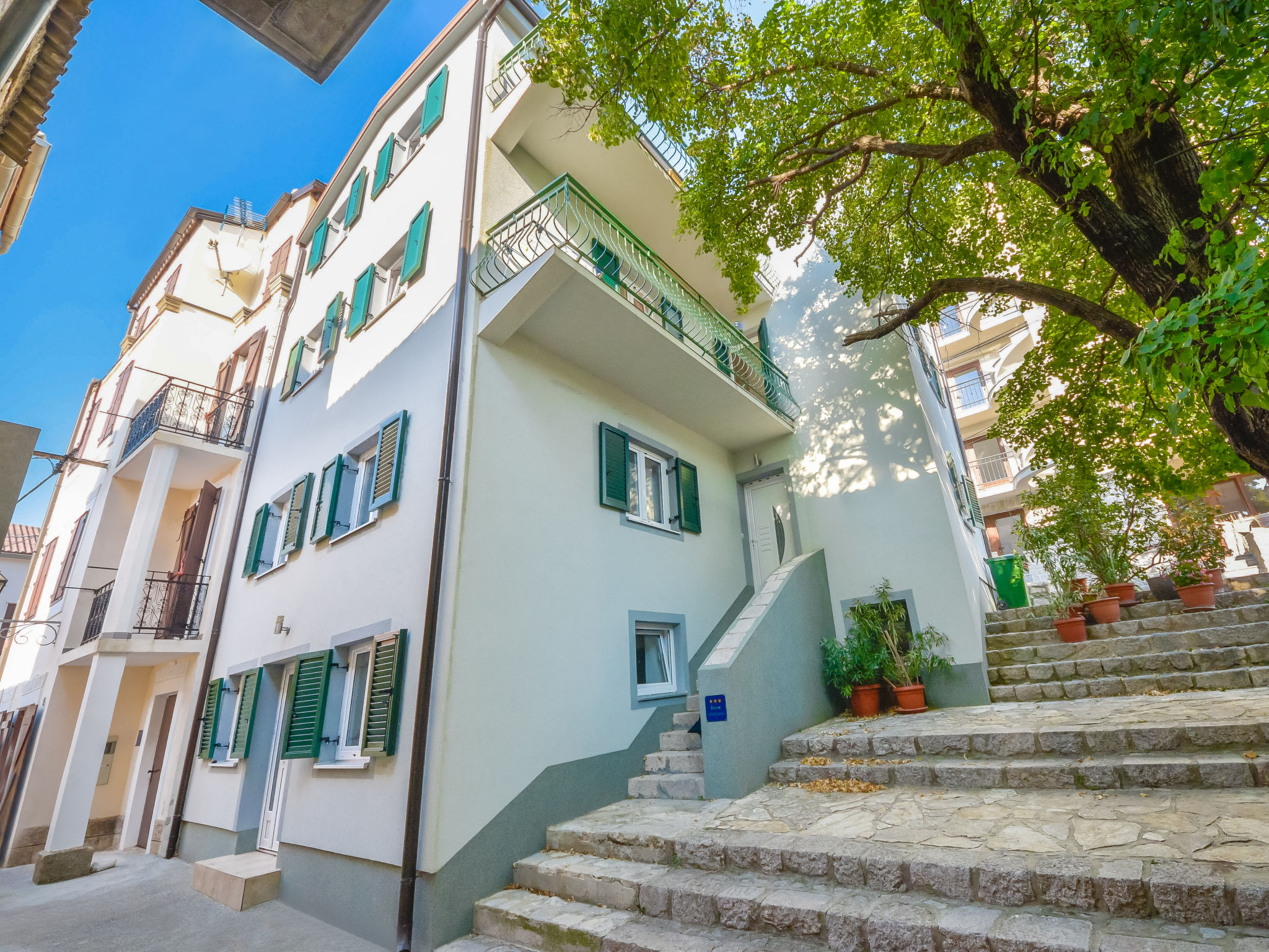 Altes Reihenhaus "Angelina", Baujahr 1508, renoviert im Jahre 2014. 3 Wohnungen im Ferienhaus. Im Herzen der Stadt, 60 m vom Meer, 200 m vom Strand. Zur Mitbenutzung: Grundstück 80 m2. Aussendusche, Gartenmöbel, Grill. Im Hause: Internetzugang. Zufahrt bis 50 m zum Haus. Öffentliche Parkplätze 130 m extra. Einkaufsgeschäft 100 m, Restaurant 50 m, betonierter Strand 200 m. Außendusche, Gartenmöbel, Grill zur Mitbenutzung auf dem Grundstück von 25 m2, 10 m vom Reihenhaus.
