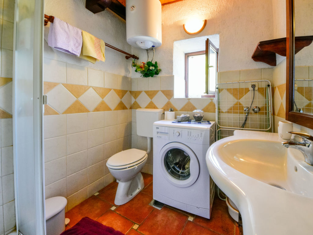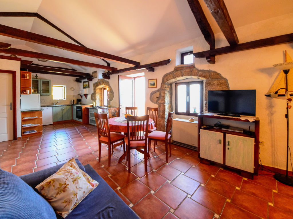 Doppelhaus "Stefi". Im Weiler Sučići, 3 km vom Zentrum von Mošćenička Draga, ruhige, sonnige Lage am Hang, 3 km vom Meer, 3 km vom Strand, in einer Sackgasse, im Grünen. Zur Alleinbenutzung: Terrasse (30 m2), Gartenmöbel, Grill. Im Hause: Internetzugang, Waschmaschine. Schmale Zufahrt bis 60 m zum Haus. Parkplatz (für 2 Autos, überdacht) in 80 m. Einkaufsgeschäft 3 km, Restaurant 3 km, Kieselstrand 3 km, Strandbad 3 km. Erdgeschoss ist geschlossen und nicht bewohnt.