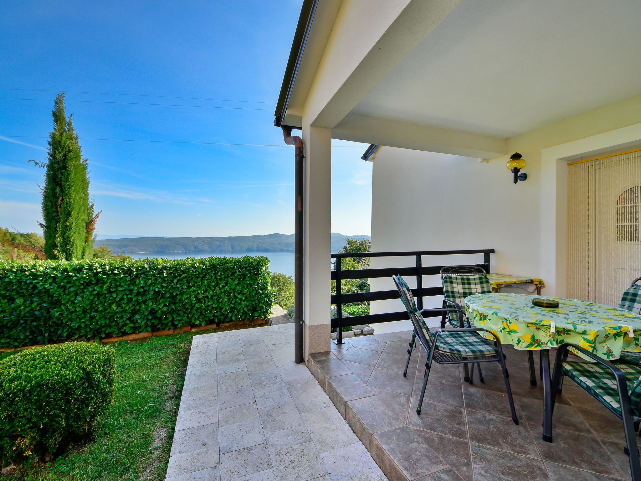 Doppelhaus "Bruna". Im Weiler Zagore, 1.8 km vom Zentrum von Brseč, sonnige, erhöhte Lage, 3 km vom Meer, 3 km vom Strand. Zur Alleinbenutzung: Grundstück 300 m2 mit Rasen 25 m2, Pflanzen. Terrasse (16 m2), Gartenmöbel, Grill. Im Hause: Internetzugang, Waschmaschine. Parkplatz beim Haus auf dem Grundstück. Einkaufsgeschäft 1.8 km, Restaurant 1.8 km, Kieselstrand 3 km. Erdgeschoss ist geschlossen und nicht bewohnt.