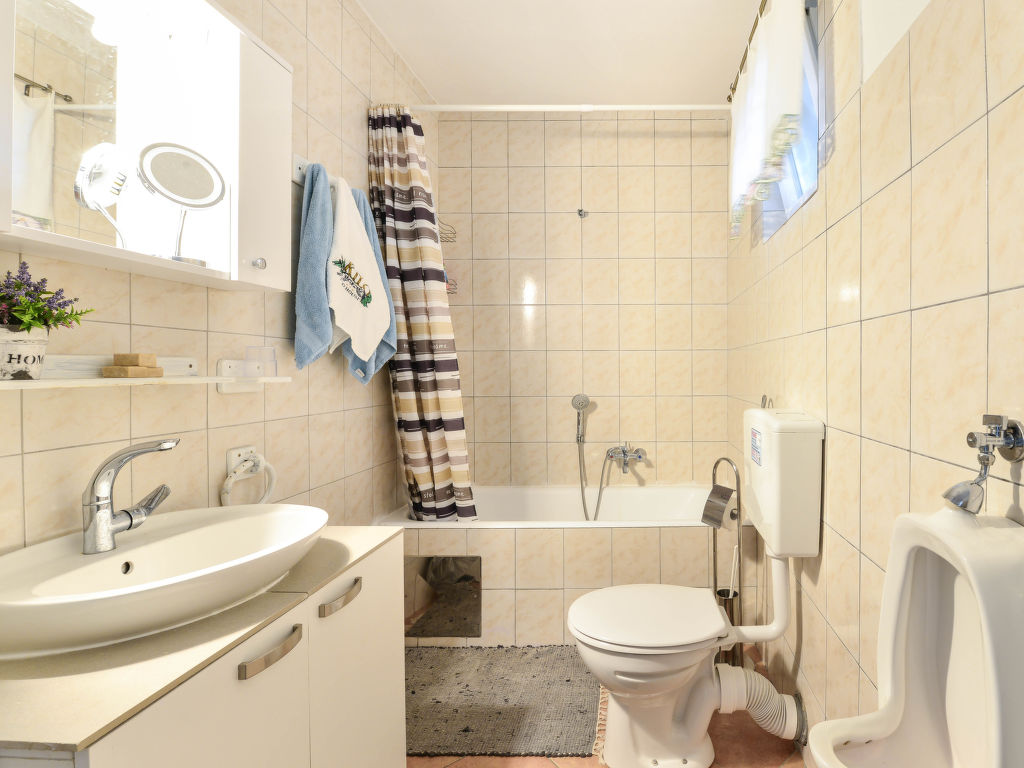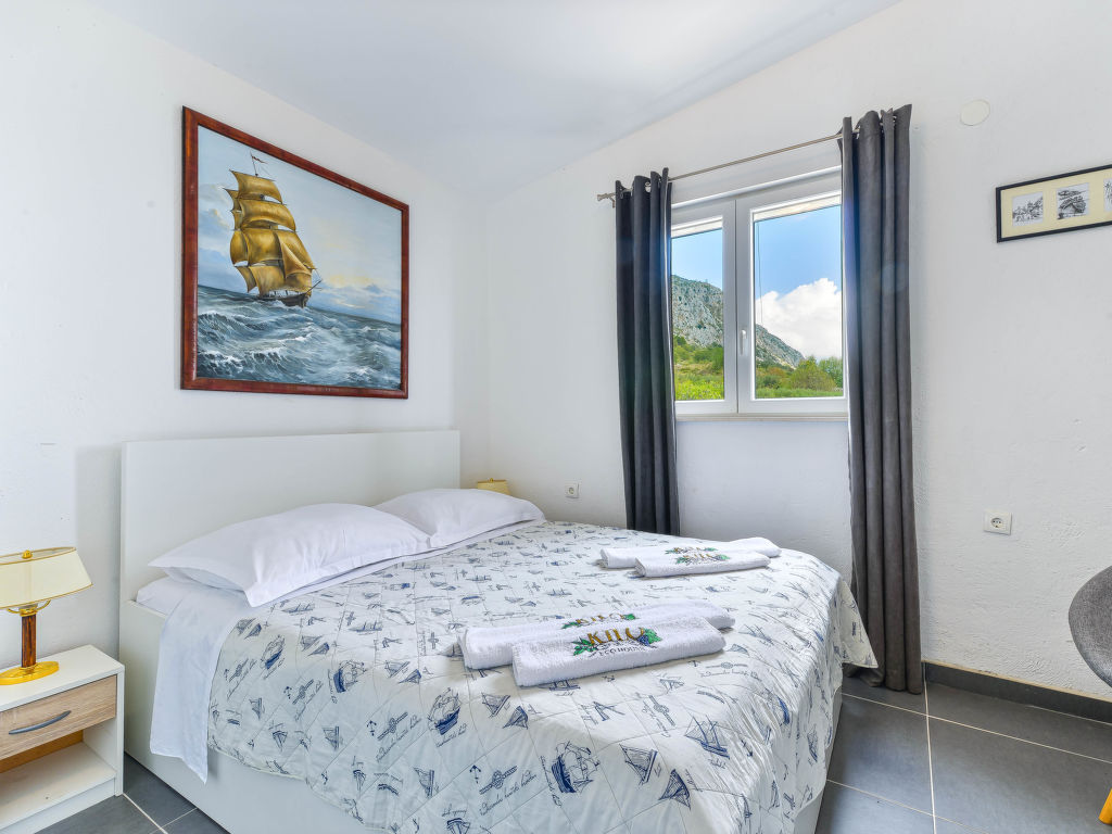 Einfamilienhaus "Kilo (OMI305)", auf 2 Stockwerken. Oberhalb von Krilo Jesenice, 5 km vom Zentrum von Krilo Jesenice, 6 km vom Zentrum von Dugi Rat, 11 km vom Zentrum von Omiš, alleinstehende Lage, 5 km vom Meer. Zur Alleinbenutzung: Grundstück 400 m2 mit Rasen und Pflanzen, Schwimmbad (7 x 3 m, 24 m2, 150 cm tief, 04.04.-06.11.) mit Innentreppe. Pergola, Terrasse, Gartenmöbel, Grill. Im Hause: Internetzugang, Waschmaschine. 650 m lange schmale Zufahrt (Naturweg). Parkplatz (für 3 Autos) auf dem Grundstück. Einkaufsgeschäft 5 km, Kieselstrand 5 km. Zur privaten Nutzung: Traditionelle Taverne. Videoüberwachung der Immobilie.