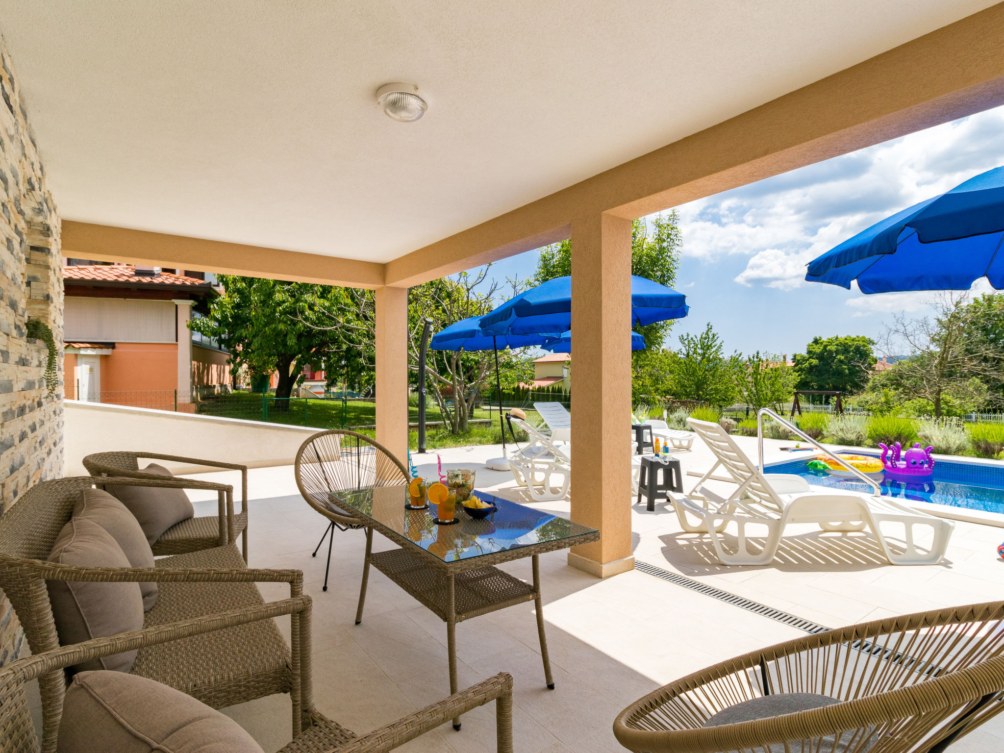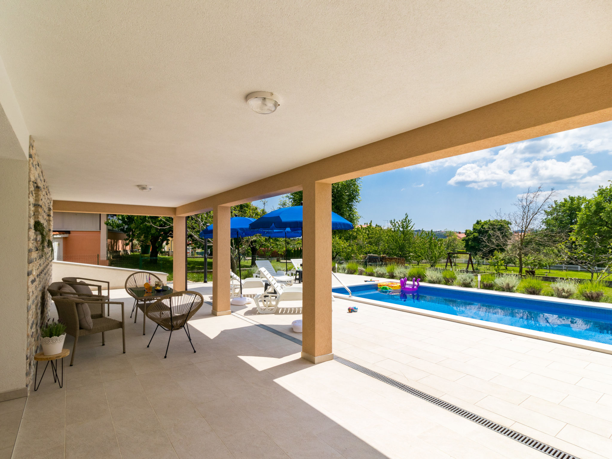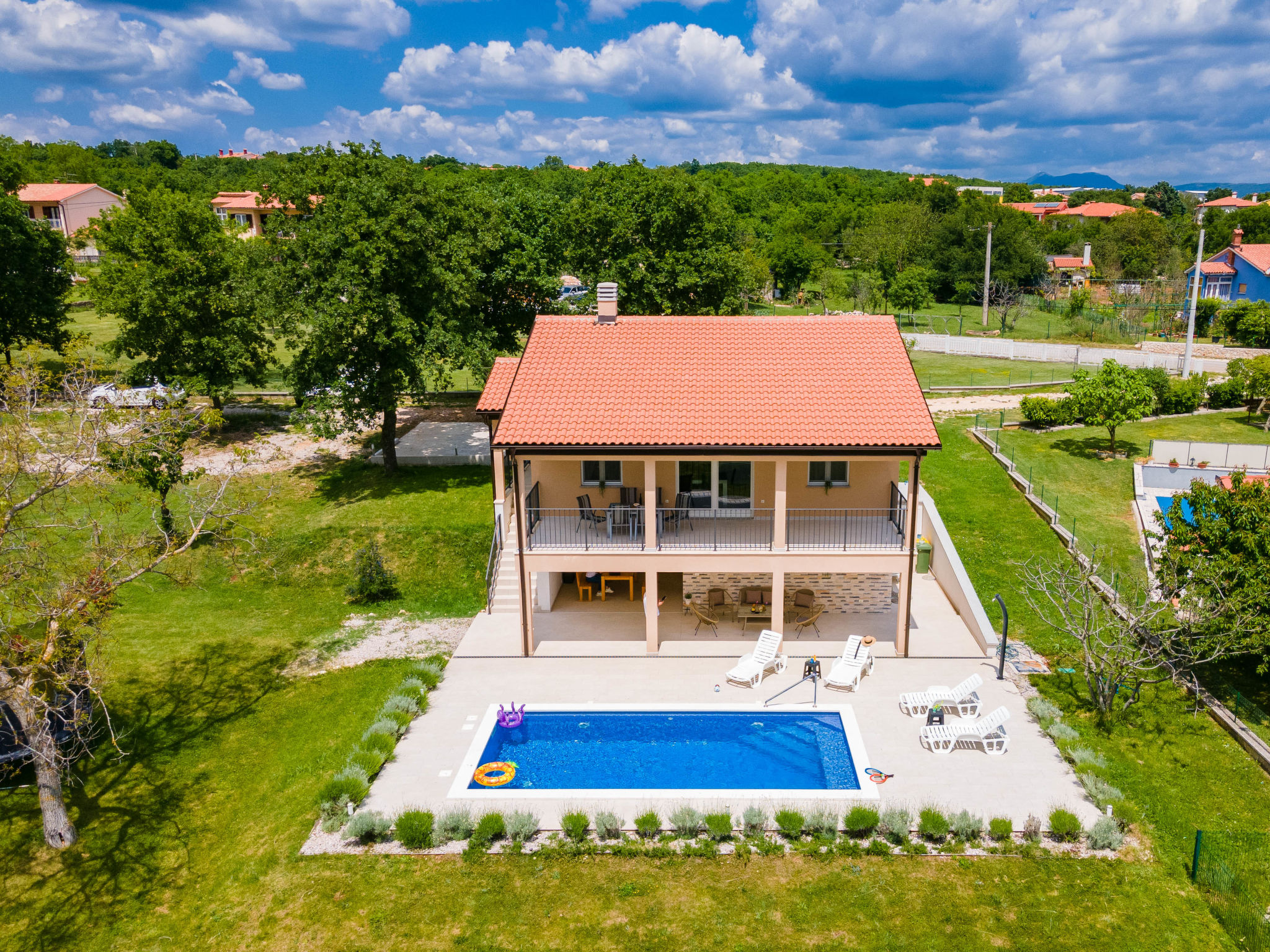 Einfamilienhaus "Marina (LBN411)", auf 2 Stockwerken, Baujahr 2018. Im Ortsteil Vinež, 1 km vom Zentrum von Labin, 6 km vom Zentrum von Rabac, in einem Wohnquartier, 6 km vom Meer. Zur Alleinbenutzung: Grundstück 3'000 m2 mit Rasen und Bäumen, Schwimmbad (8 x 4 m, 135 cm tief, 01.05.-01.10.) mit Innentreppe. Aussendusche, Terrasse, Gartenmöbel, Grill, Poolpflege durch den Besitzer/Gärtner. Im Hause: Internetzugang, Trampolin, Waschmaschine. Zufahrt bis zum Haus (30 m Naturweg). Parkplatz (für 3 Autos) auf dem Grundstück. Einkaufsgeschäft 200 m, Supermarkt 1 km, Kieselstrand 6 km. Jugendgruppen nur auf Anfrage.