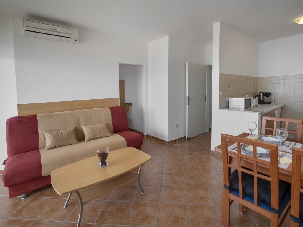 12-Zimmer-Haus 230 m2 auf 2 Stockwerken, Südlage. Wohn-/Esszimmer mit Küchenblock und Sat-TV (Flachbildschirm), Klimaanlage. Ausgang zum Balkon. 1 Zimmer mit 1 Doppelbett (2 x 90 cm, Länge 200 cm). 1 Zimmer mit 1 franz. Bett (140 cm, Länge 200 cm). Wohn-/Esszimmer mit Sat-TV (Flachbildschirm), Klimaanlage. Ausgang zum Balkon. 1 Zimmer mit 1 Doppelbett (2 x 90 cm, Länge 200 cm). 1 Zimmer mit 1 franz. Bett (140 cm, Länge 200 cm). Offene Küche (2 Kochplatten, Geschirrspüler, Mikrowelle, elektrische Kaffeemaschine). 2 Duschen/WC. Obergeschoss: Wohn-/Esszimmer mit Küchenblock und Sat-TV (Flachbildschirm), Klimaanlage. Ausgang zum Balkon. 1 Zimmer mit 1 Doppelbett (2 x 90 cm, Länge 200 cm). 1 Zimmer mit 1 franz. Bett (140 cm, Länge 200 cm), Klimaanlage. Wohn-/Esszimmer mit Sat-TV (Flachbildschirm), Klimaanlage. Ausgang zum Balkon. 1 Zimmer mit 1 Doppelbett (2 x 90 cm, Länge 200 cm). 1 Zimmer mit 1 franz. Bett (140 cm, Länge 200 cm). Offene Küche (2 Kochplatten, Geschirrspüler). 2 Duschen/WC. Warmluftheizung. 4 Balkone 12 m2, Terrasse 15 m2, überdacht. Balkonmöbel, Liegestühle. Schöne Sicht auf das Meer. Zur Verfügung: Internet (Wireless LAN, gratis). Zwei Ferienwohnungen im Erdgeschoss, jede Ferienwohnung mit separatem Eingang, Wohn-/Essbereich, offener Küche und 2 Schlafzimmern. Zwei Ferienwohnungen im ersten Stock, jede Ferienwohnung mit separatem Eingang, Wohn-/Essbereich, offener Küche und 2 Schlafzimmern.