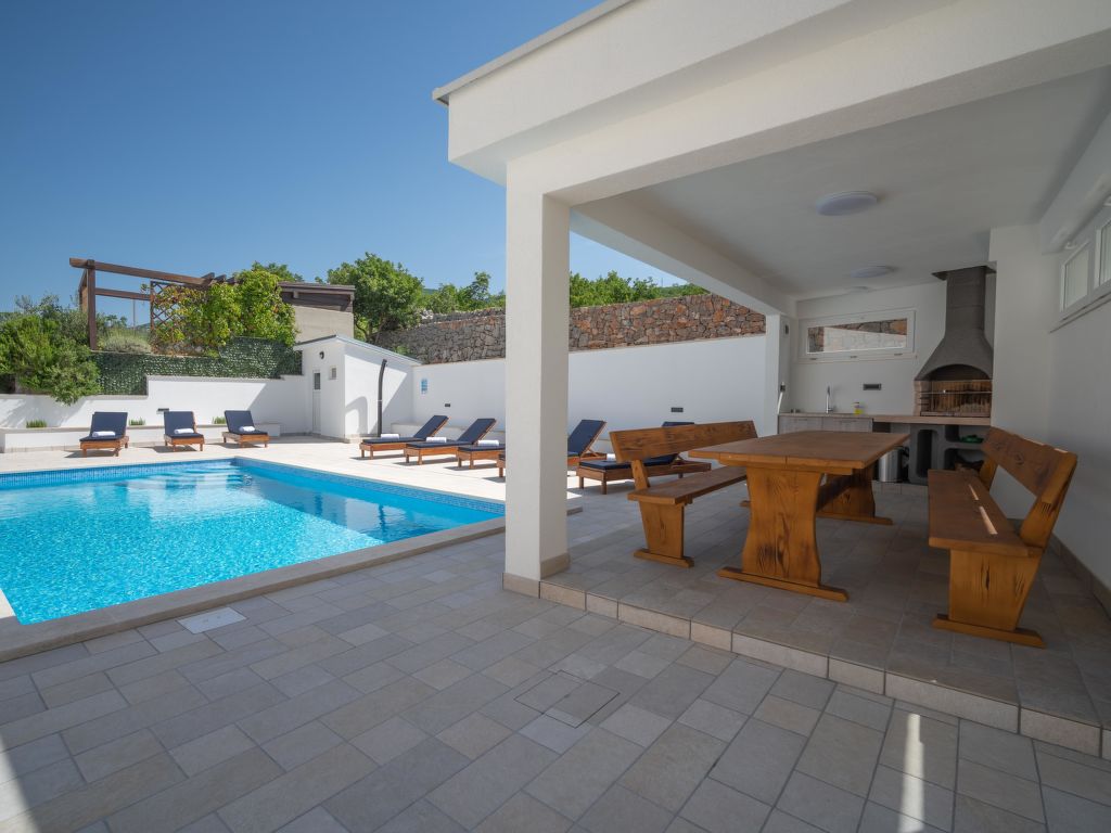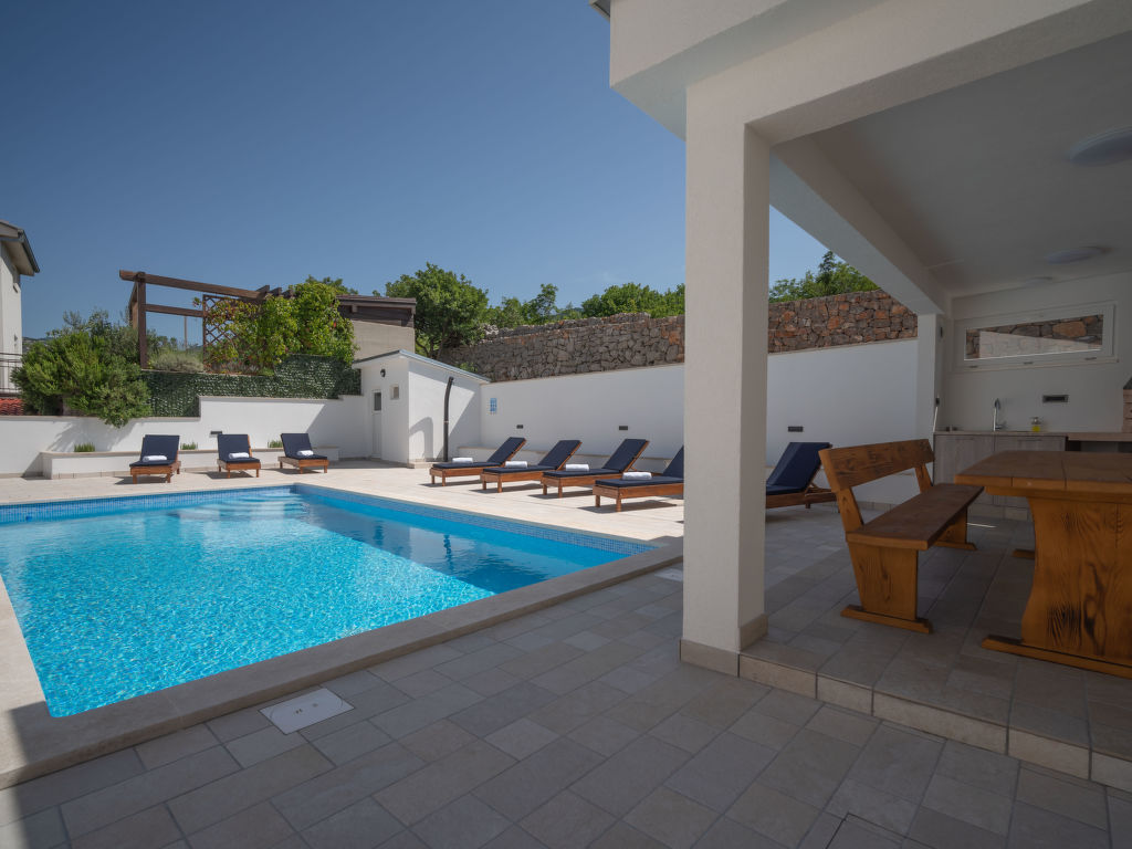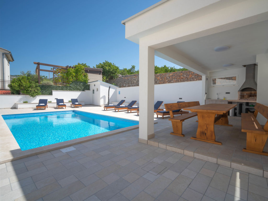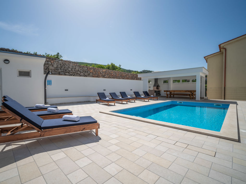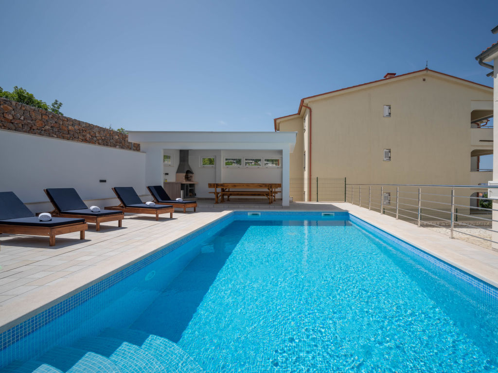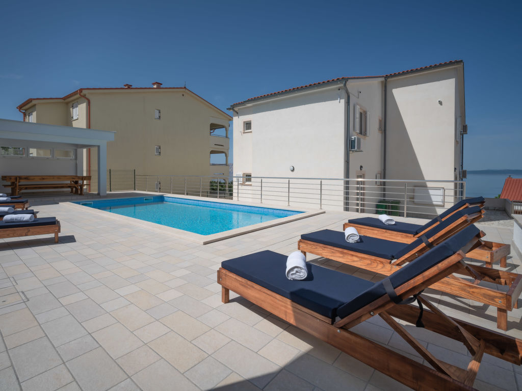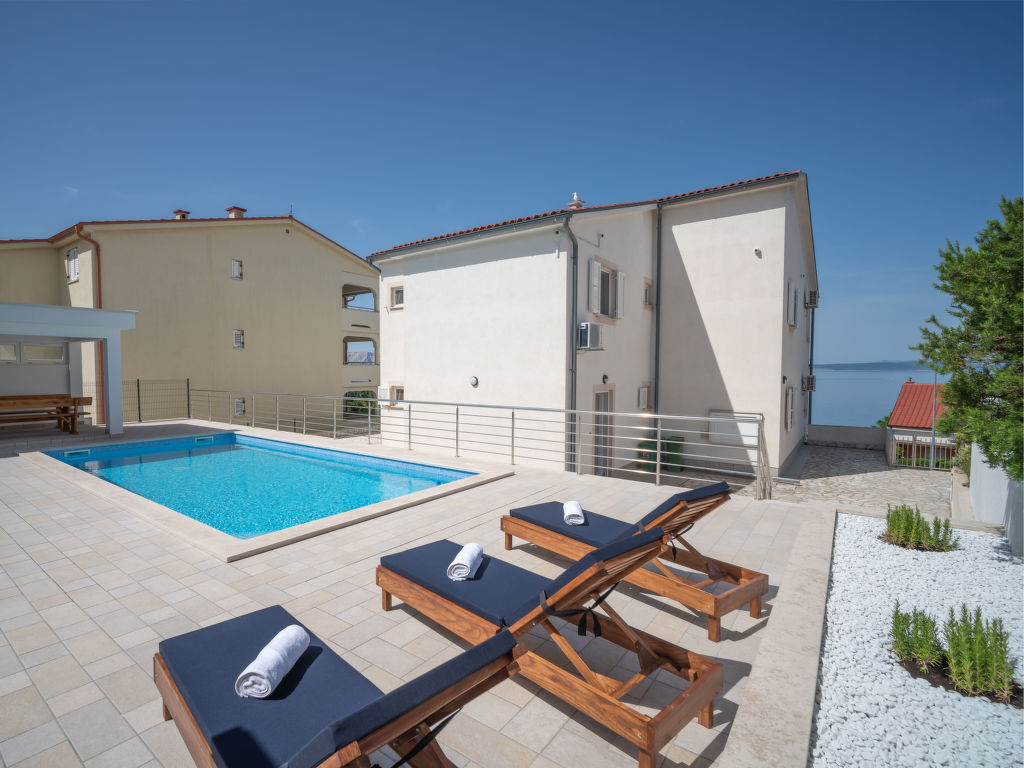 Klenovica 8 km von Novi Vinodolski: Einfamilienhaus "Josipa", auf 2 Stockwerken. 300 m vom Zentrum von Klenovica, ruhige, sonnige, erhöhte Lage, 300 m vom Meer, 450 m vom Strand. Zur Alleinbenutzung: Grundstück 670 m2, Schwimmbad eckig (8 x 4 m, 140 cm tief, 01.04.-31.10.) mit Innentreppe. Aussendusche, Terrasse (100 m2), Gartenmöbel, Grill. Im Hause: Internetzugang, Waschmaschine. Parkplatz (für 8 Autos) beim Haus auf dem Grundstück. Einkaufsgeschäft, Restaurant 300 m, Kieselstrand 450 m. Jugendgruppen nur auf Anfrage. Die Nachbarschaft ist sehr lärmempfindlich. Ruhe und gutes Benehmen wird erwartet. Das veranstalten von Partys ist nicht gestattet. Ved grupper af unge anmodes der dobbelt depositum ved ankomsten. Das Haus besteht aus 4 Ferienwohnungen, die als Einheit vermietet werden.