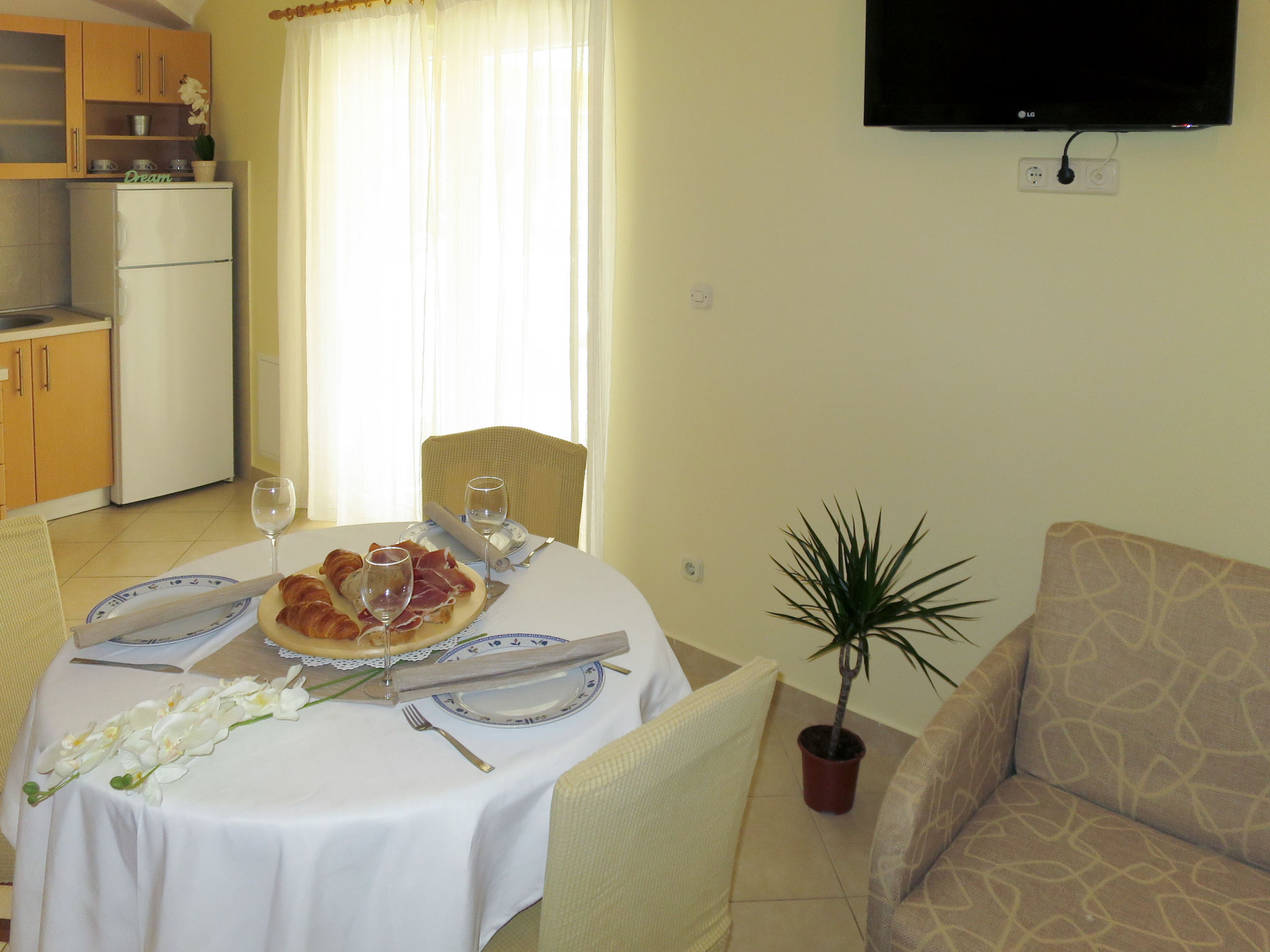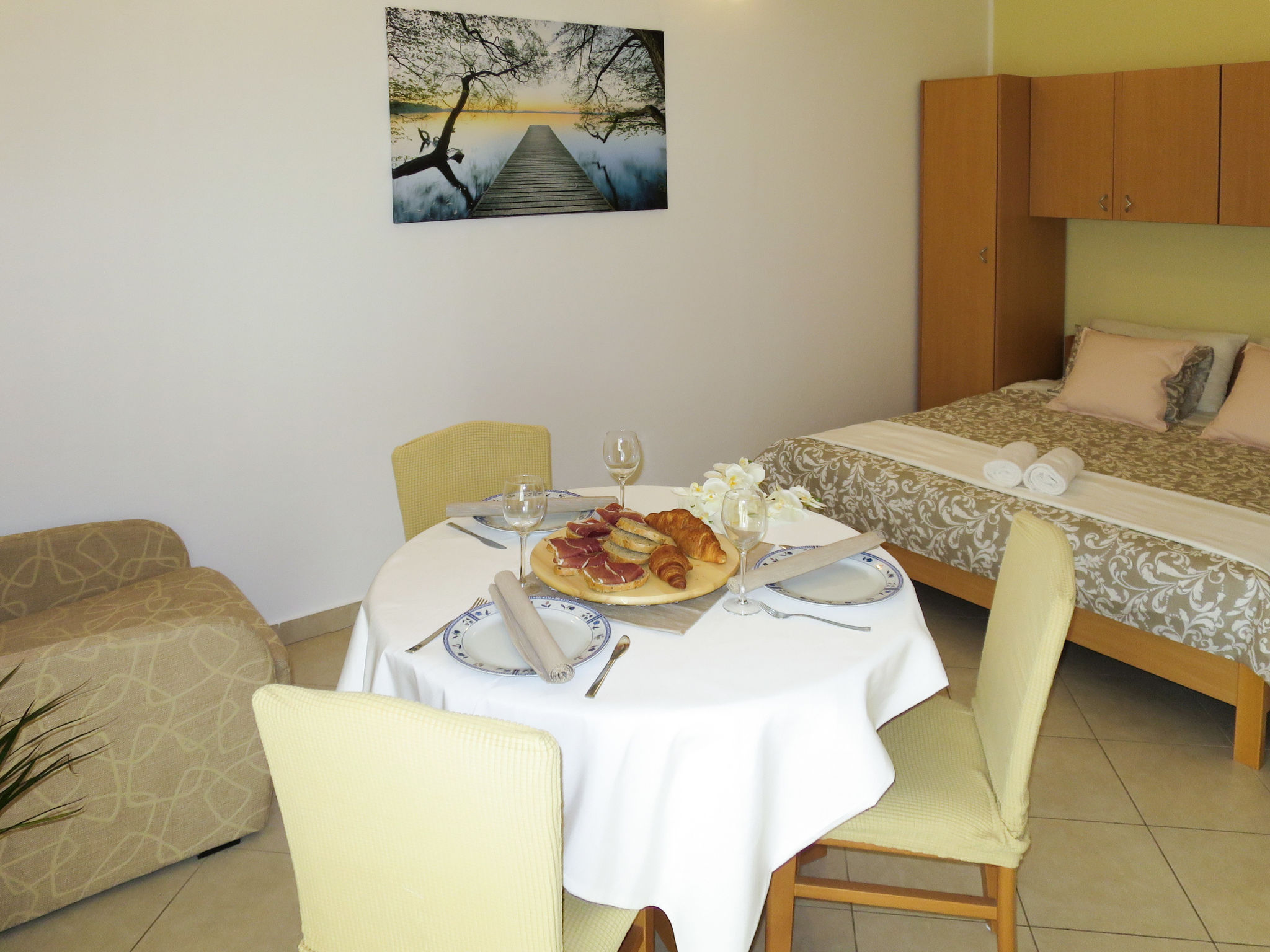 "Toni (SIB242)", 1-Zimmer-Wohnung 30 m2 im 2. Stock. Studio mit 1 Diwanbett, 1 Doppelbett, 1 Schlafmöglichkeit, Esstisch, Sat-TV und Klimaanlage. Ausgang zum Balkon. Offene Küche (2 Kochplatten, Geschirrspüler, Toaster, Wasserkocher, Tiefkühler, elektrische Kaffeemaschine). Dusche/WC. Balkon 9 m2. Balkonmöbel, Liegestühle (1). Eingeschränkte Sicht auf das Meer. Zur Verfügung: Internet (Wireless LAN, gratis).