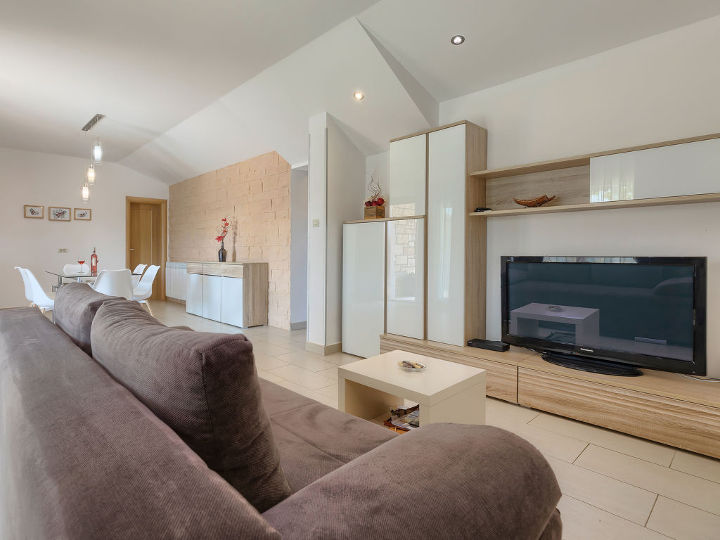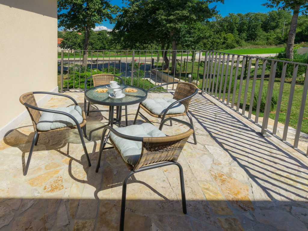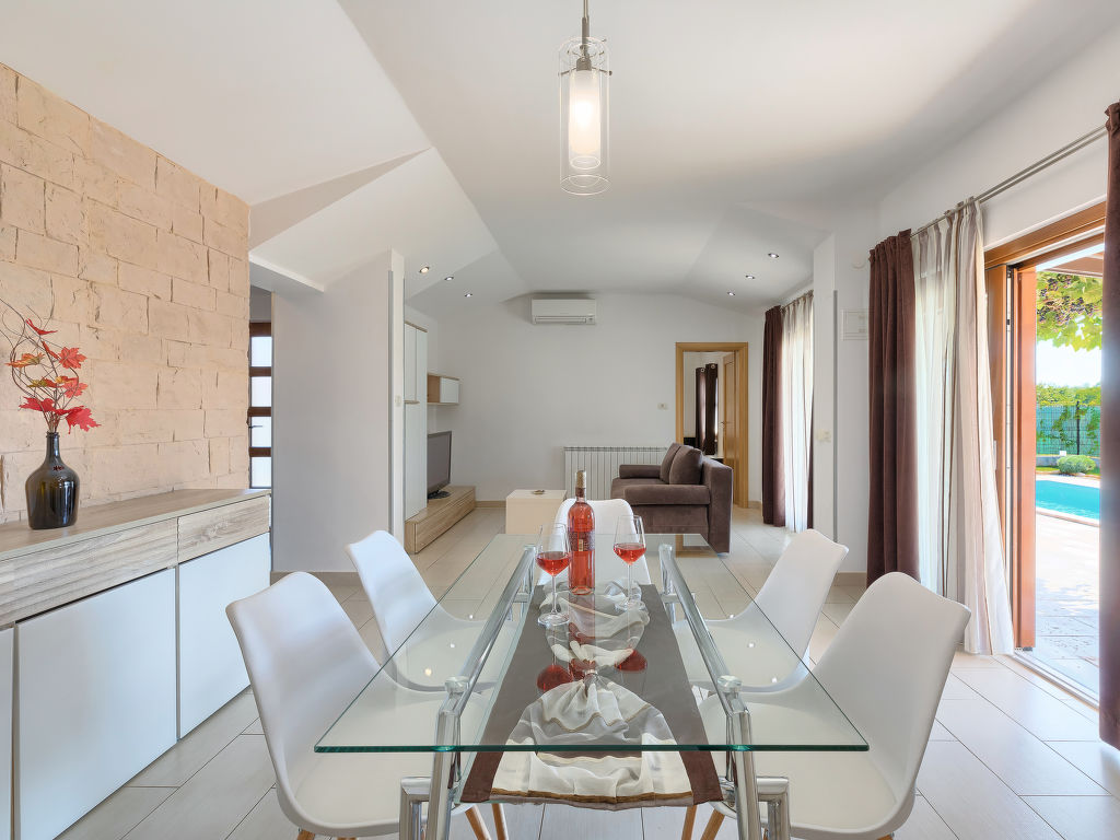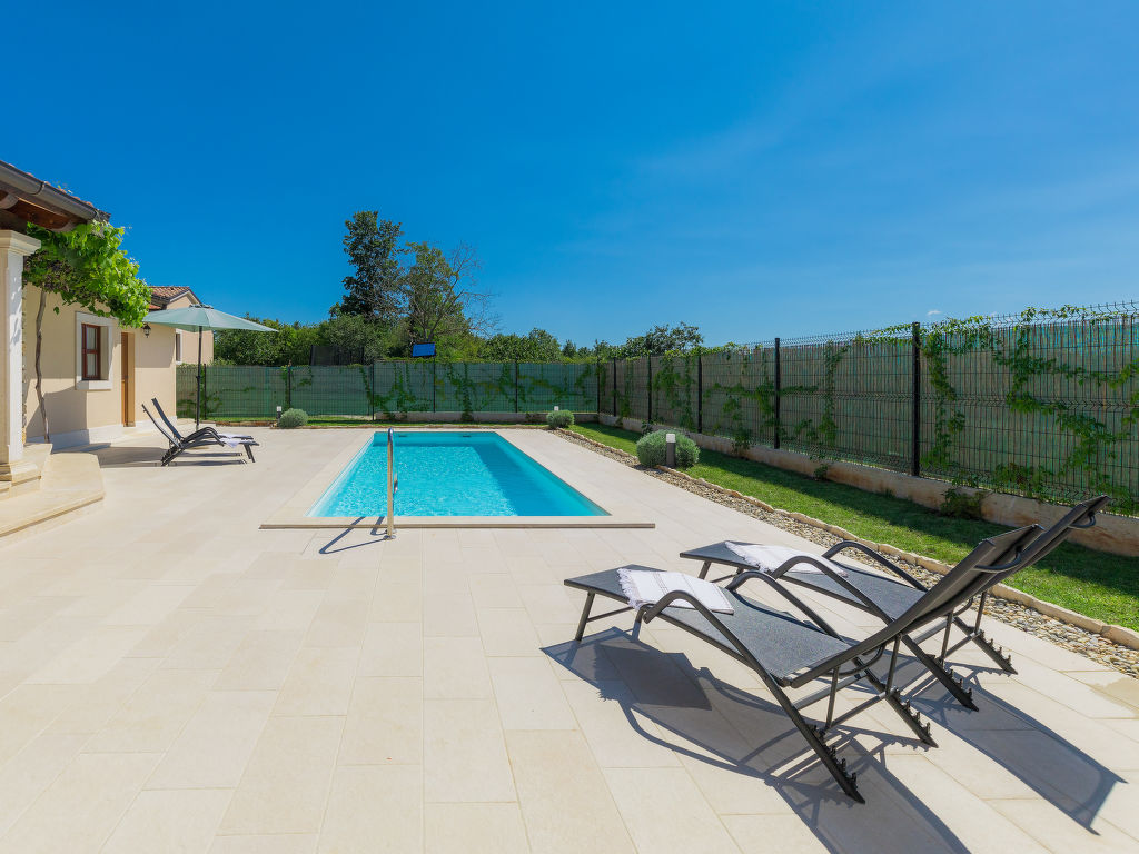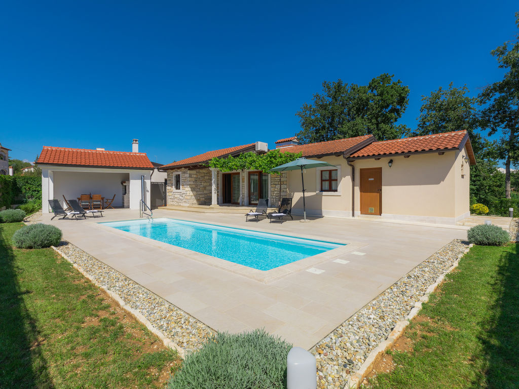 Sveti Petar u Šumi 28 km von Rovinj: Einfamilienhaus "Florens (ROJ469)". 300 m vom Zentrum von Sveti Petar u Šumi, 7 km vom Zentrum von Žminj, 28 km vom Meer. Zur Alleinbenutzung: Grundstück 400 m2 (eingezäunt), Rasen und Bäumen, Schwimmbad eckig (9 x 3 m, 30.04.-15.10.) mit Innentreppe. Aussendusche, Terrasse, Gartenmöbel, Grill. Im Hause: Internetzugang, Waschmaschine. Parkplatz (für 2 Autos) auf dem Grundstück. Einkaufsgeschäft 500 m, Supermarkt 7 km, Kieselstrand 28 km, Felsstrand 28 km.