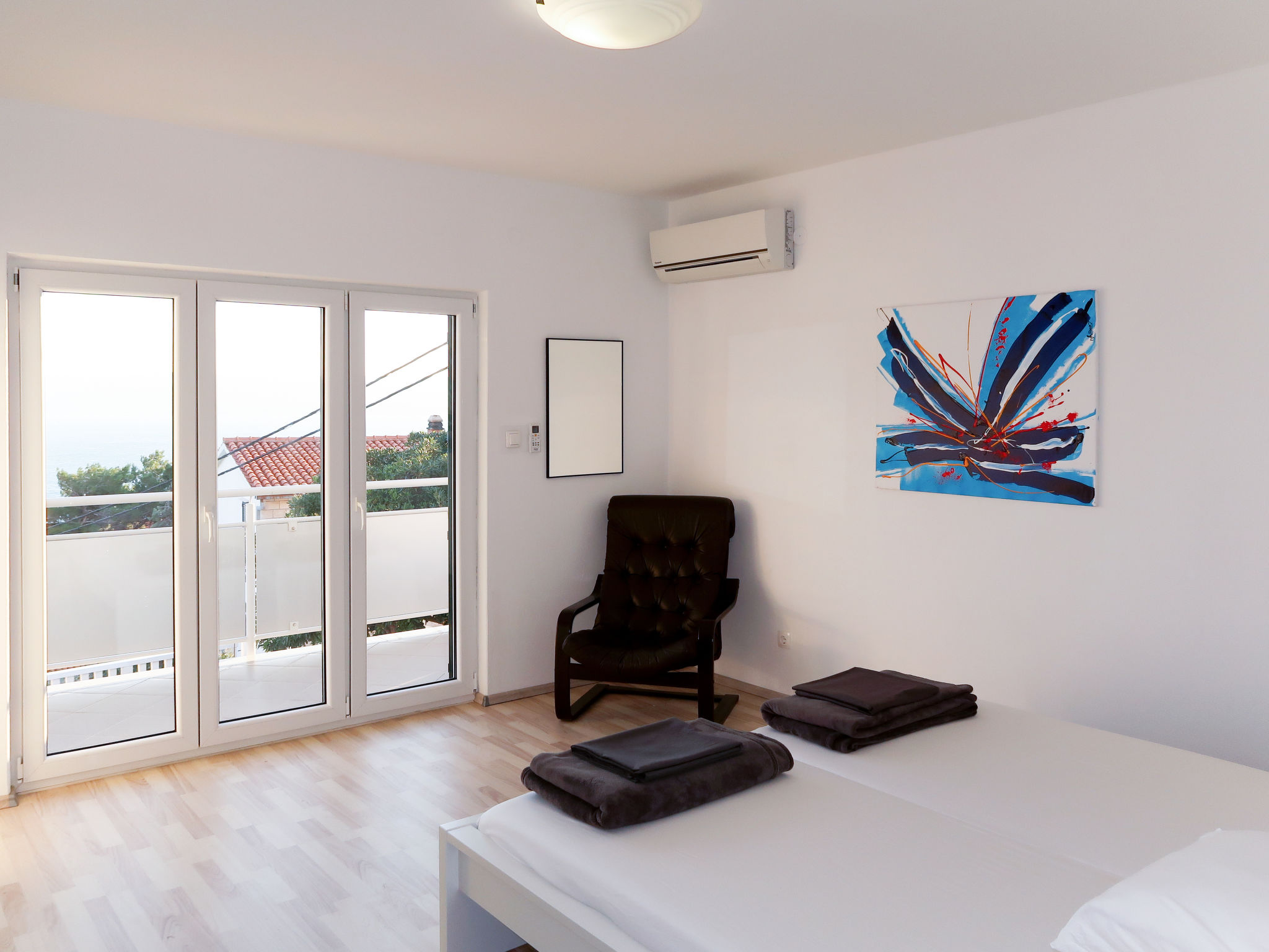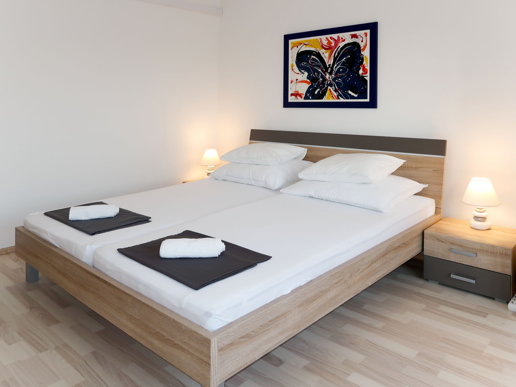 "Bacic (OMI216)", 3-Zimmer-Wohnung 75 m2 im 1. Stock. Wohn-/Esszimmer mit 1 Doppeldiwanbett und Sat-TV. Ausgang zum Balkon. 2 Zimmer, jedes Zimmer mit 1 Doppelbett und Klimaanlage. Ausgang zum Balkon. Offene Küche (1 Kochplatte, Backofen, Geschirrspüler, 3 Flammen, Toaster, Wasserkocher, Mikrowelle, Tiefkühler, elektrische Kaffeemaschine). Dusche/WC. 2 Balkone 15 m2. Balkonmöbel. Sicht auf das Meer. Zur Verfügung: Waschmaschine, Babybett. Internet (Wireless LAN, gratis). Bitte beachten: Nichtraucher-Haus. Eigener Eingang.
