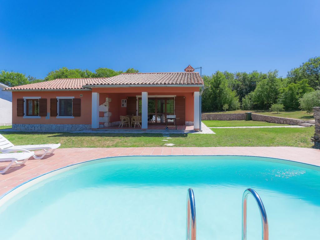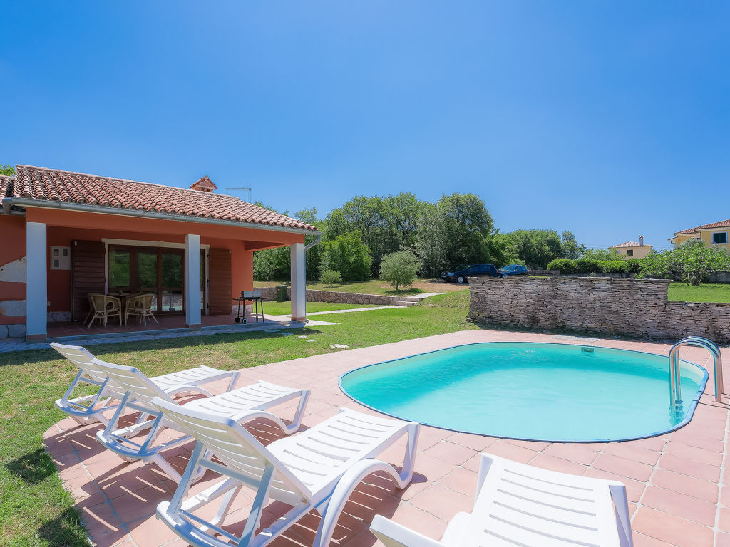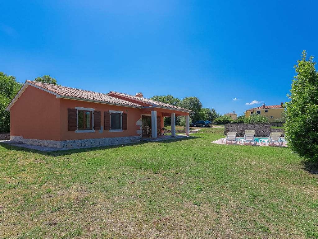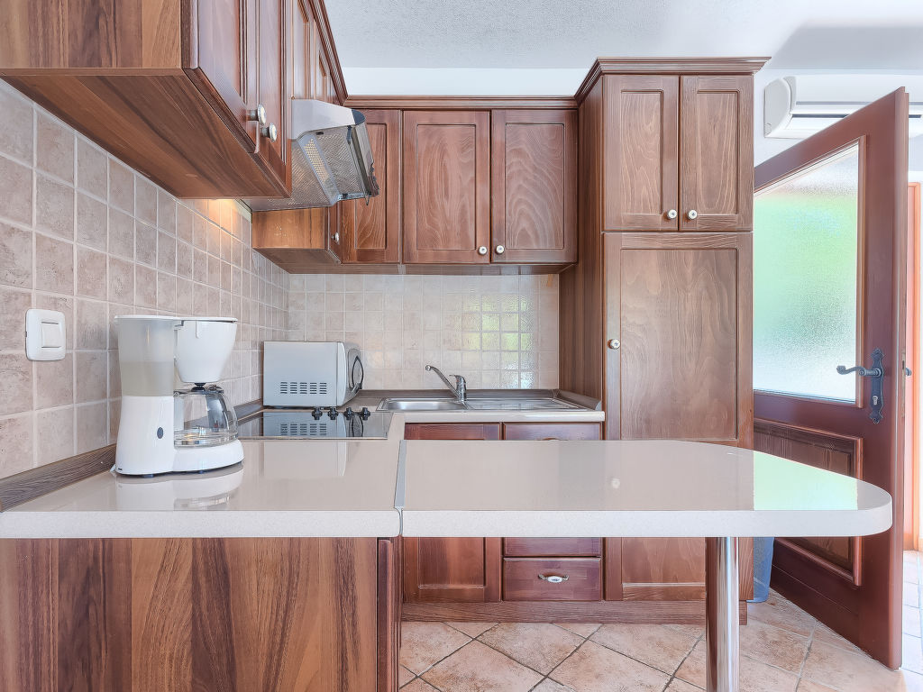 3-Zimmer-Haus 100 m2. Wohn-/Esszimmer mit Sat-TV (Flachbildschirm), Klimaanlage. Ausgang zur Terrasse. 1 Zimmer mit 1 franz. Bett (180 cm, Länge 200 cm), 1 Ausziehbett (Länge 190 cm). 1 Zimmer mit 2 Betten (90 cm, Länge 200 cm), 1 Ausziehbett (Länge 190 cm). Offene Küche (4 Kochplatten, Mikrowelle, Tiefkühler, elektrische Kaffeemaschine). 2 Duschen/WC. Terrasse 20 m2, überdacht. Terrassenmöbel, Gartengrill (mobil), Liegestühle. Sicht auf das Schwimmbad. Zur Verfügung: Internet (Wireless LAN, gratis). 1 Haustier/Hund erlaubt.