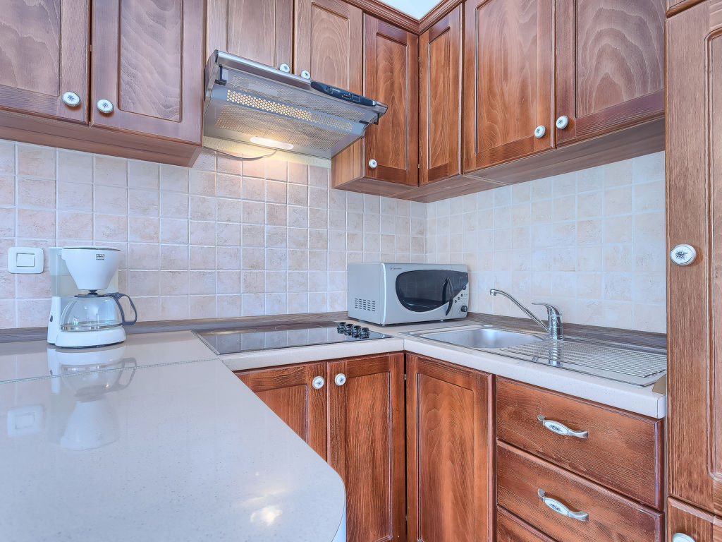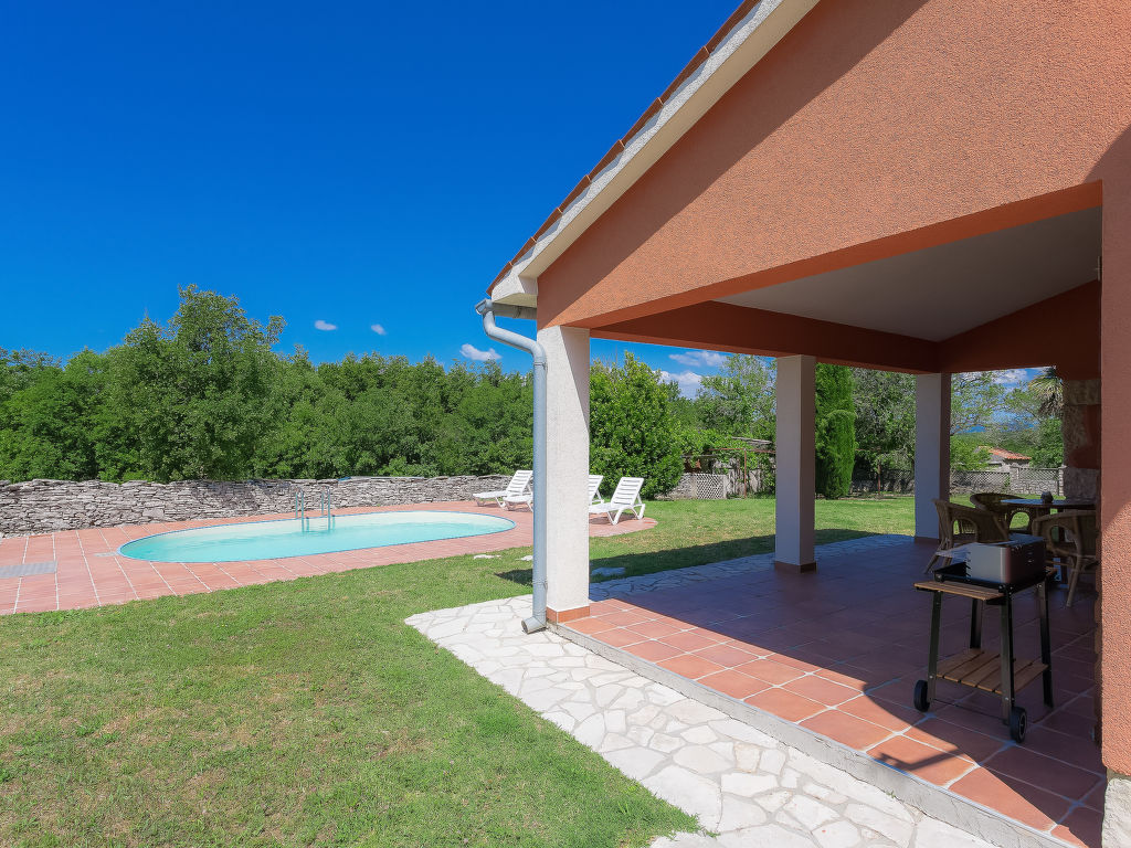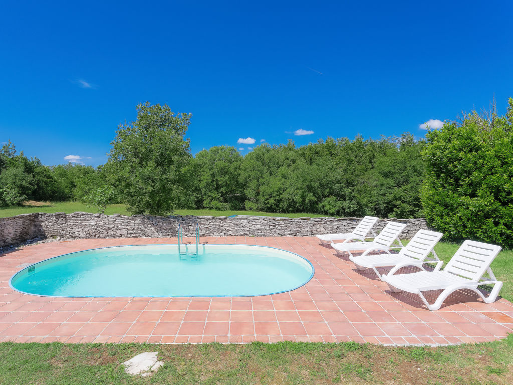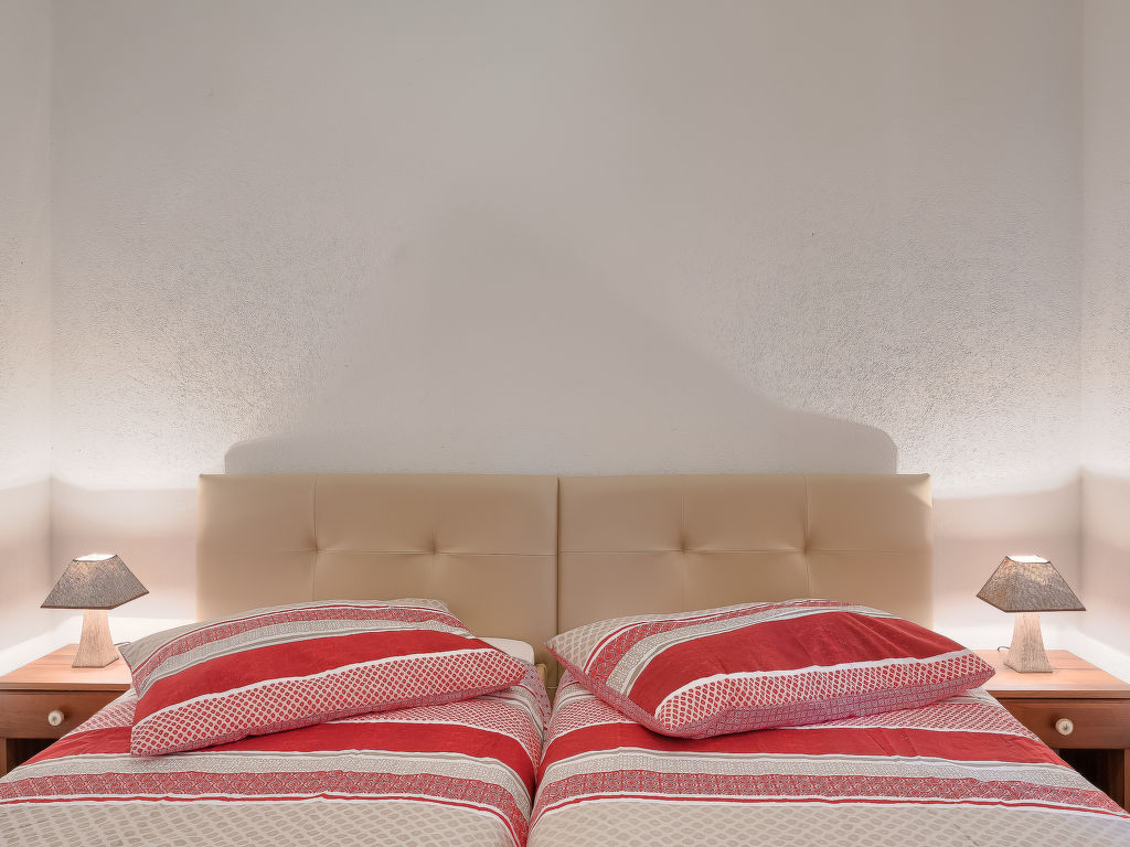 3-Zimmer-Haus 100 m2. Wohn-/Esszimmer mit Sat-TV (Flachbildschirm), Klimaanlage. Ausgang zur Terrasse. 1 Zimmer mit 1 franz. Bett (180 cm, Länge 200 cm), 1 Ausziehbett (Länge 190 cm). 1 Zimmer mit 2 Betten (90 cm, Länge 200 cm), 1 Ausziehbett (Länge 190 cm). Offene Küche (4 Kochplatten, Mikrowelle, Tiefkühler, elektrische Kaffeemaschine). 2 Duschen/WC. Terrasse 20 m2, überdacht. Terrassenmöbel, Gartengrill (mobil), Liegestühle. Sicht auf das Schwimmbad. Zur Verfügung: Internet (Wireless LAN, gratis). 1 Haustier/Hund erlaubt.