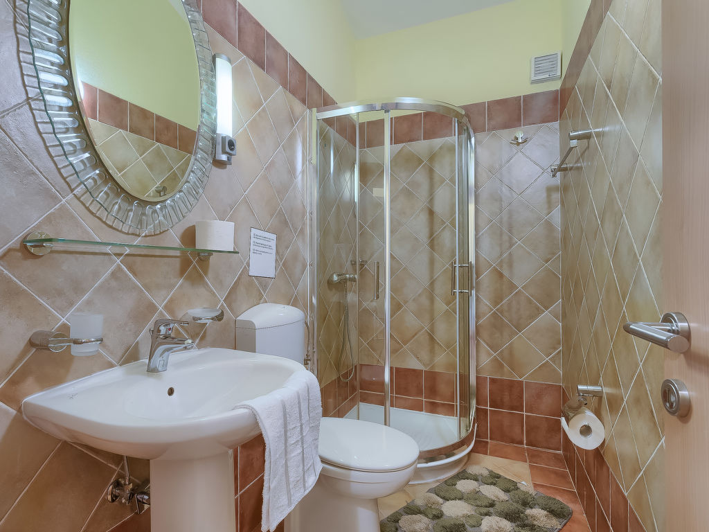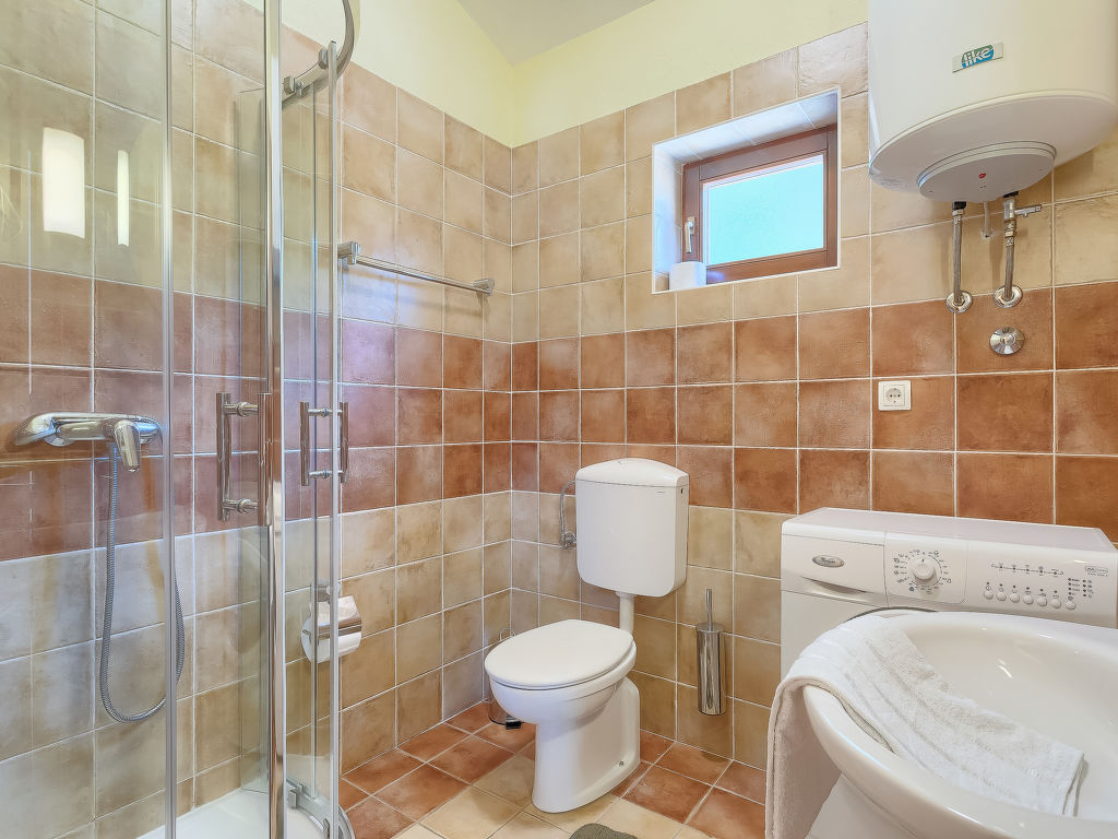 Einfamilienhaus "Roberto". Im Weiler Trgetari, 1.5 km vom Zentrum von Trget, ruhige, erhöhte Lage, 1 km vom Meer, 1 km vom Strand, im Grünen. Zur Alleinbenutzung: Grundstück 2'500 m2, Schwimmbad (23 m2, 140 cm tief, 02.05.-24.10.). Im Hause: Internetzugang, Waschmaschine. Zufahrt bis zum Haus (200 m Naturweg). Parkplatz (für 3 Autos) beim Haus auf dem Grundstück. Einkaufsgeschäft 1.2 km, Restaurant 800 m, Kieselstrand 10 km, Felsstrand 1 km.
