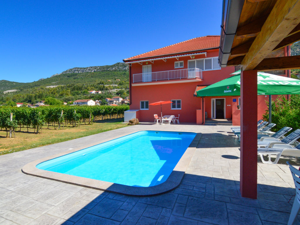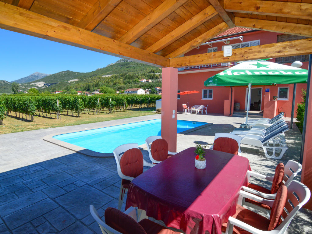 Zweifamilienhaus "Baba Nevenka", Baujahr 2018. 400 m vom Zentrum von Dušina, 5 km vom Zentrum von Vrgorac, 18 km vom Zentrum von Ploče, 18 km vom Meer. Zur Alleinbenutzung: Grundstück 400 m2 mit Pflanzen, Schwimmbad eckig (8 x 4 m, 150 cm tief, 01.05.-15.10.) mit Innentreppe. Aussendusche, Terrasse, Gartenmöbel, Grill. Im Hause: Internetzugang. Parkplatz (für 2 Autos) auf dem Grundstück. Einkaufsgeschäft 400 m, Supermarkt 18 km, Kieselstrand 18 km.
