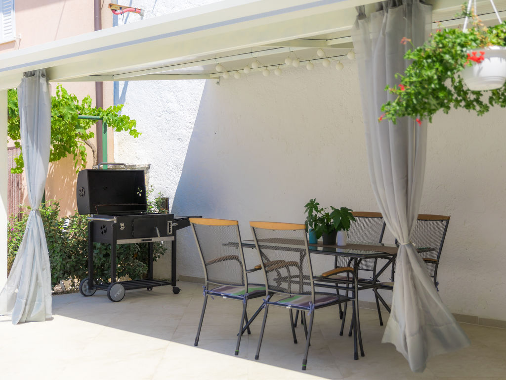3-Zimmer-Haus 80 m2 auf 2 Stockwerken. Wohn-/Esszimmer mit 1 Diwanbett und Sat-TV (Flachbildschirm), Klimaanlage. Ausgang zum Schwimmbad. Offene Küche (Backofen, Geschirrspüler, 4 Glaskeramikherd Platten, Toaster, Wasserkocher, Tiefkühler, elektrische Kaffeemaschine). Sep. WC. Obergeschoss: 2 Zimmer, jedes Zimmer mit 1 franz. Bett (160 cm), Dusche/WC und Klimaanlage. Gartengrill (mobil), Liegestühle. Zur Verfügung: Internet (Wireless LAN, gratis). Bitte beachten: Nichtraucher-Haus.