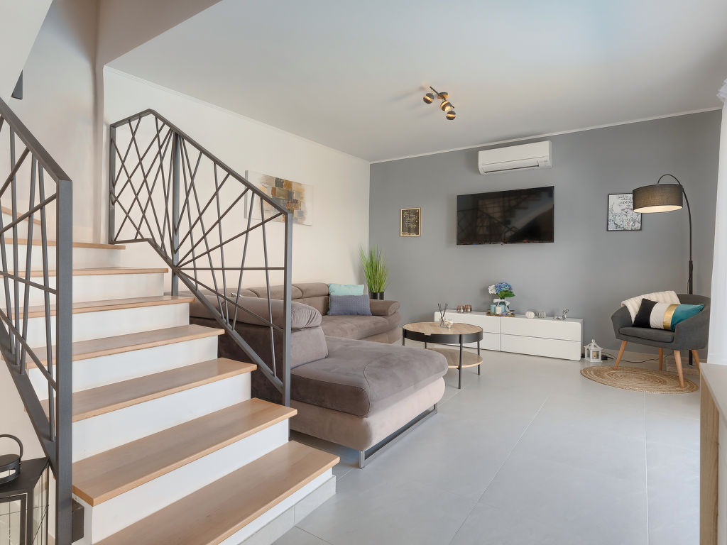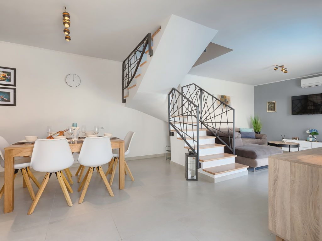 Einfamilienhaus "Villa Karmen (Roj454)", auf 2 Stockwerken, renoviert im Jahre 2019. Im Weiler Gljuščići, 6 km vom Zentrum von Žminj, 30 km vom Zentrum von Rovinj, 28 km vom Meer. Zur Alleinbenutzung: Grundstück 400 m2 (eingezäunt), Schwimmbad eckig (7 x 3 m, 24 m2, 130 cm tief, 02.05.-08.10.) mit Innentreppe. Aussendusche, Tischtennis, Terrasse, Gartenmöbel. Im Hause: Internetzugang, Waschmaschine. Parkplatz (für 3 Autos) auf dem Grundstück. Einkaufsgeschäft 500 m, Restaurant 1 km, Felsstrand 28 km.