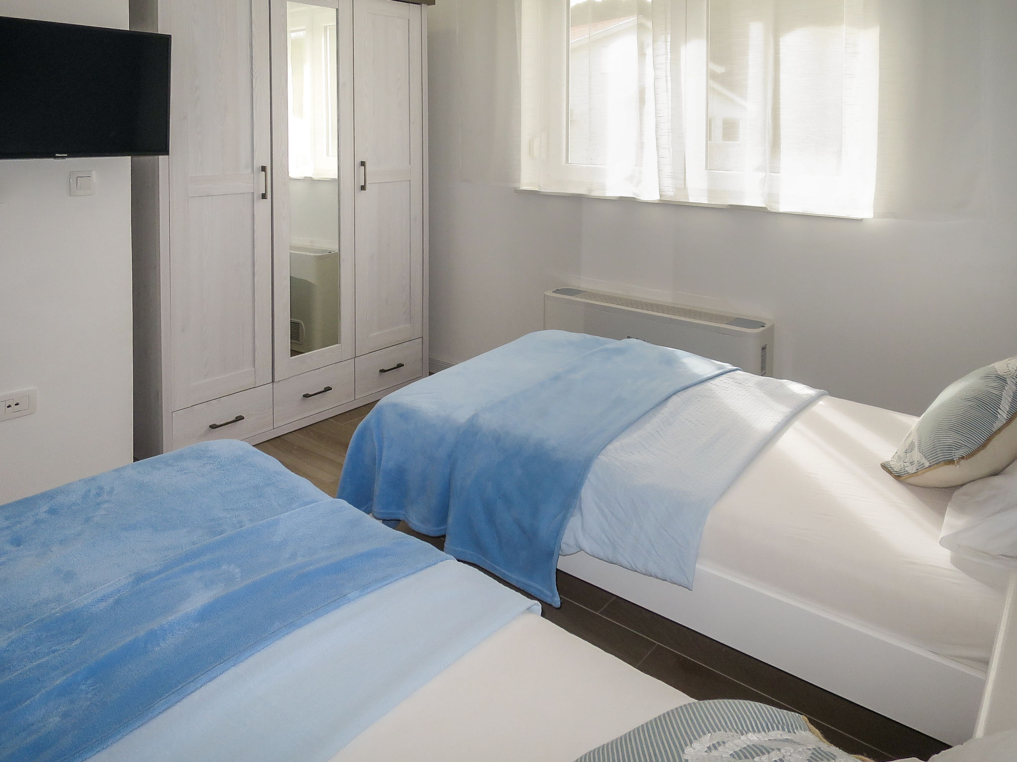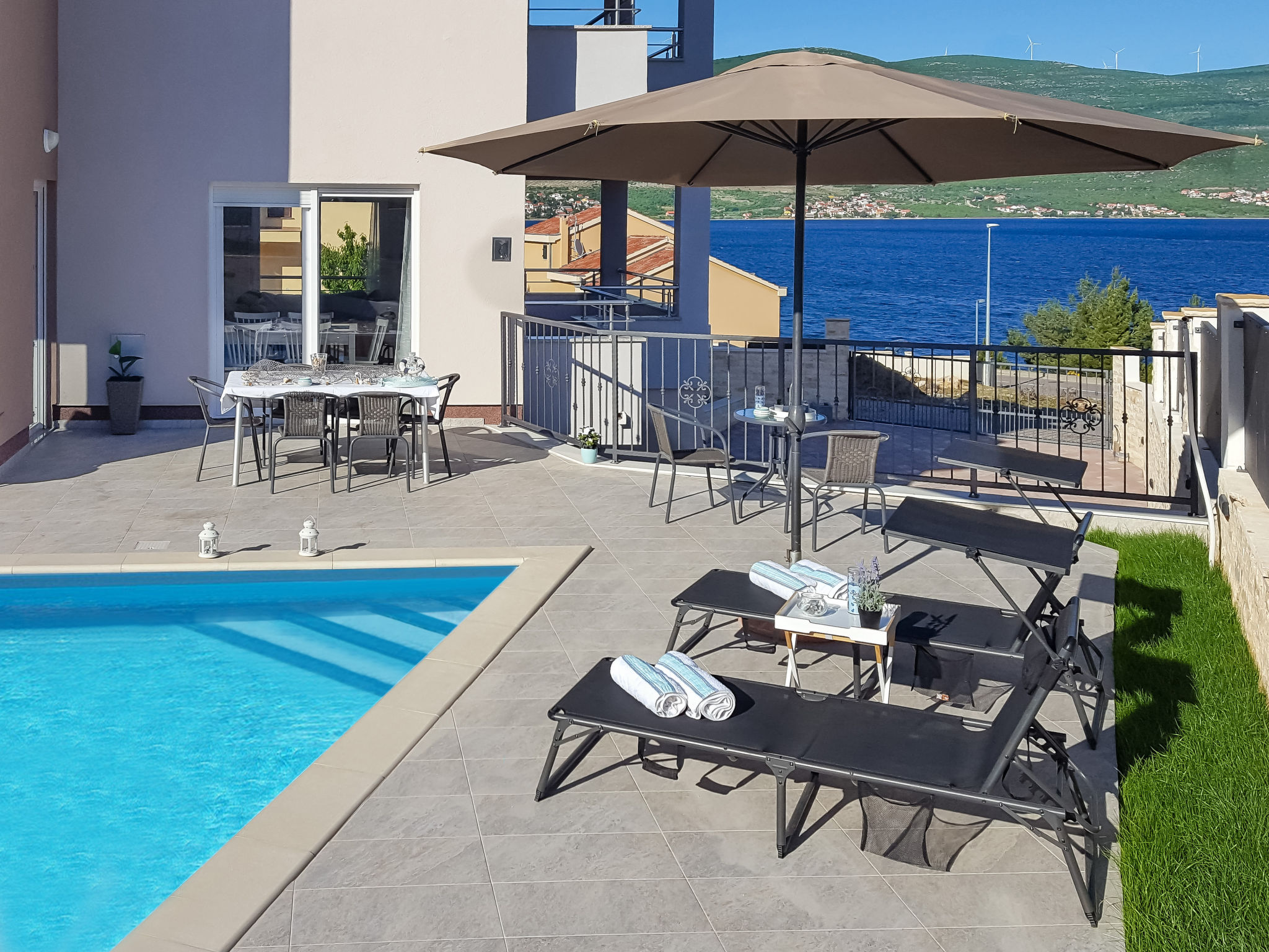 Einfamilienhaus "Lucija (ZAD730)", auf 3 Stockwerken, Baujahr 2019. 2 km vom Zentrum von Pridraga, am Ortsrand, 6 km vom Zentrum von Novigrad, 35 km vom Zentrum von Zadar, 50 m vom Meer, 50 m vom Strand. Zur Alleinbenutzung: Grundstück 550 m2 (eingezäunt) mit Pflanzen, Schwimmbad (7 x 7 m, 135 cm tief, 01.05.-02.10.) mit Innentreppe. Sitzplatz, Gartenmöbel. Im Hause: Internetzugang, Fitnessraum, Klimaanlage, Waschmaschine. Parkplatz (für 2 Autos) beim Haus. Einkaufsgeschäft 2 km, Supermarkt 6 km, Kieselstrand 50 m.