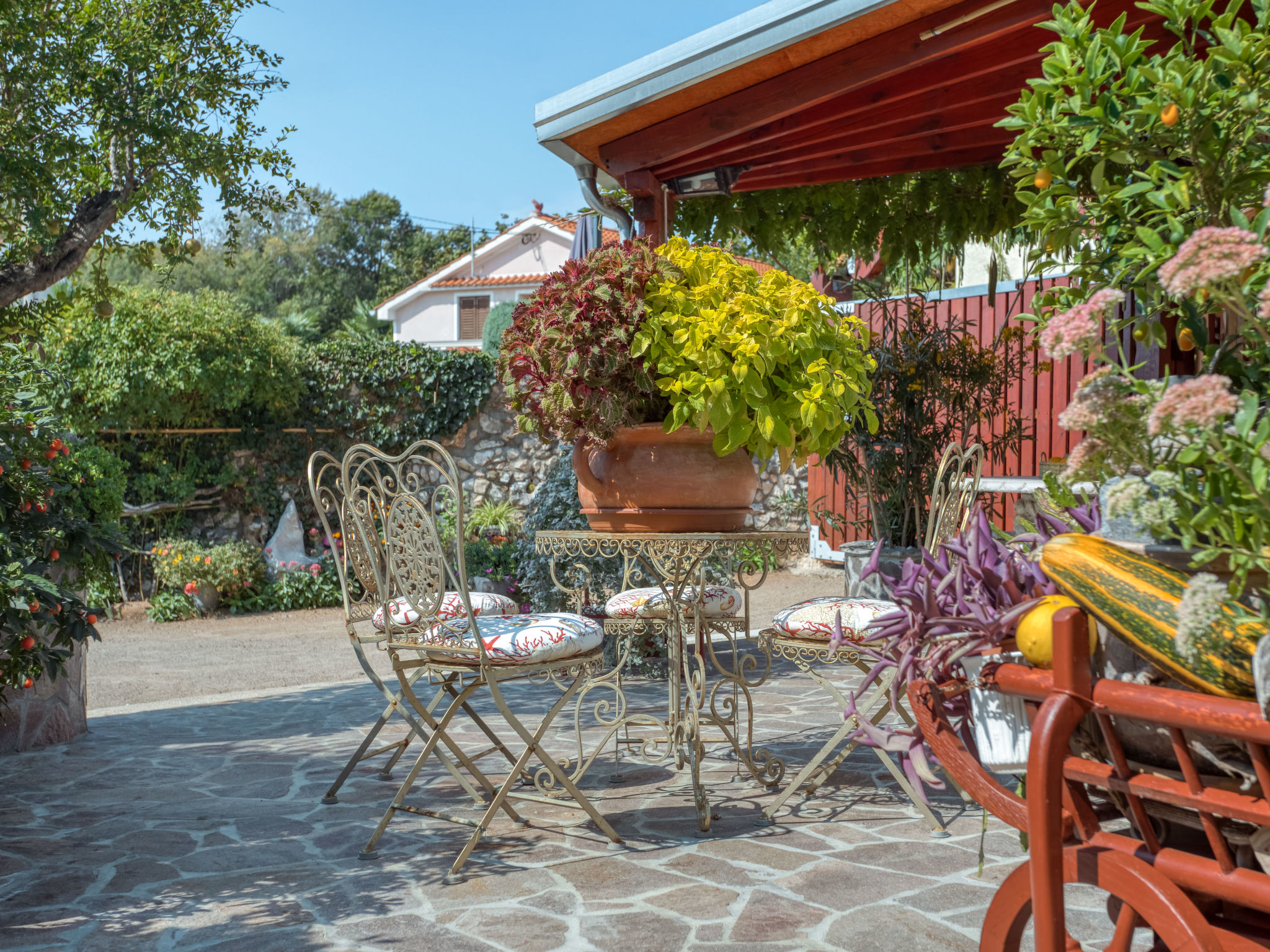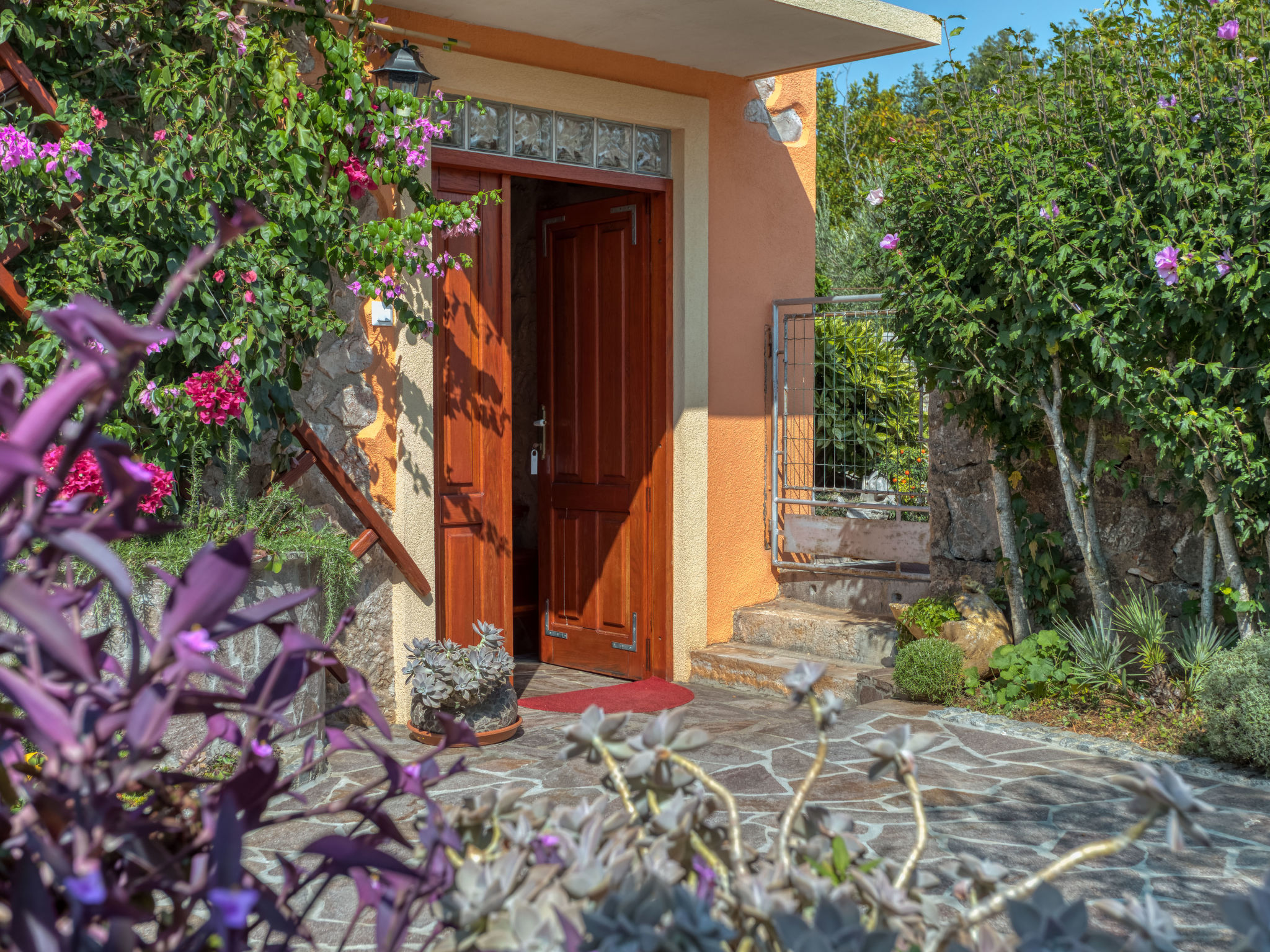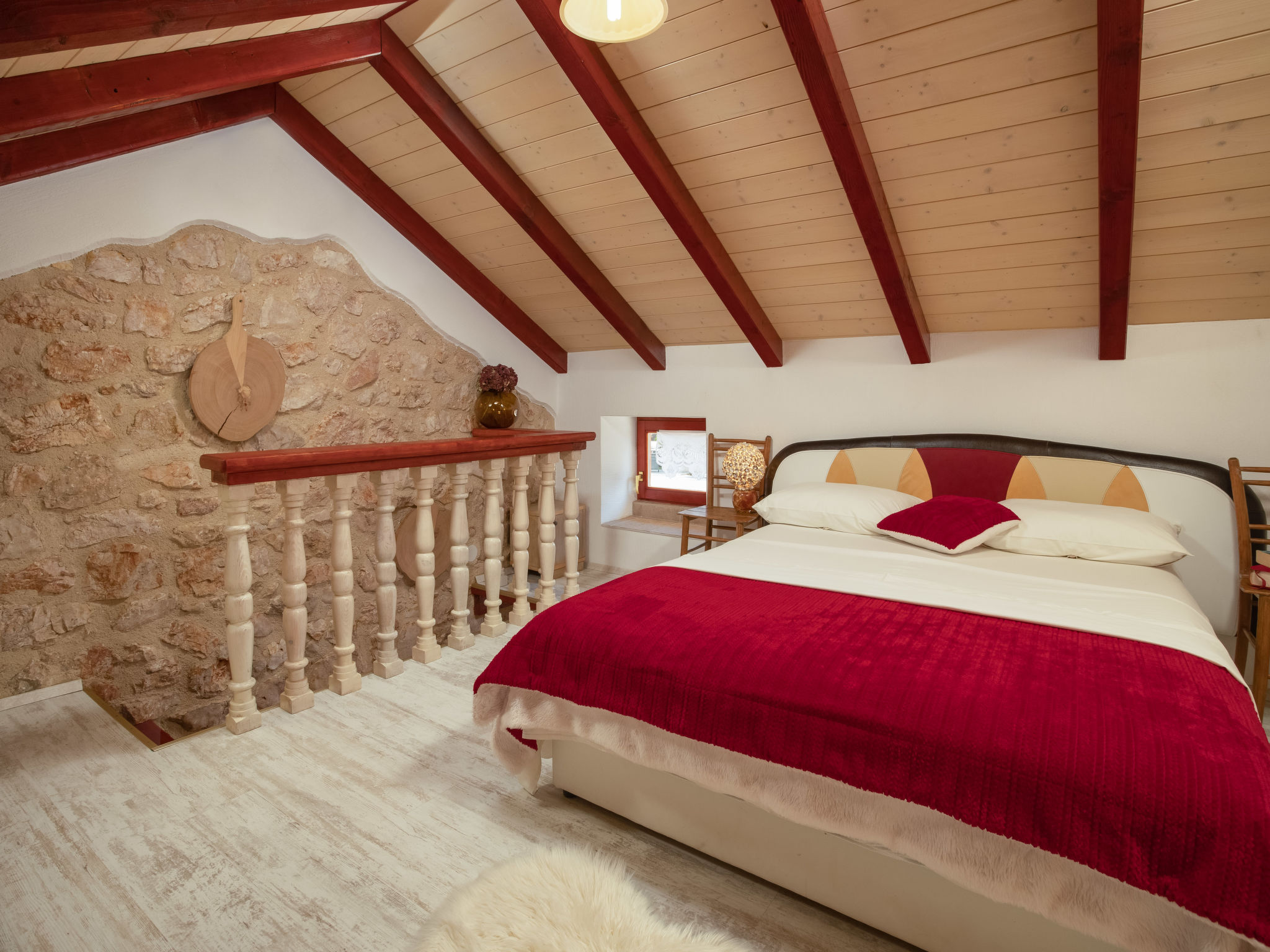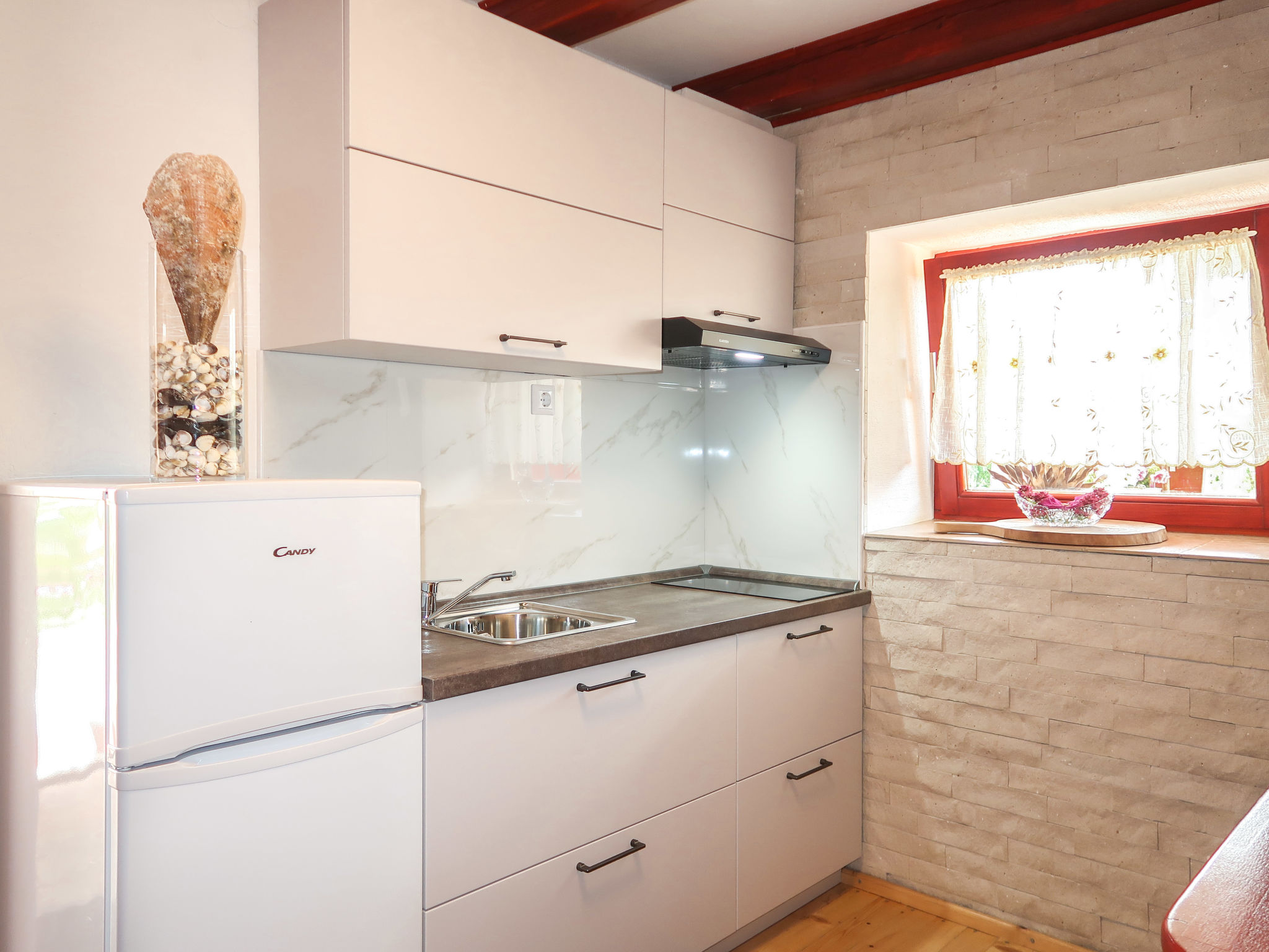 Das 2015 restaurierte Haus MARIA, ein Natursteinhaus, steht im kleinen Ort Polje, 13 km von Malinska mit Supermarkt entfernt. Nächste Einkaufsmöglichkeit ca. 400 m. Meer 2,5 km. Fels-/Kiesstrand sowie kleiner Sandstrand, jeweils 3,5 km. Soline 4 km. Krk Stadt 18 km. Das Ferienhaus steht zusammen mit dem Haus des Besitzers auf einem abgeschlossenen, ca. 500 m² großen, gepflegten Grundstück mit Olivenbäumen, Ziersträuchern, Blumen und abschließbarem Einfahrtstor. Zum Ferienhaus gehört ein eigener kleiner Grundstücksanteil (ca. 50 m²) mit gefliester, teilüberdachter Terrasse, Gartenmöbeln, Steintisch und Bänken sowie transportablem Grill. 2 Parkmöglichkeiten auf dem Grundstück des Vermieters. Gemütliche, feriengerechte Einrichtung. Rustikale Wohnatmosphäre durch sichtbare Natursteinwände und Holzbalkendecken. Fliesen- und Holzdielenboden. Sat-TV (deutsche Programme). Internetzugang (WLAN, inklusive). Klimaanlage mit Kühl-/Heizfunktion im Schlafzimmer. Elektro-Zustellheizung im Wohnraum. Hinweis: Rauchen ist im Haus nicht gestattet.