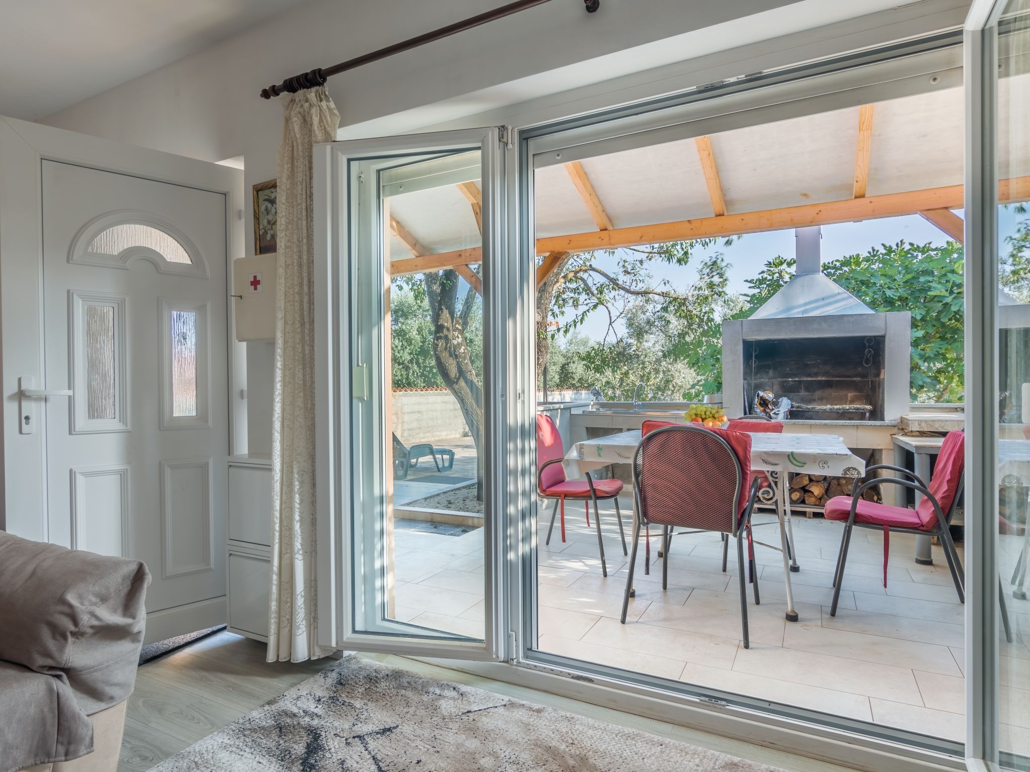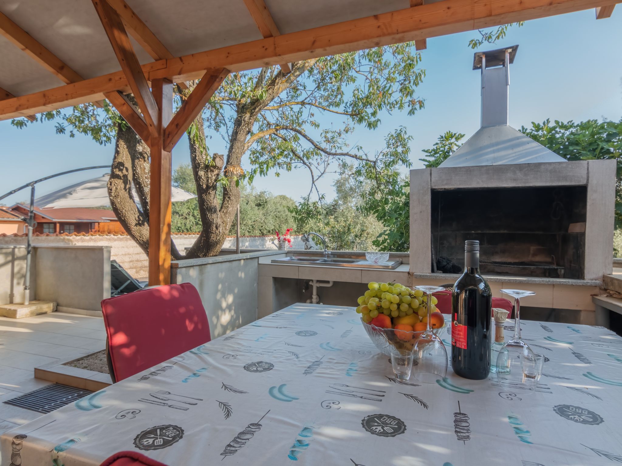 Einfamilienhaus "Ruza (PUL503)". 500 m vom Zentrum von Fažana, 8 km vom Zentrum von Pula, 500 m vom Meer, 500 m vom Strand. Zur Alleinbenutzung: Grundstück 1'200 m2 (eingezäunt), Bäumen, Wiese. Terrasse, Gartenmöbel, Grill. Im Hause: Internetzugang, Waschmaschine, Wäschetrockner. Zufahrt bis zum Haus (200 m Naturweg). Parkplatz (für 4 Autos) auf dem Grundstück. Einkaufsgeschäft 350 m, Restaurant 250 m, Kieselstrand, Felsstrand 500 m.