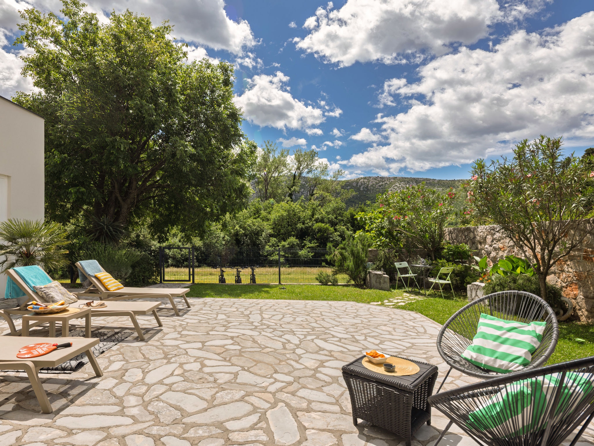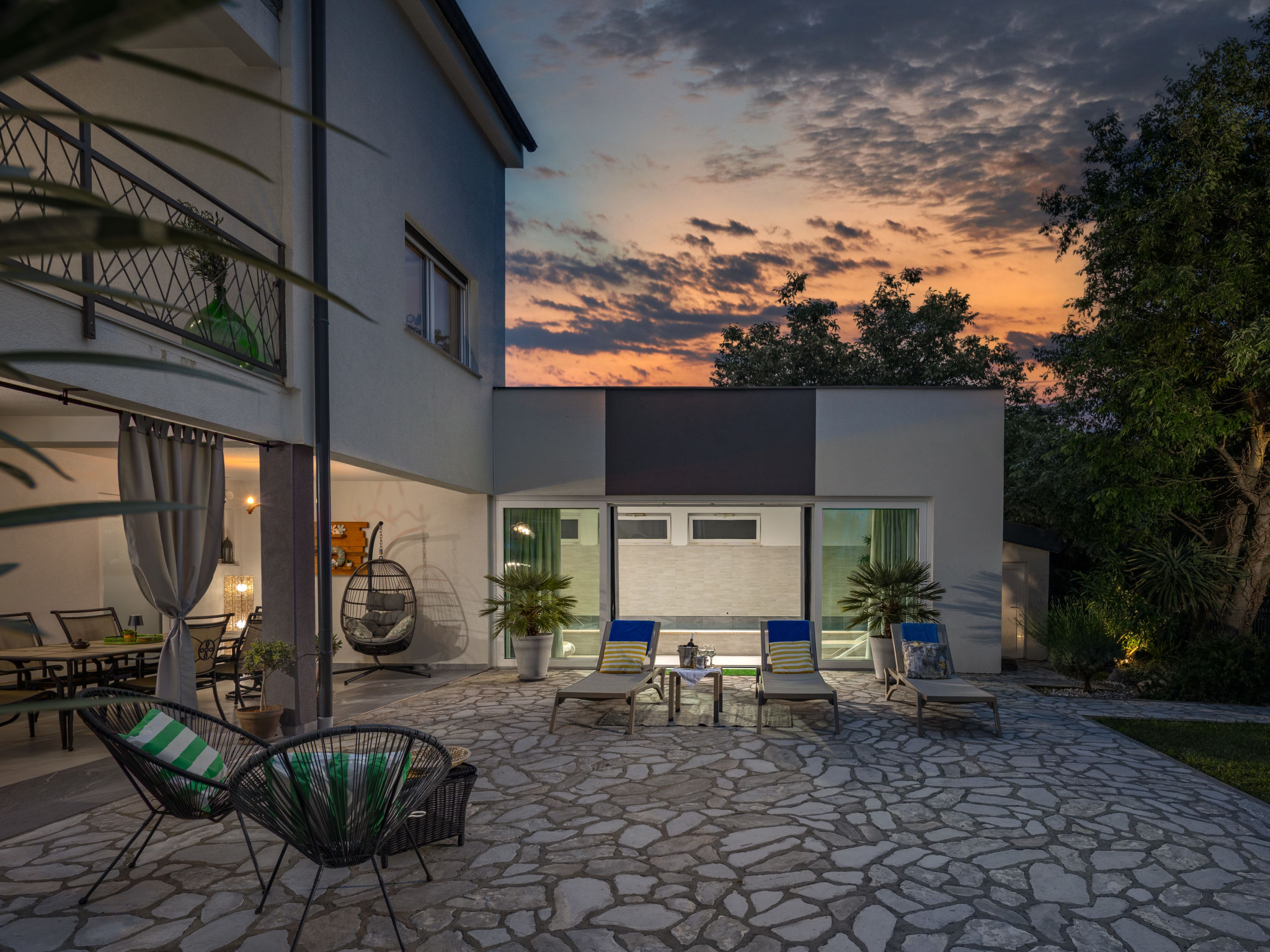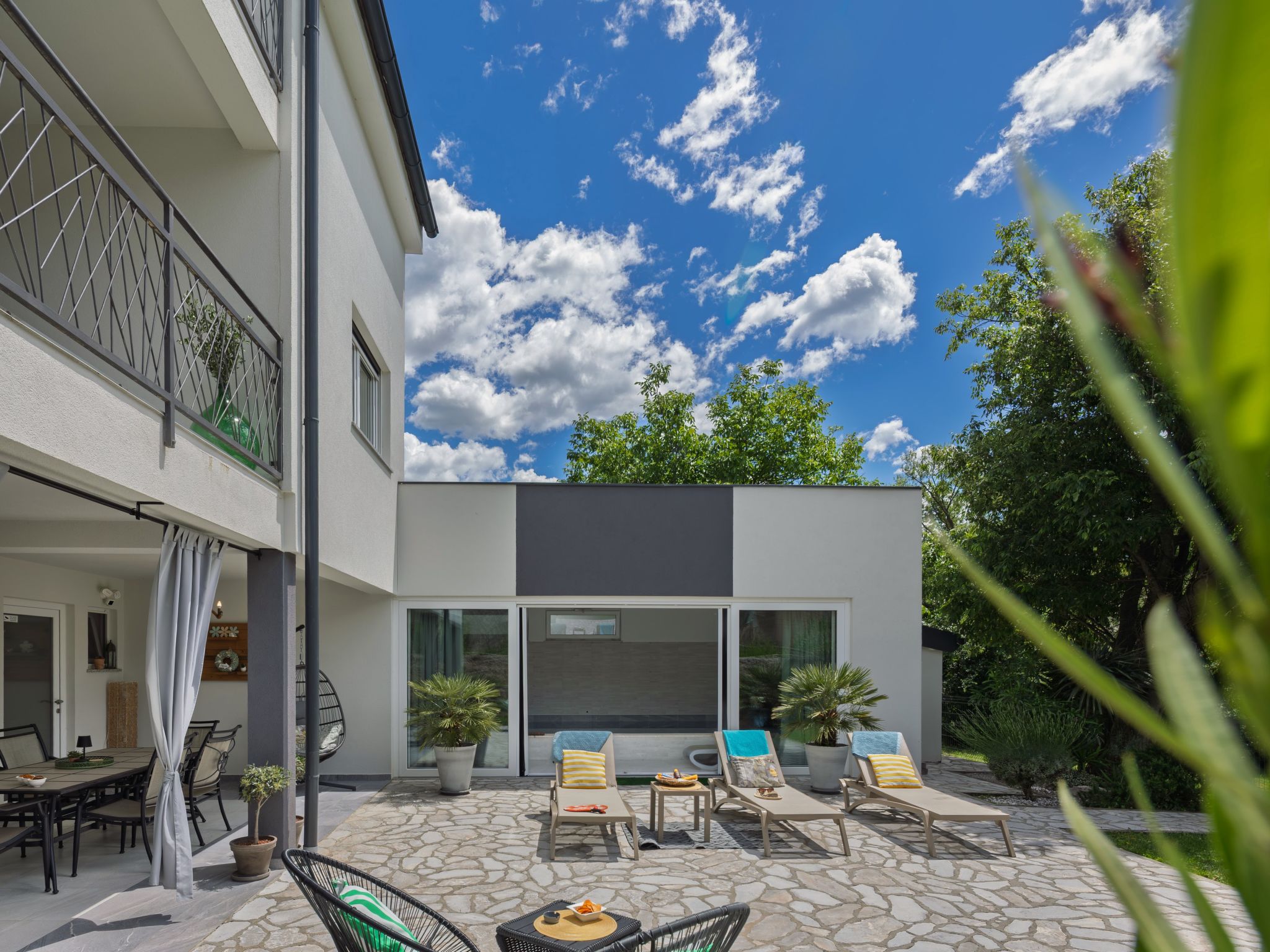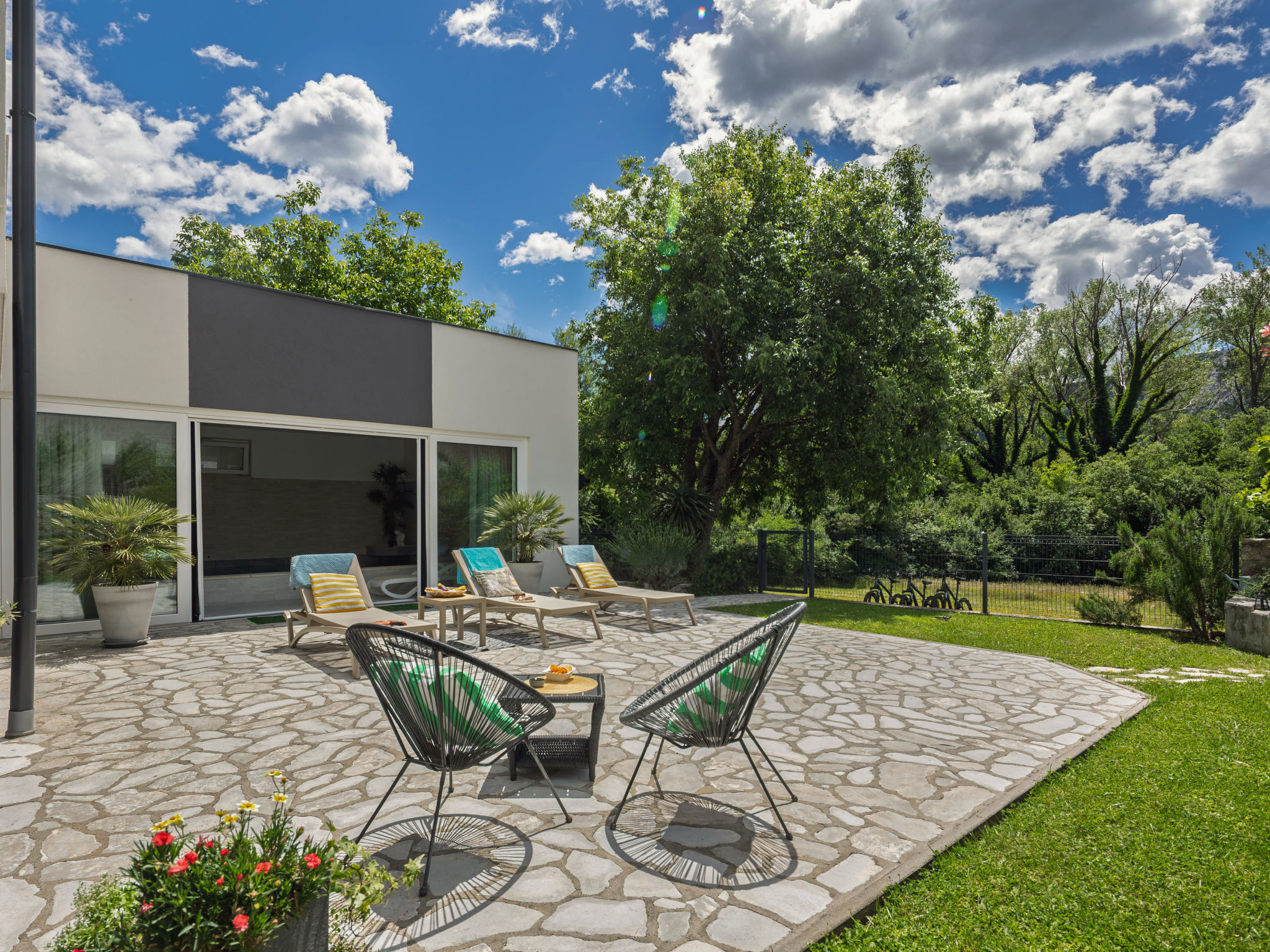Tribalj: Einfamilienhaus "Manea", auf 3 Stockwerken, Baujahr 2018. 800 m vom Zentrum von Tribalj, 7 km vom Zentrum von Crikvenica, ruhige, sonnige Lage, 7 km vom Meer, im Grünen. Zur Alleinbenutzung: Grundstück 600 m2 (eingezäunt), Pflanzen, Hallenbad eckig, beheizt (7 x 4 m, 135 cm tief, 01.01.-31.12.) mit Innentreppe. Terrasse (100 m2), Gartenmöbel, Grill. Im Hause: Internetzugang, Sauna, Wellnessbereich, Tischfussball, Alarmanlage, Waschmaschine, Wäschetrockner. Zur Verfügung: Fahrräder (4). Parkplatz (für 3 Autos) beim Haus auf dem Grundstück. Einkaufsgeschäft 750 m, Restaurant 7 km, Sandstrand 7 km, Kieselstrand 7 km, Strandbad 7 km. Nahe gelegene Sehenswürdigkeiten: Tribaljsko jezero 100 m. Jugendgruppen nur auf Anfrage. Von Gruppen junger Leute wird ein doppeltes Pfand verlangt bei der Ankunft. Schwimmbad mit Hydromassage. Es ist notwendig 7 Tage im Voraus bekannt zu geben, ob die Schwimmbadheizung eingeschaltet werden soll. Der Eigentümer kann die Lieferung von Fertiggerichten, Lebensmitteln und andreren Haushaltsgegenständen arrangieren (auf Anfrage, extra). Desinfektionsmittel und OP-Masken im Objekt erhältlich.