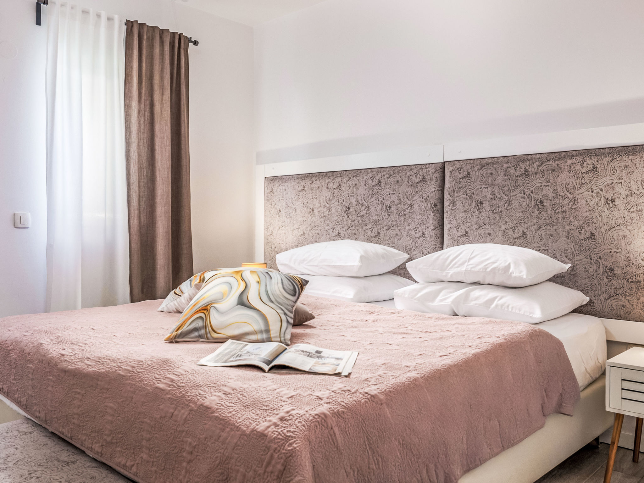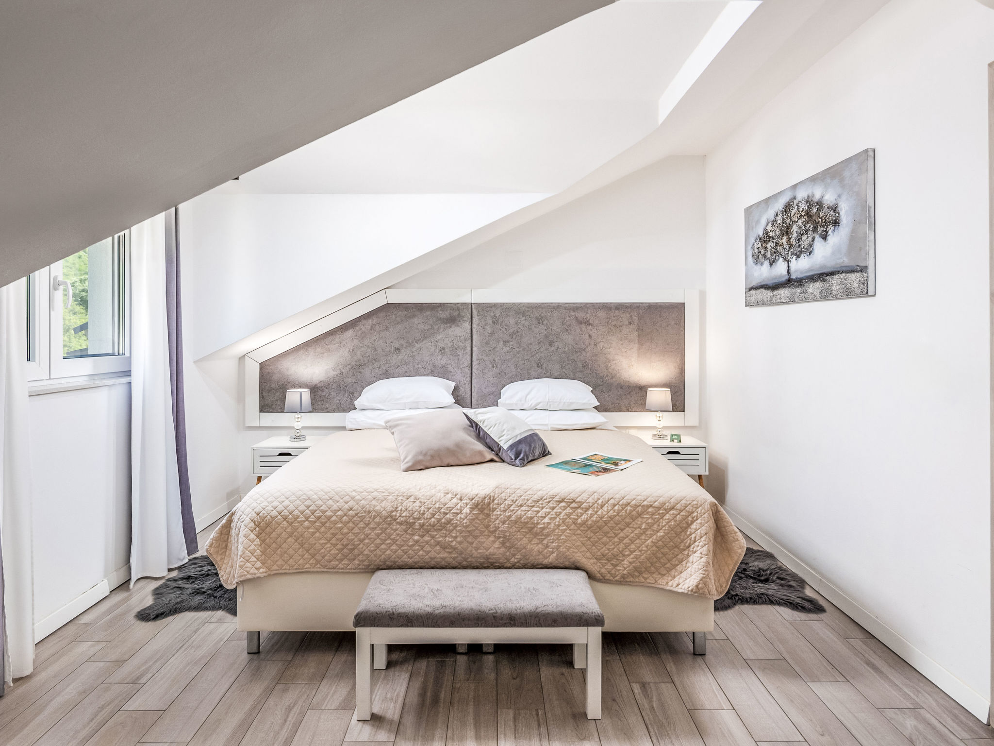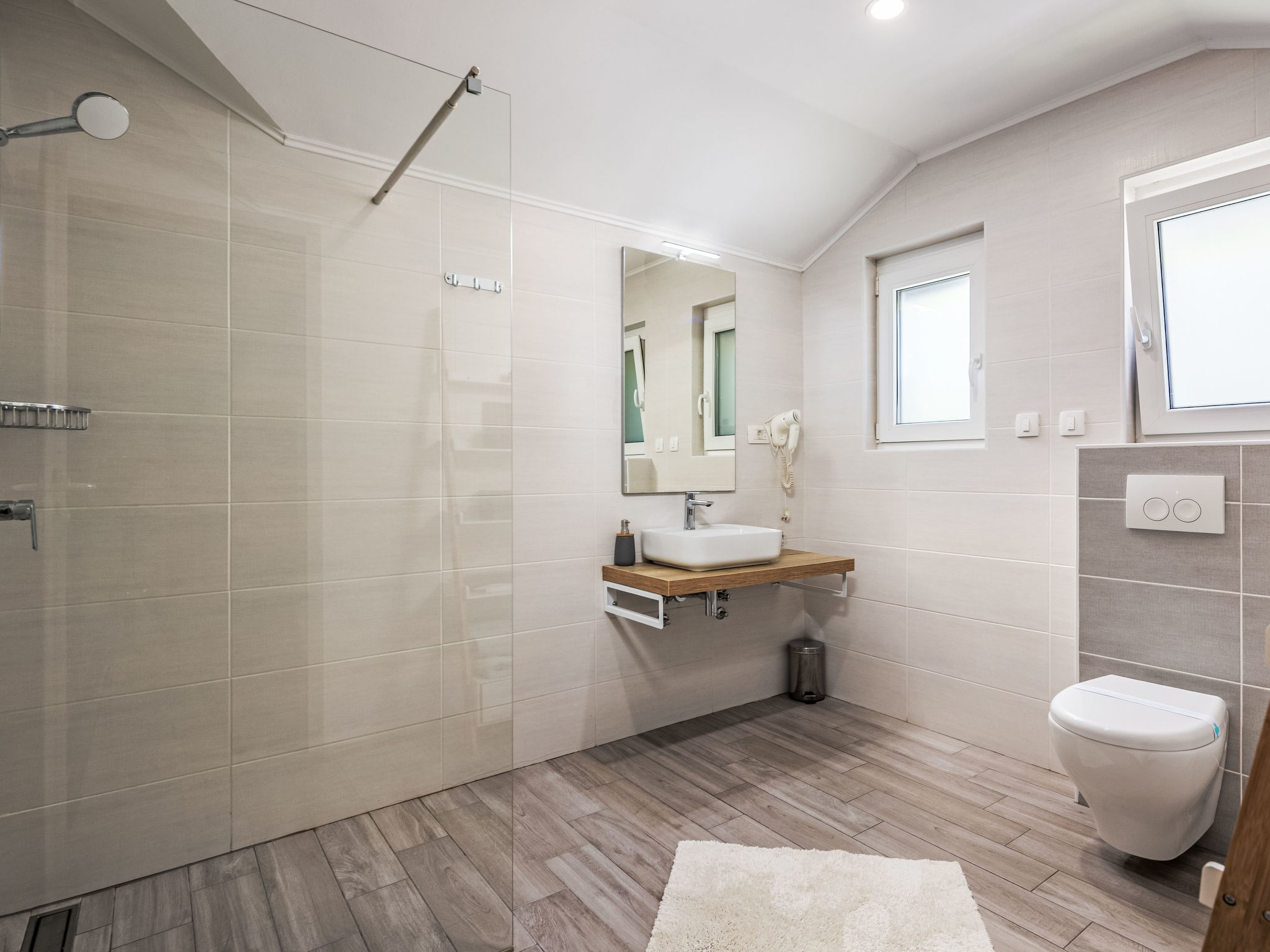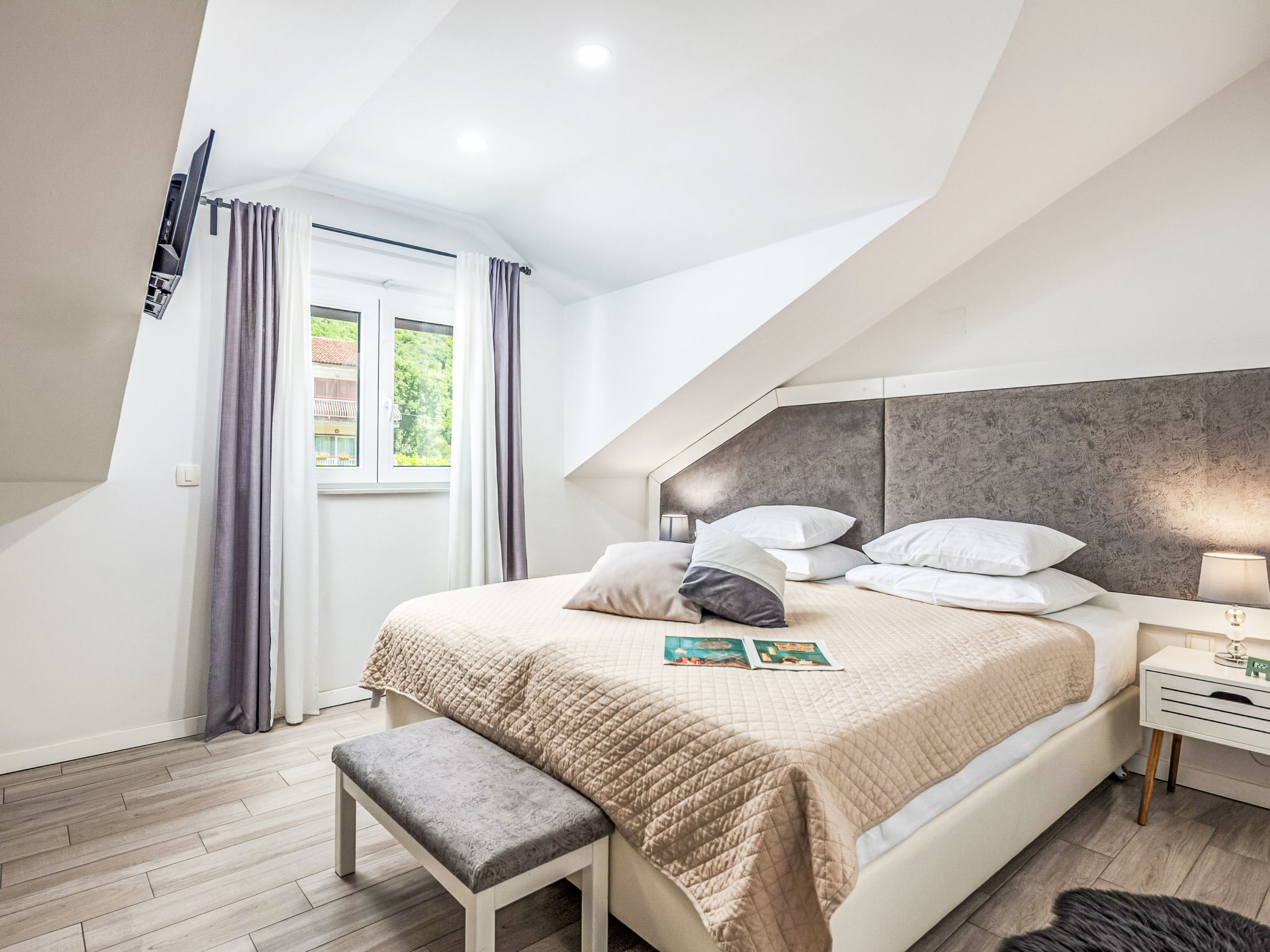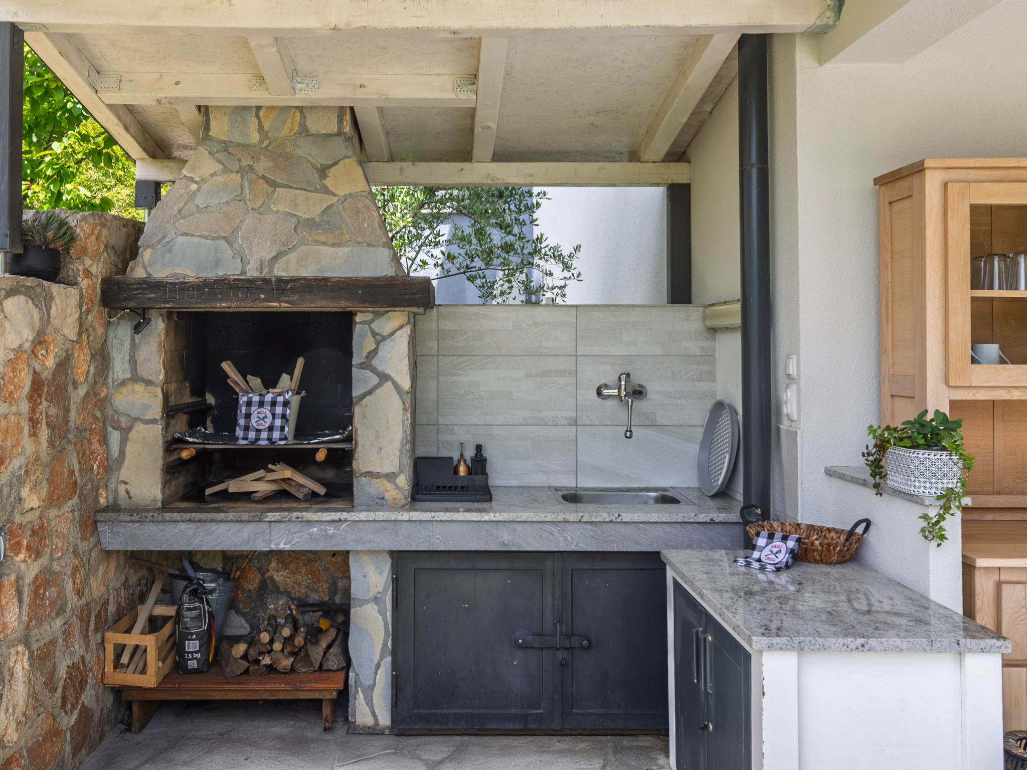 Tribalj: Einfamilienhaus "Manea", auf 3 Stockwerken, Baujahr 2018. 800 m vom Zentrum von Tribalj, 7 km vom Zentrum von Crikvenica, ruhige, sonnige Lage, 7 km vom Meer, im Grünen. Zur Alleinbenutzung: Grundstück 600 m2 (eingezäunt), Pflanzen, Hallenbad eckig, beheizt (7 x 4 m, 135 cm tief, 01.01.-31.12.) mit Innentreppe. Terrasse (100 m2), Gartenmöbel, Grill. Im Hause: Internetzugang, Sauna, Wellnessbereich, Tischfussball, Alarmanlage, Waschmaschine, Wäschetrockner. Zur Verfügung: Fahrräder (4). Parkplatz (für 3 Autos) beim Haus auf dem Grundstück. Einkaufsgeschäft 750 m, Restaurant 7 km, Sandstrand 7 km, Kieselstrand 7 km, Strandbad 7 km. Nahe gelegene Sehenswürdigkeiten: Tribaljsko jezero 100 m. Jugendgruppen nur auf Anfrage. Von Gruppen junger Leute wird ein doppeltes Pfand verlangt bei der Ankunft. Schwimmbad mit Hydromassage. Es ist notwendig 7 Tage im Voraus bekannt zu geben, ob die Schwimmbadheizung eingeschaltet werden soll. Der Eigentümer kann die Lieferung von Fertiggerichten, Lebensmitteln und andreren Haushaltsgegenständen arrangieren (auf Anfrage, extra). Desinfektionsmittel und OP-Masken im Objekt erhältlich.