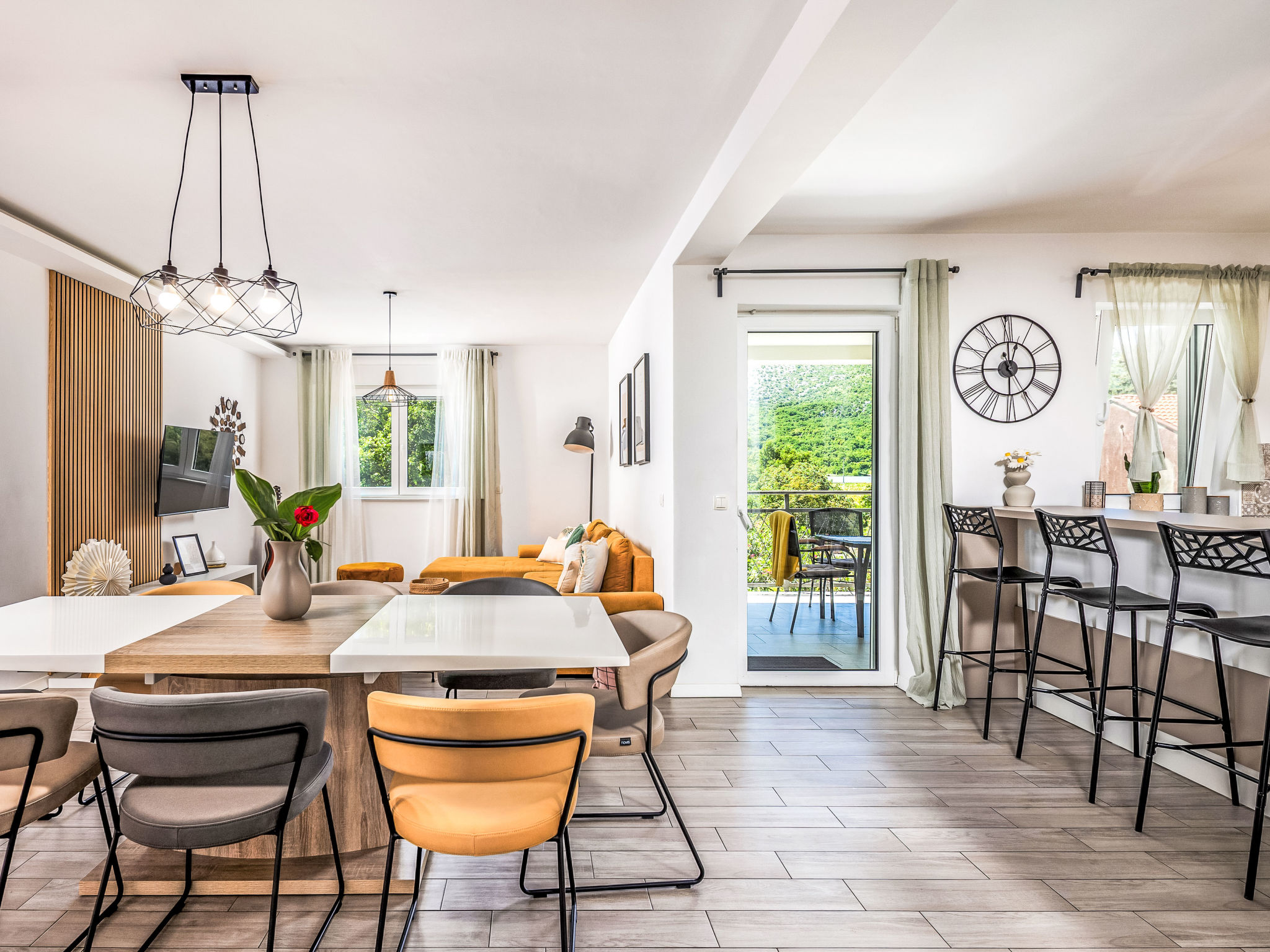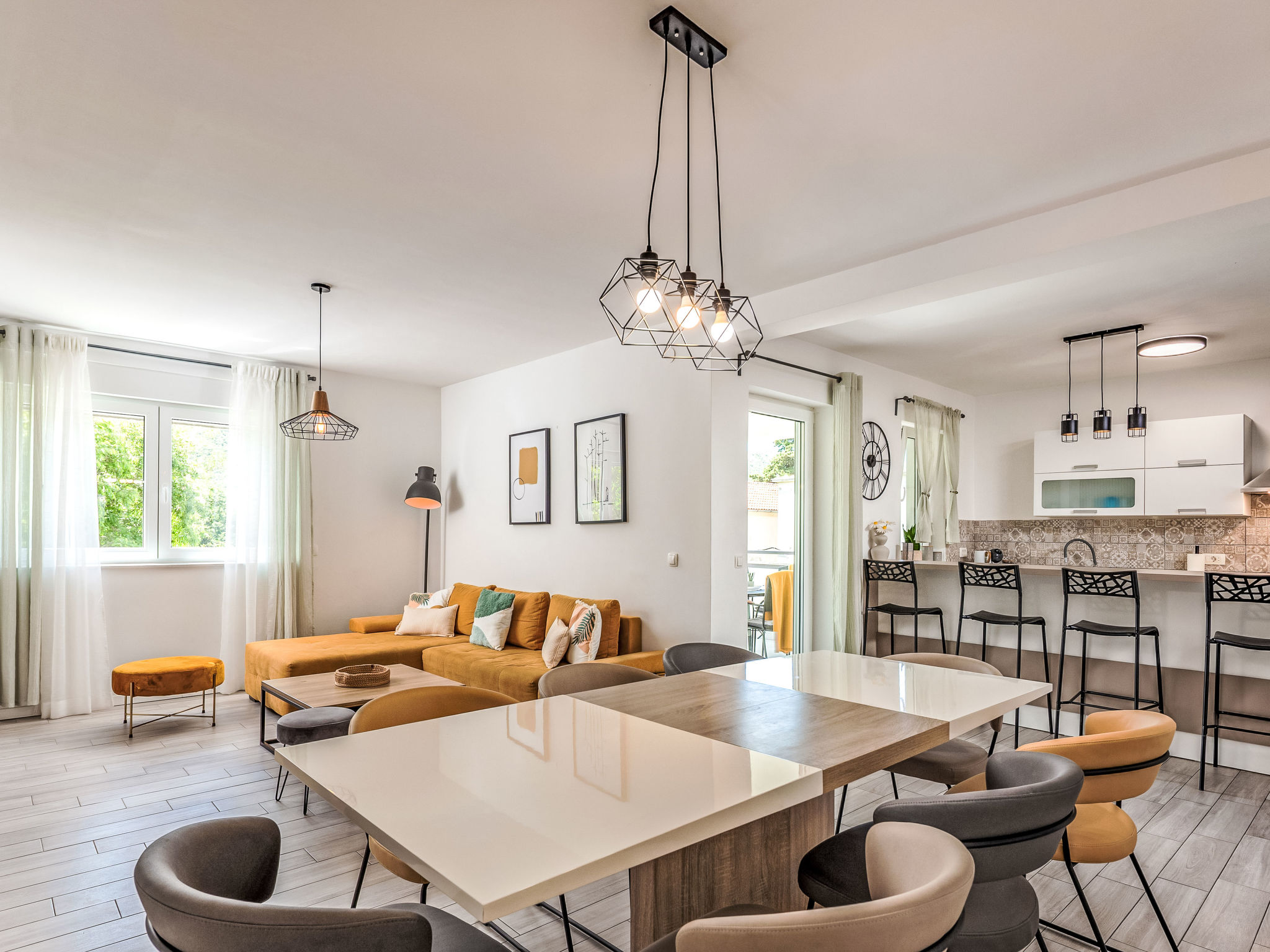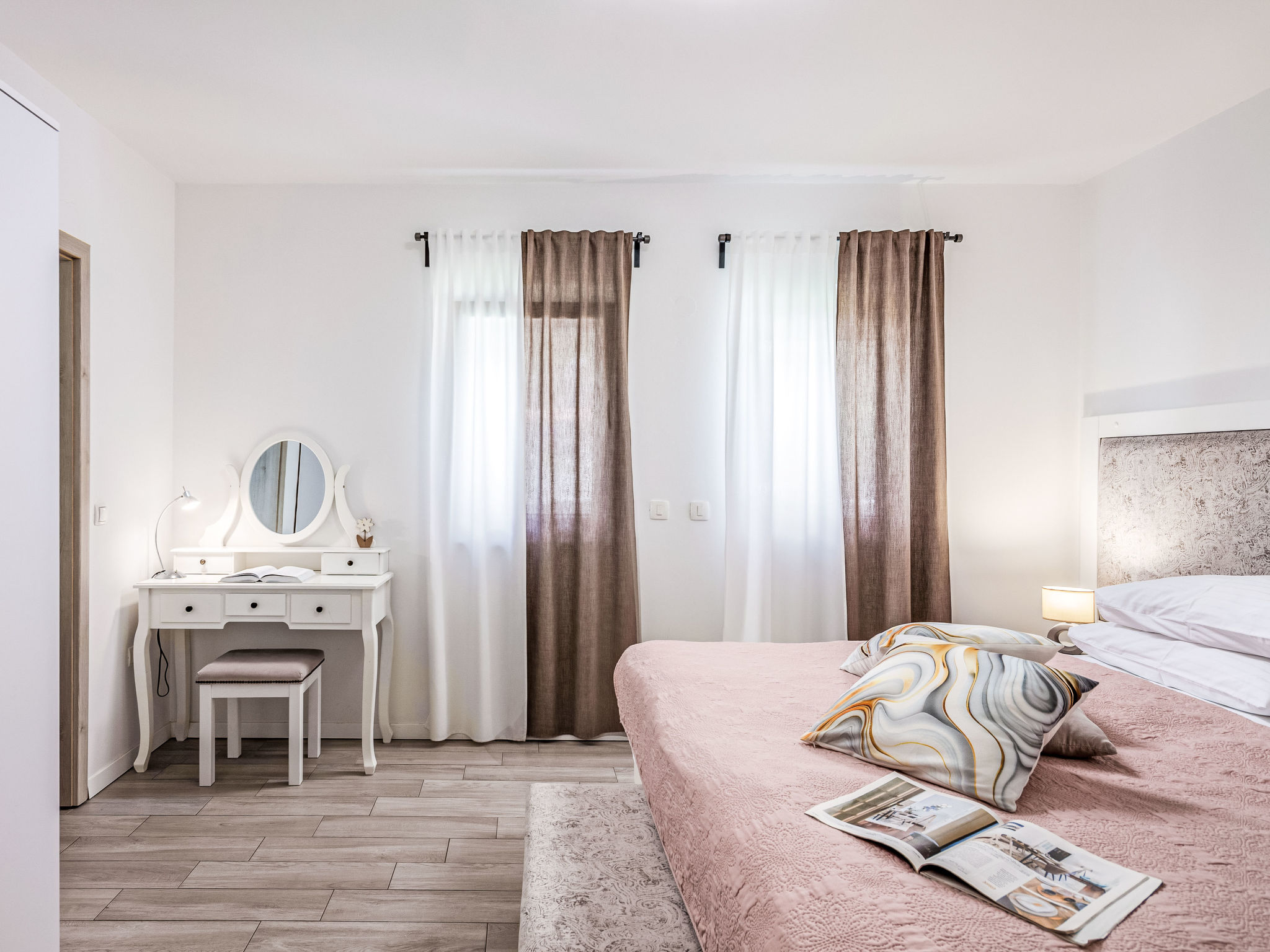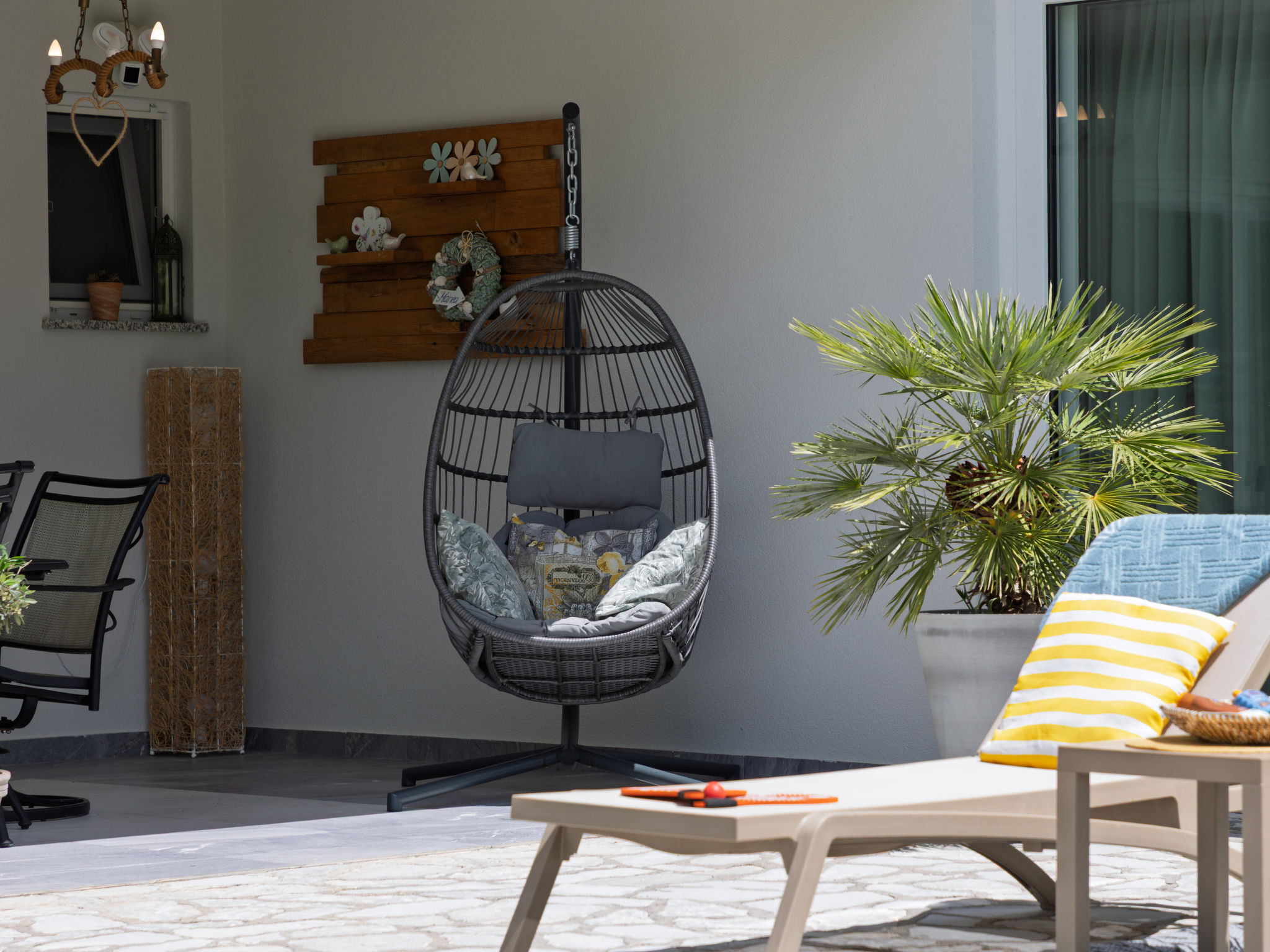 Tribalj: Einfamilienhaus "Manea", auf 3 Stockwerken, Baujahr 2018. 800 m vom Zentrum von Tribalj, 7 km vom Zentrum von Crikvenica, ruhige, sonnige Lage, 7 km vom Meer, im Grünen. Zur Alleinbenutzung: Grundstück 600 m2 (eingezäunt), Pflanzen, Hallenbad eckig, beheizt (7 x 4 m, 135 cm tief, 01.01.-31.12.) mit Innentreppe. Terrasse (100 m2), Gartenmöbel, Grill. Im Hause: Internetzugang, Sauna, Wellnessbereich, Tischfussball, Alarmanlage, Waschmaschine, Wäschetrockner. Zur Verfügung: Fahrräder (4). Parkplatz (für 3 Autos) beim Haus auf dem Grundstück. Einkaufsgeschäft 750 m, Restaurant 7 km, Sandstrand 7 km, Kieselstrand 7 km, Strandbad 7 km. Nahe gelegene Sehenswürdigkeiten: Tribaljsko jezero 100 m. Jugendgruppen nur auf Anfrage. Von Gruppen junger Leute wird ein doppeltes Pfand verlangt bei der Ankunft. Schwimmbad mit Hydromassage. Es ist notwendig 7 Tage im Voraus bekannt zu geben, ob die Schwimmbadheizung eingeschaltet werden soll. Der Eigentümer kann die Lieferung von Fertiggerichten, Lebensmitteln und andreren Haushaltsgegenständen arrangieren (auf Anfrage, extra). Desinfektionsmittel und OP-Masken im Objekt erhältlich.