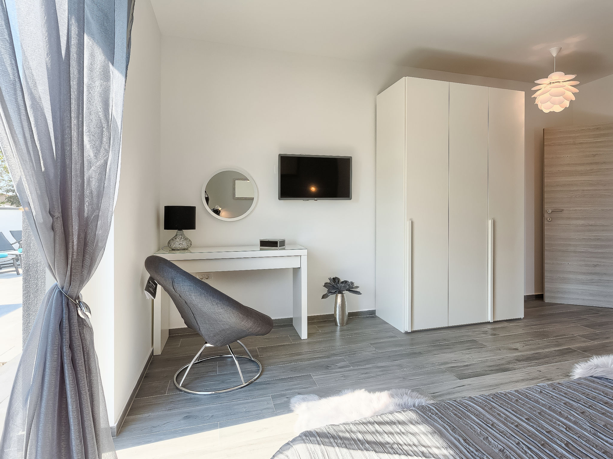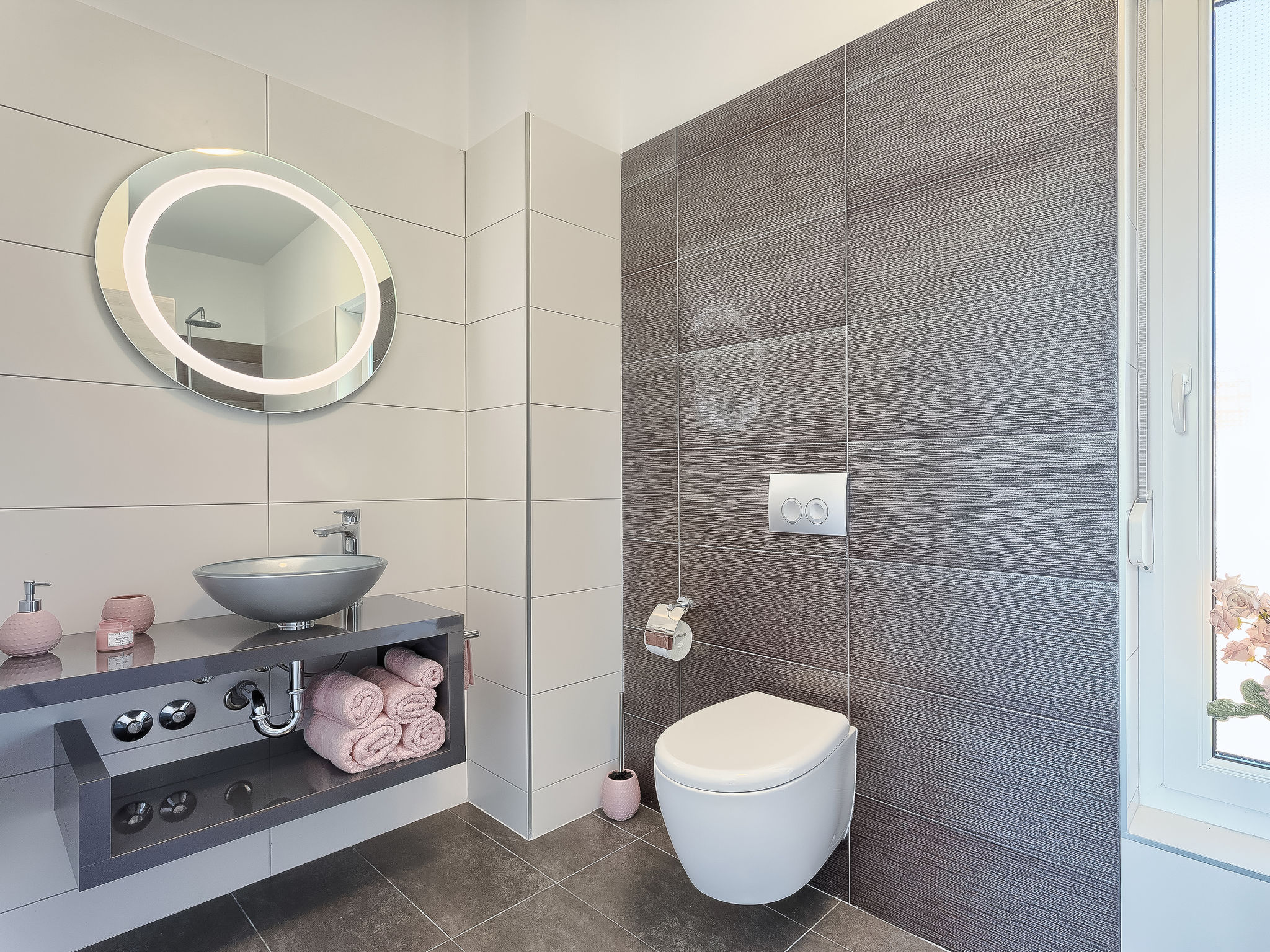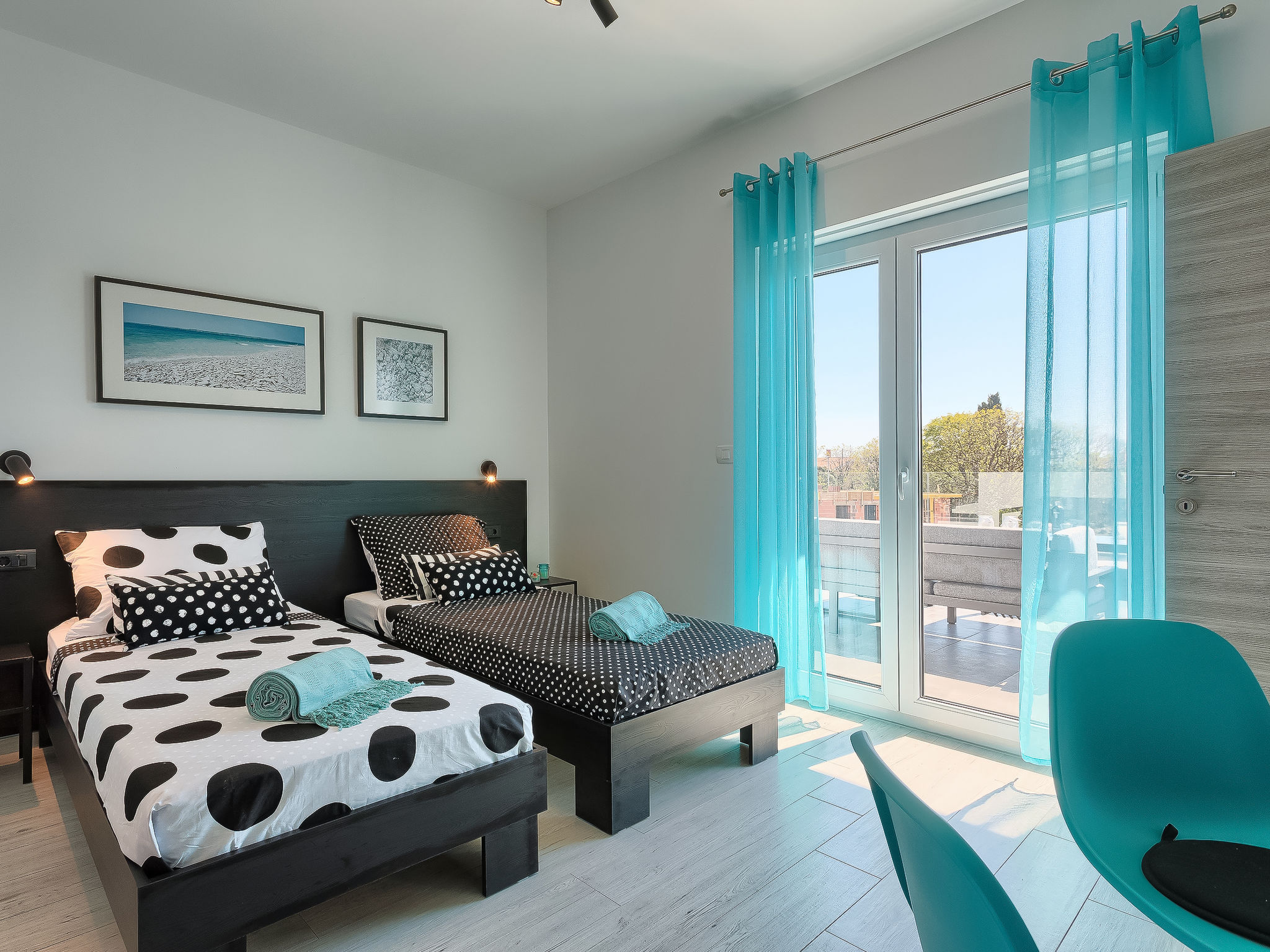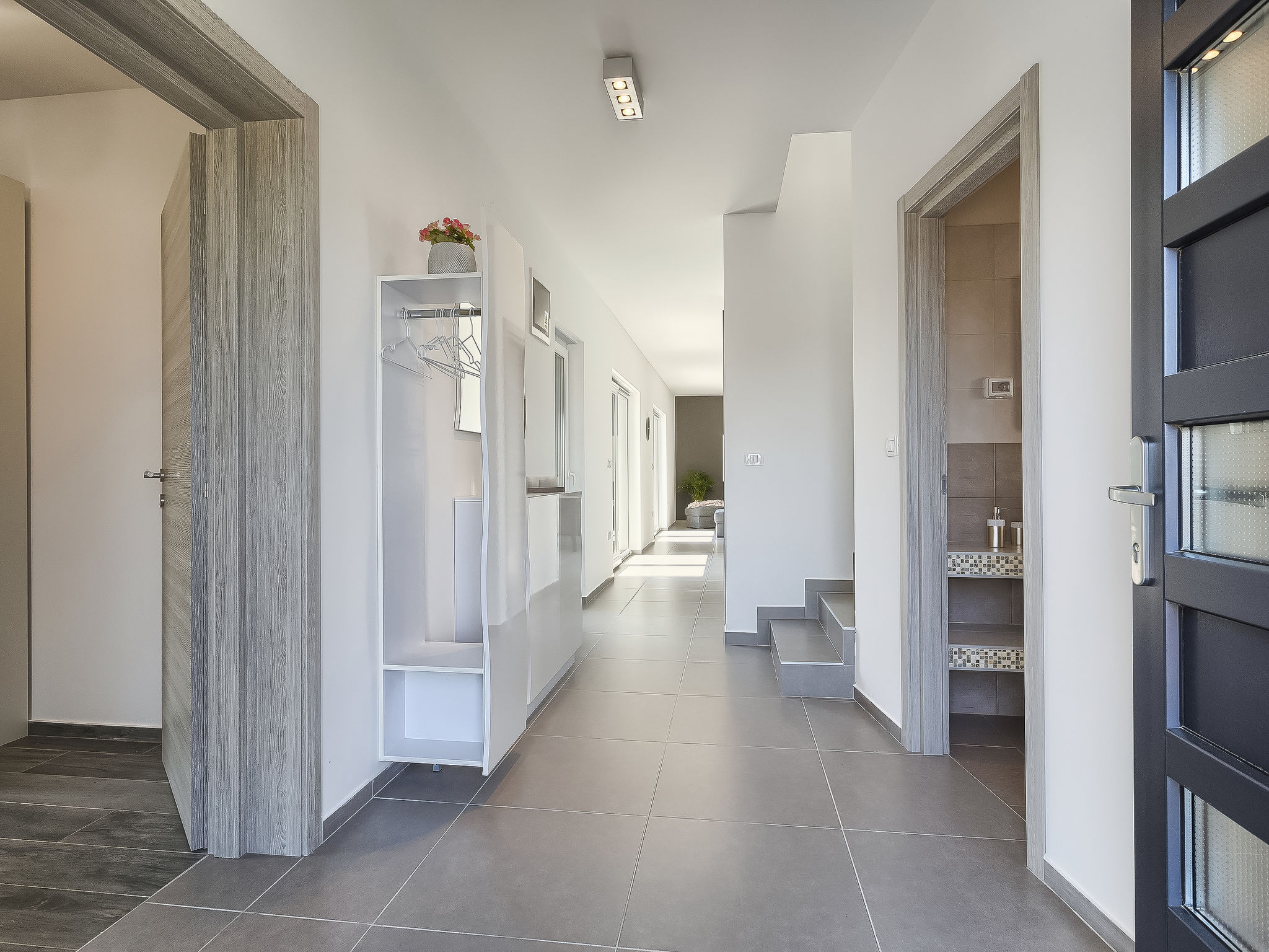 Premantura 11 km von Pula: Schöne Villa "Ella Premantura", auf 2 Stockwerken, Baujahr 2018. 250 m vom Zentrum von Premantura, sonnige Lage, 500 m vom Meer, 500 m vom Strand. Zur Alleinbenutzung: Grundstück 600 m2 (eingezäunt), schöner Garten mit Rasen, Schwimmbad eckig (8 x 4 m, 140 cm tief, 04.04.-10.10.) mit Innentreppe. Aussendusche, Grill. Im Hause: Internetzugang, Waschmaschine. Parkplatz (für 2 Autos) beim Haus auf dem Grundstück. Einkaufsgeschäft 250 m, Supermarkt 4.5 km, Restaurant 50 m, Kieselstrand 2.5 km, Felsstrand 500 m. Golfplatz 600 m, Surfschule 2.5 km, Tennis 750 m, Reitstall 10 km, Wanderwege ab Haus 100 m, Radweg 150 m. Nahe gelegene Sehenswürdigkeiten: Nature park Kamenjak 650 m. Jugendgruppen nur auf Anfrage. Die Nachbarschaft ist sehr lärmempfindlich. Ruhe und gutes Benehmen wird erwartet. Schwimmbad mit Hydromassage.