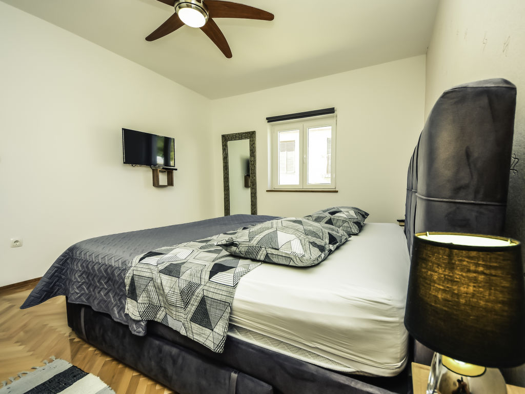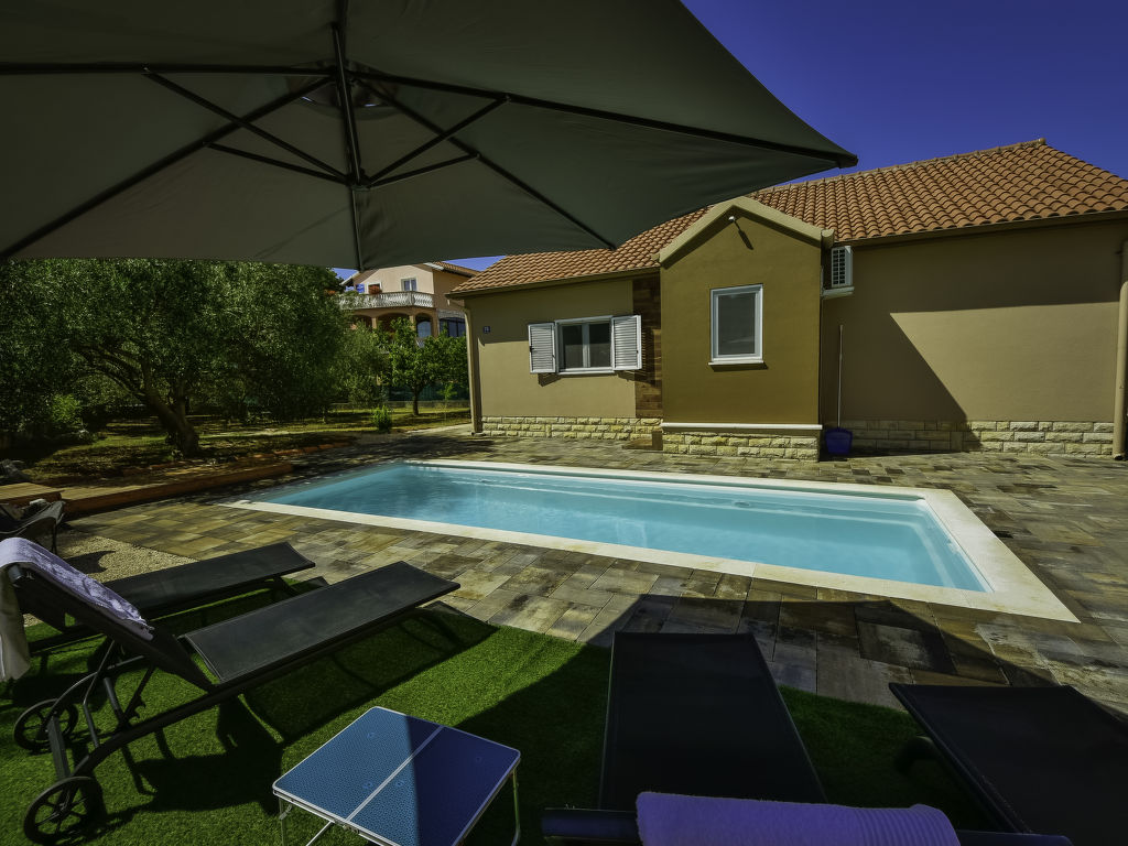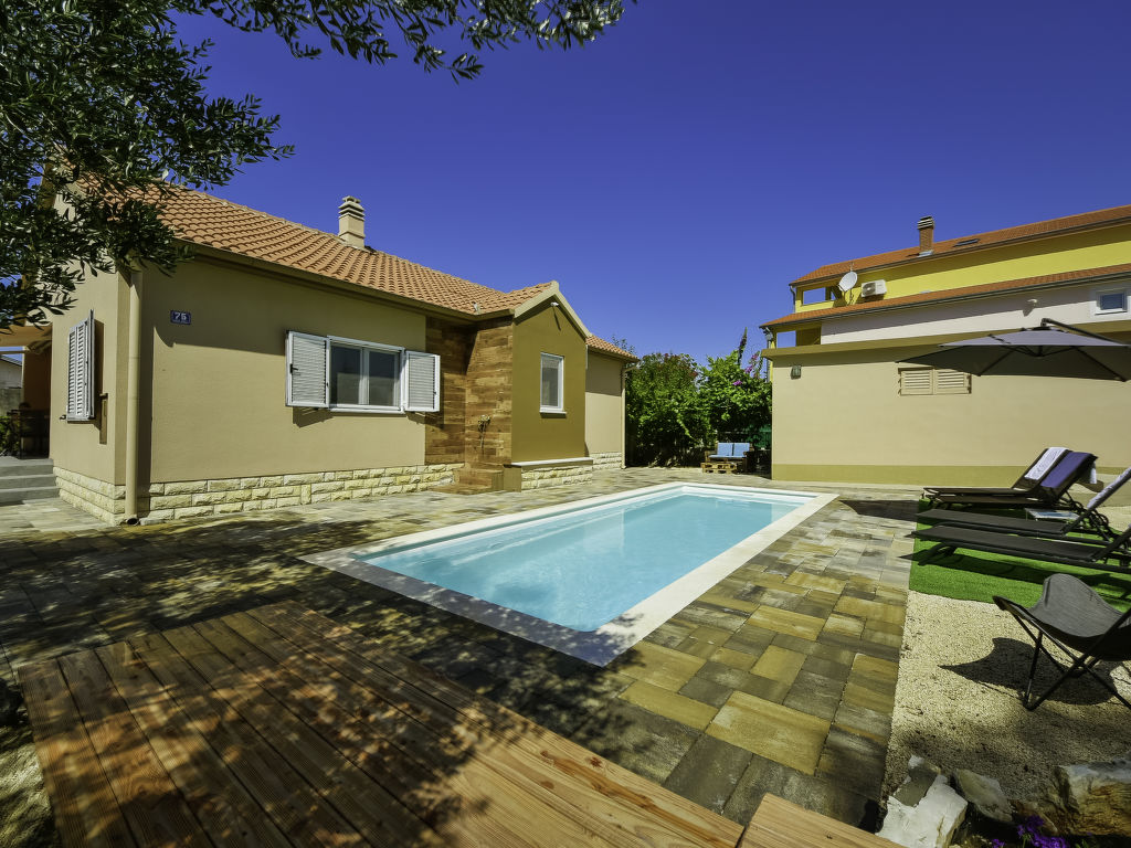 Bibinje 10 km von Zadar: Einfamilienhaus "L&L". 1 km vom Zentrum von Bibinje, ruhige Lage, 120 m vom Meer, 120 m vom Strand. Zur Alleinbenutzung: Grundstück 900 m2 (eingezäunt) mit Bäumen, Schwimmbad eckig (8 x 3 m, 140 cm tief, 04.05.-19.10.) mit Innentreppe. Aussendusche. Im Hause: Internetzugang, Waschmaschine. Parkplatz beim Haus auf dem Grundstück, Einzelgarage beim Haus. Einkaufsgeschäft 200 m, Restaurant 1.5 km, Kieselstrand 120 m. Tennis 2 km. Jugendgruppen nur auf Anfrage. Die Nachbarschaft ist sehr lärmempfindlich. Ruhe und gutes Benehmen wird erwartet. Das veranstalten von Partys ist nicht gestattet.