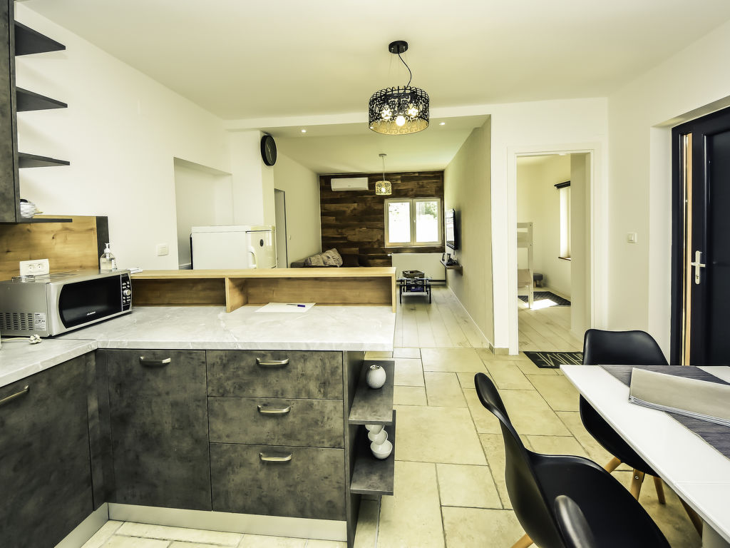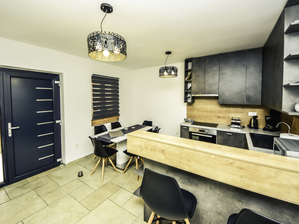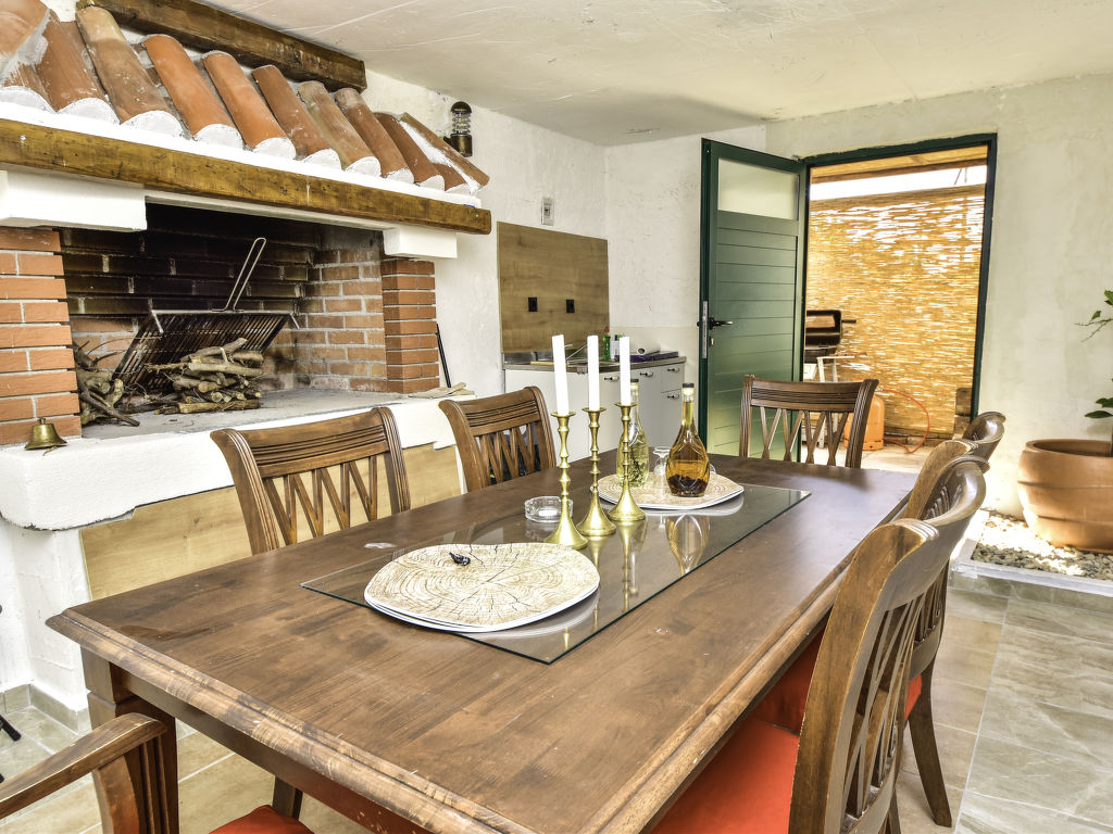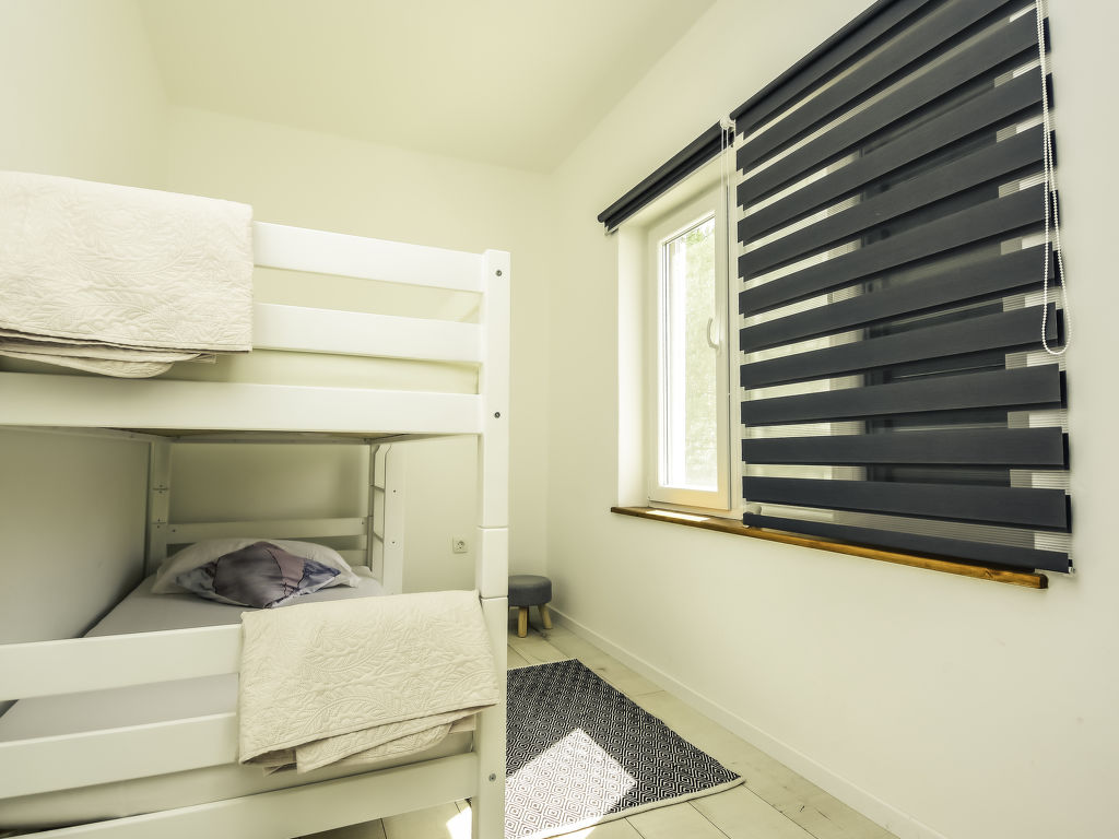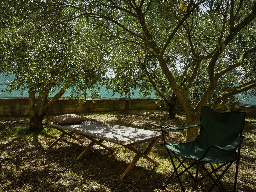 4-Zimmer-Haus 110 m2. Wohn-/Esszimmer 30 m2 mit 1 Doppeldiwanbett (140 cm, Länge 200 cm), Sat-TV (Flachbildschirm), Klimaanlage. Ausgang zur Terrasse. 1 Zimmer mit 1 franz. Bett (160 cm, Länge 200 cm), Sat-TV (Flachbildschirm). 1 Zimmer mit 1 franz. Bett (180 cm, Länge 200 cm), Sat-TV (Flachbildschirm). 1 Zimmer mit 1 x 2 Etagenbetten (90 cm, Länge 190 cm). Offene Küche (Backofen, Geschirrspüler, 4 Glaskeramikherd Platten, Mikrowelle, Tiefkühler, elektrische Kaffeemaschine). 2 Duschen/WC. Terrasse 15 m2 teilweise überdacht. Terrassenmöbel, Gartengrill (mobil), Liegestühle. Zur Verfügung: Haartrockner. Internet (Wireless LAN, gratis).