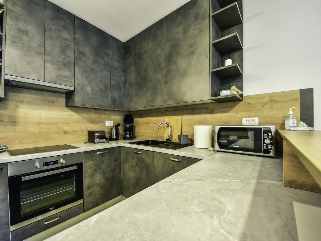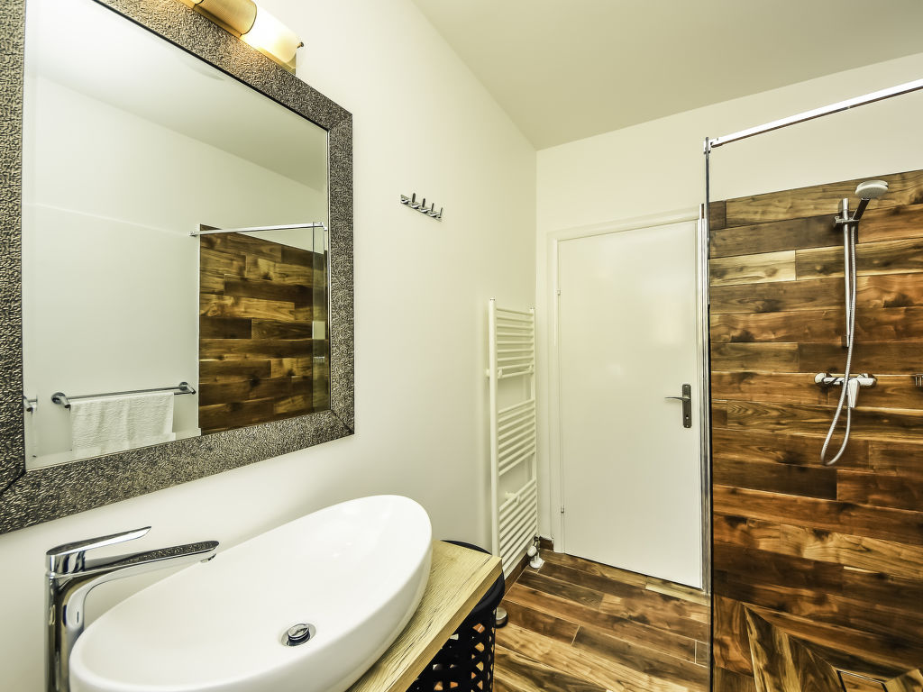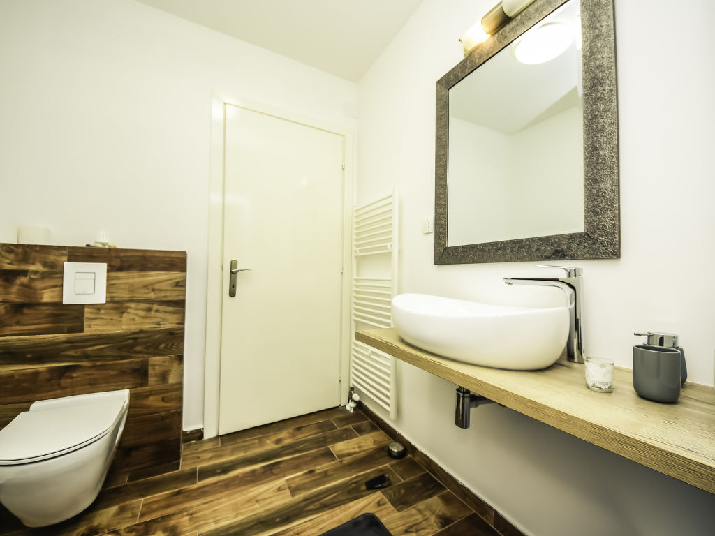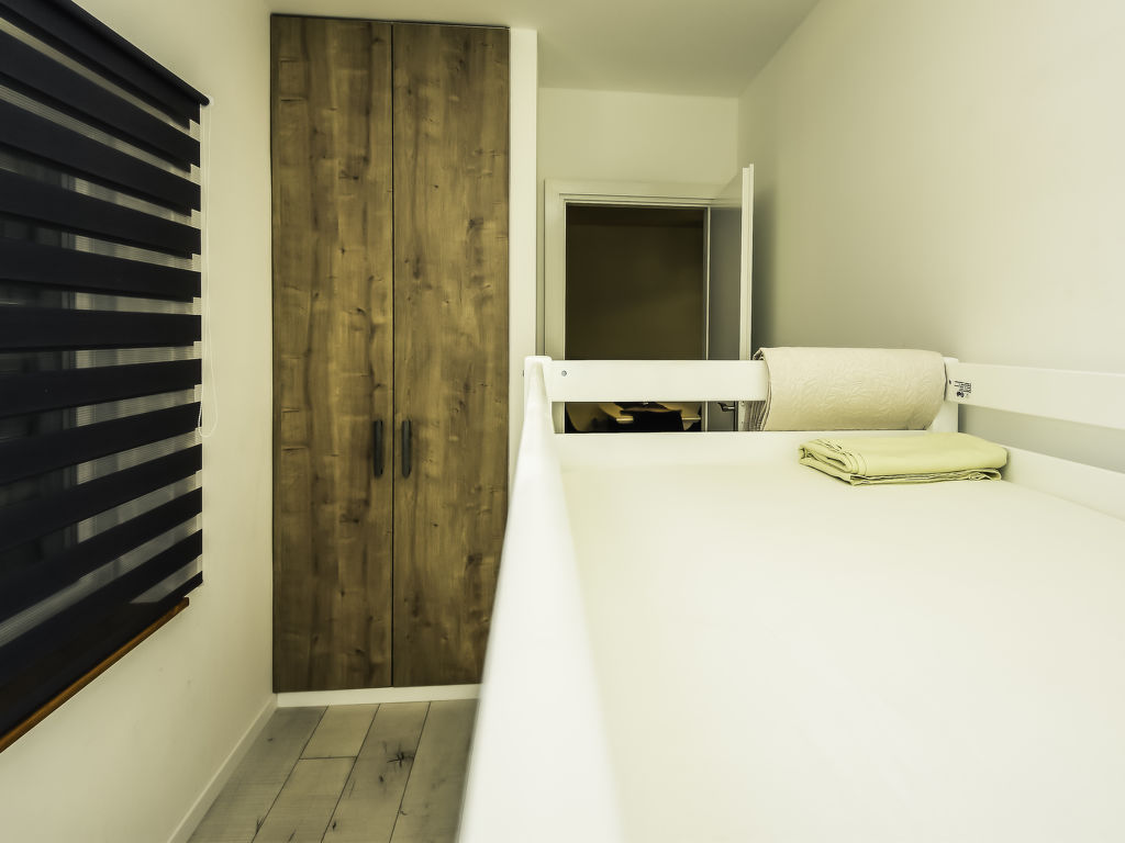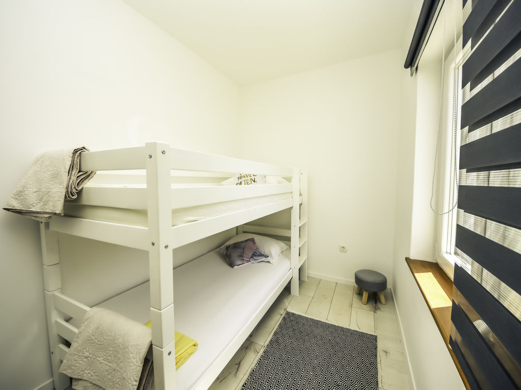 4-Zimmer-Haus 110 m2. Wohn-/Esszimmer 30 m2 mit 1 Doppeldiwanbett (140 cm, Länge 200 cm), Sat-TV (Flachbildschirm), Klimaanlage. Ausgang zur Terrasse. 1 Zimmer mit 1 franz. Bett (160 cm, Länge 200 cm), Sat-TV (Flachbildschirm). 1 Zimmer mit 1 franz. Bett (180 cm, Länge 200 cm), Sat-TV (Flachbildschirm). 1 Zimmer mit 1 x 2 Etagenbetten (90 cm, Länge 190 cm). Offene Küche (Backofen, Geschirrspüler, 4 Glaskeramikherd Platten, Mikrowelle, Tiefkühler, elektrische Kaffeemaschine). 2 Duschen/WC. Terrasse 15 m2 teilweise überdacht. Terrassenmöbel, Gartengrill (mobil), Liegestühle. Zur Verfügung: Haartrockner. Internet (Wireless LAN, gratis).