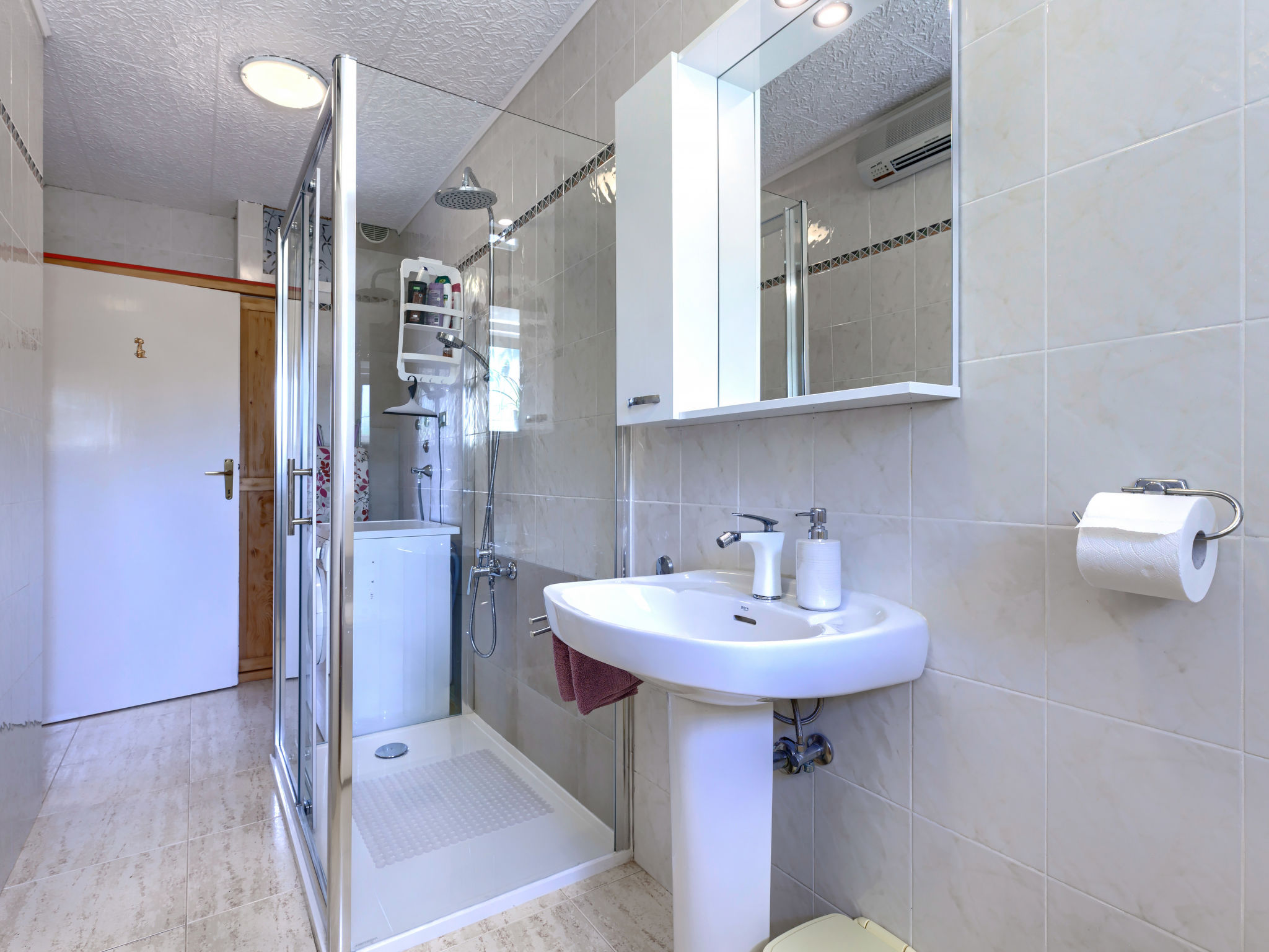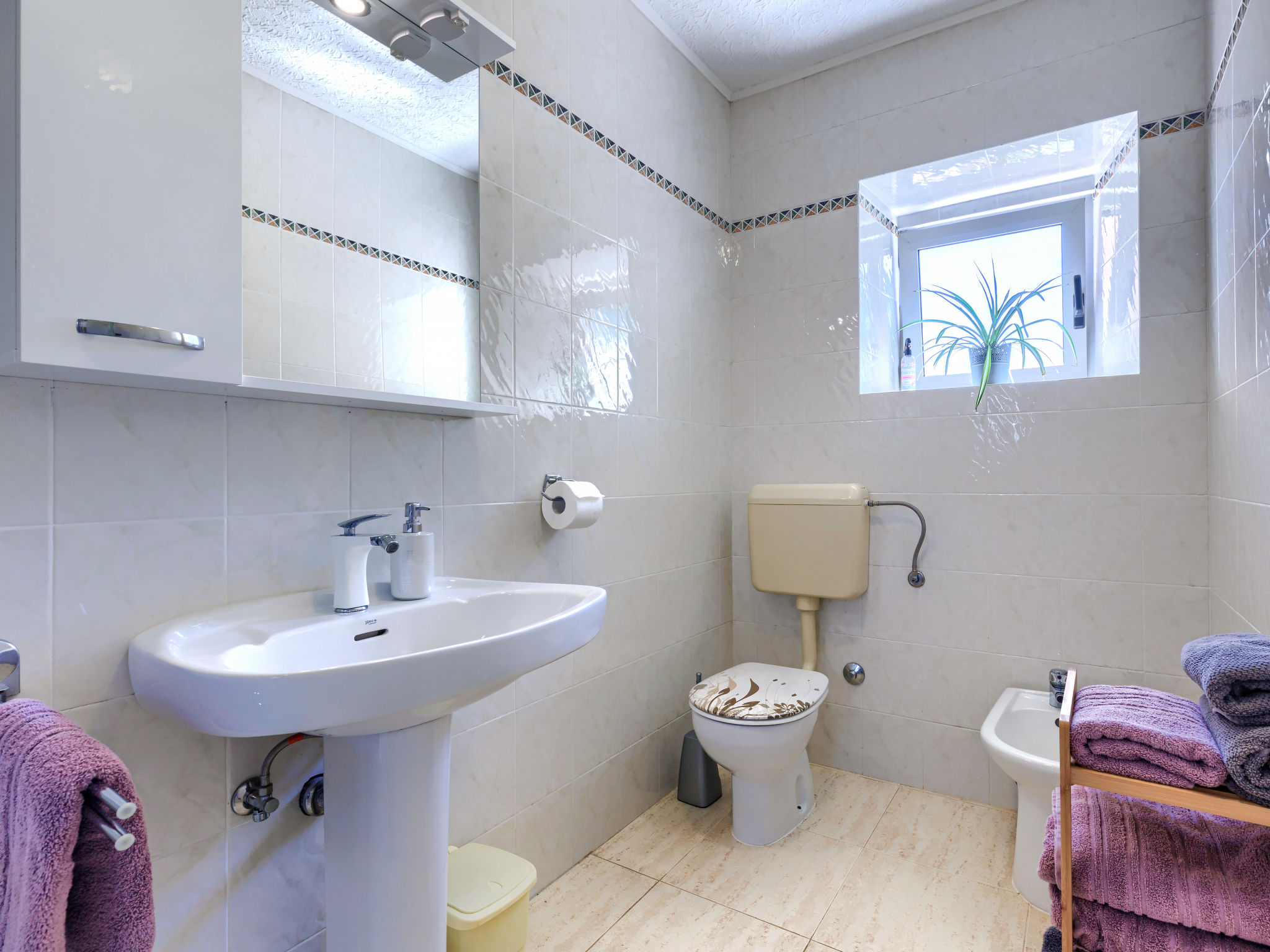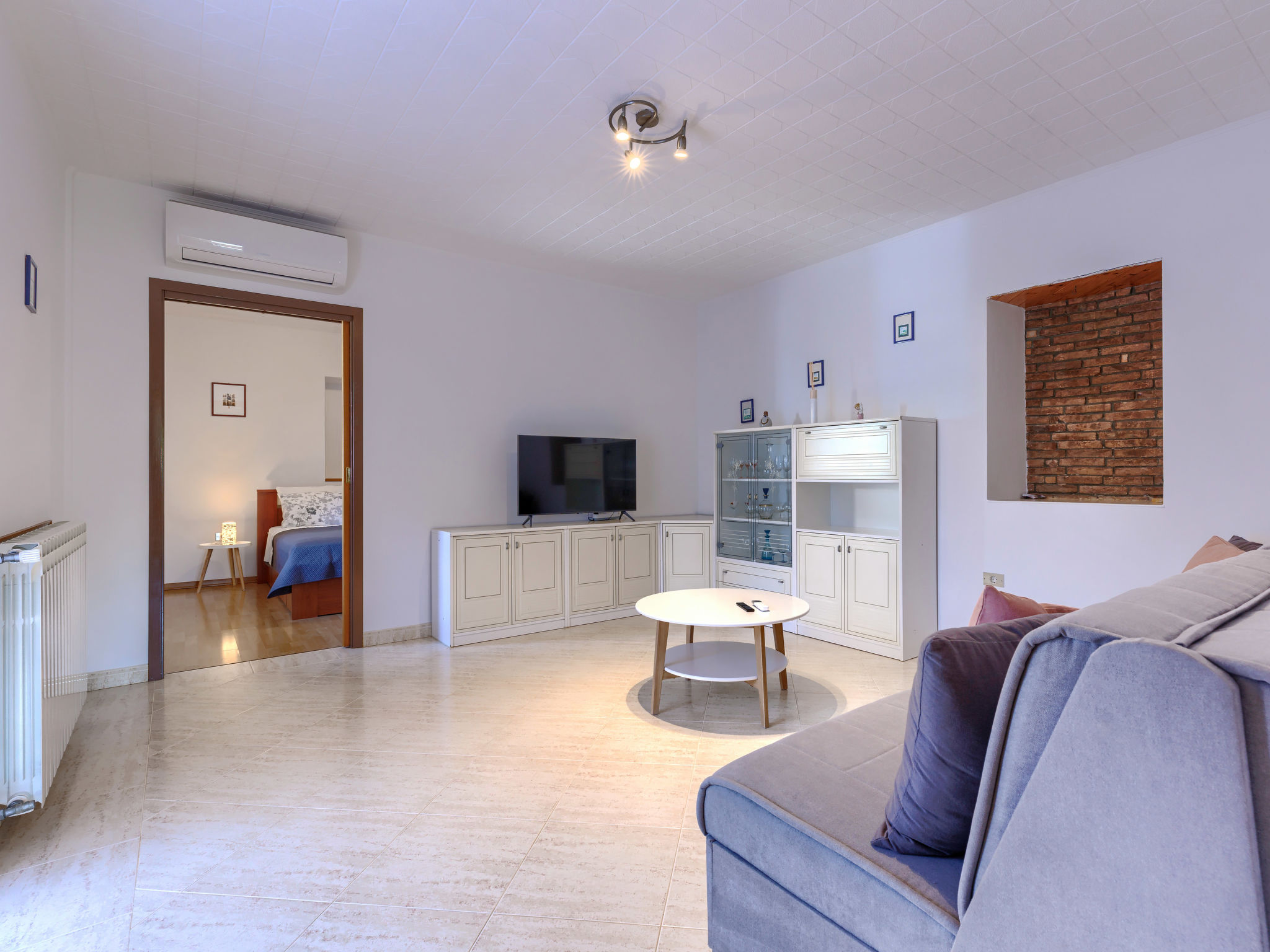2-Zimmer-Wohnung 45 m2, im Erdgeschoss. Wohnzimmer 15 m2 mit 2 Diwanbetten (120 cm, Länge 200 cm), Sat-TV (Flachbildschirm), Klimaanlage. Ausgang zur Terrasse. 1 Zimmer mit 1 franz. Bett (160 cm, Länge 200 cm). Küche (4 Kochplatten, Backofen, Mikrowelle, Tiefkühler, elektrische Kaffeemaschine) mit Esstisch. Sitzbad/Bidet/WC. Warmluftheizung. Terrasse 7 m2, überdacht. Terrassenmöbel. Zur Verfügung: Waschmaschine, Haartrockner. Internet (Wireless LAN, gratis). Parkplatz (überdacht, 1 Auto). Bitte beachten: eigener Eingang.
