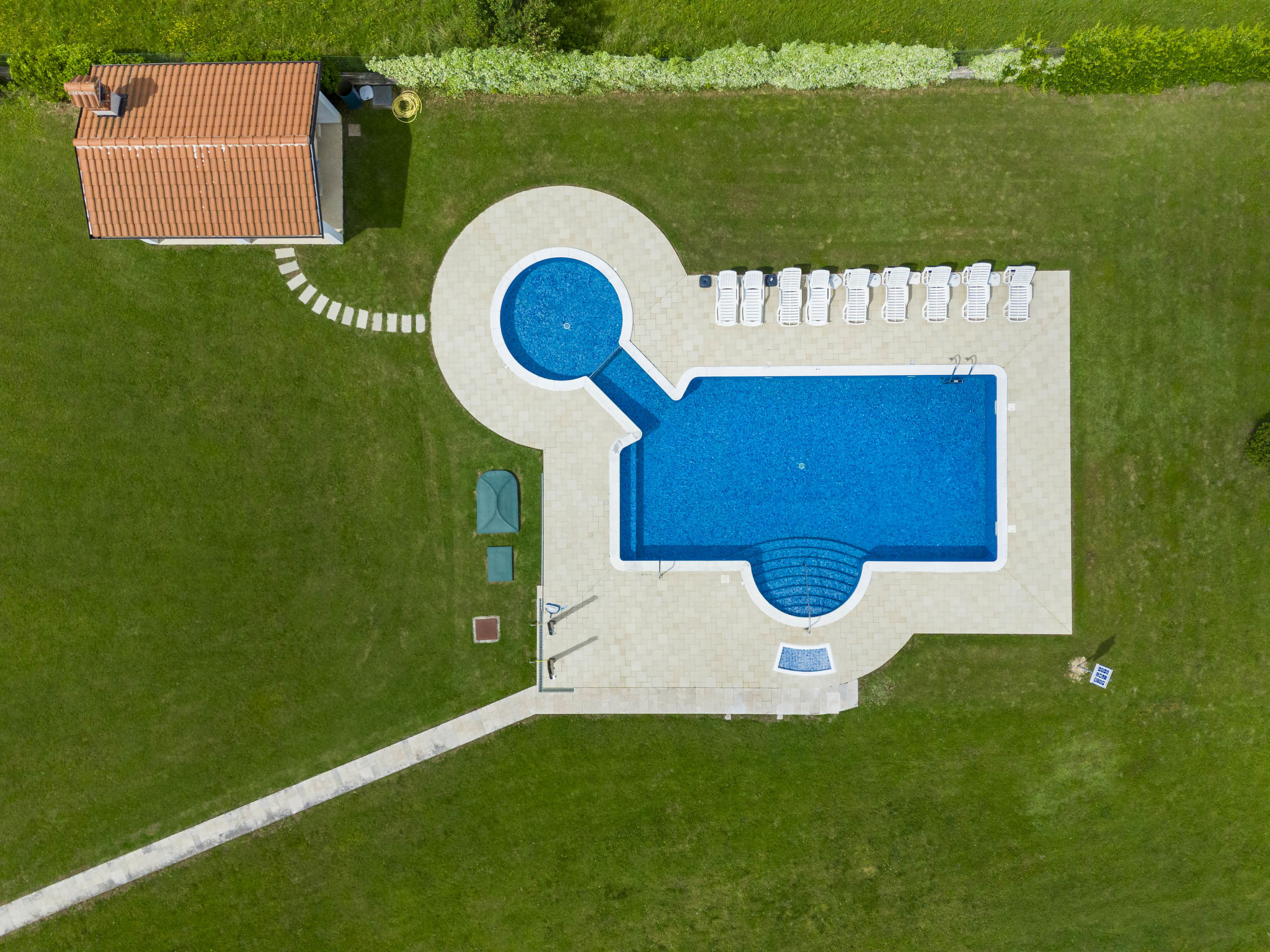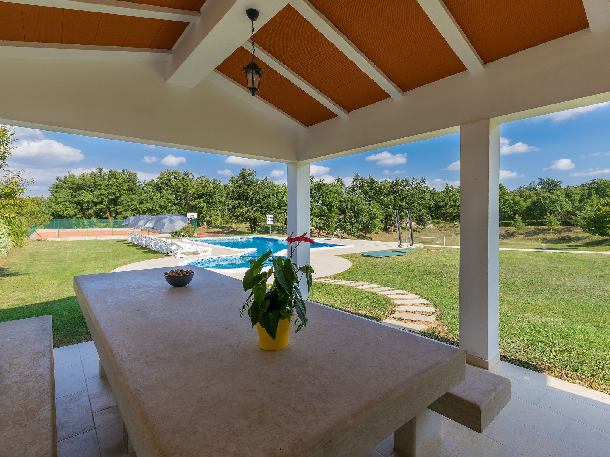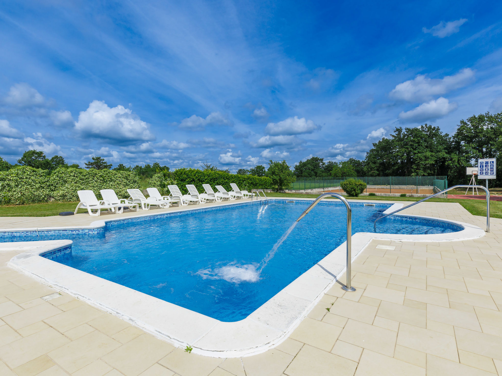 Dreifamilienhaus "Macini". 20 km vom Zentrum von Rovinj, 6 km vom Zentrum von Žminj, 33 km vom Zentrum von Pula, alleinstehende Lage, 20 km vom Meer. Zur Mitbenutzung: naturbelassenes Grundstück 15'000 m2 mit Bäumen, Wiese, Schwimmbad (12 x 6 m, 130 cm tief, saisonale Verfügbarkeit: 04.Apr.-06.Nov.). Aussendusche, Tennis, Basketball, Volleyball, Volleyballfeld, Gartenmöbel (Rutschbahn, Schaukel). Im Hause: Internetzugang. Parkplatz auf dem Grundstück. Einkaufsgeschäft 4 km, Restaurant 6 km, Kieselstrand 20 km. Jacht-Hafen 20 km.
