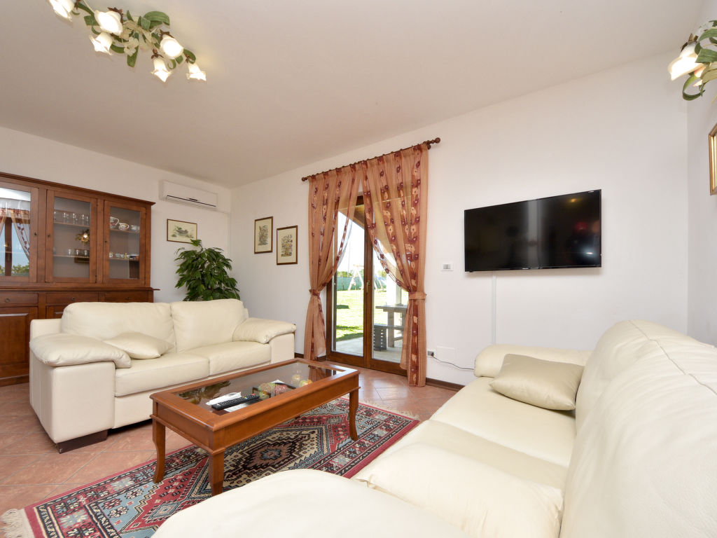 3-Zimmer-Haus 90 m2, Südlage. Wohn-/Esszimmer 35 m2 mit Sat-TV (Flachbildschirm), Klimaanlage. Ausgang zur Terrasse. 1 Zimmer mit 1 Doppelbett (2 x 90 cm, Länge 200 cm). 1 Zimmer mit 2 Betten (90 cm, Länge 200 cm). Offene Küche (4 Kochplatten, Backofen, Geschirrspüler, Tiefkühler, elektrische Kaffeemaschine). Dusche/WC. Terrasse 8 m2, überdacht. Terrassenmöbel, Liegestühle. Sicht auf das Schwimmbad. Zur Verfügung: Safe, Babybett, Haartrockner. Internet (Wireless LAN, gratis). Maximal 2 Haustiere/Hunde erlaubt.