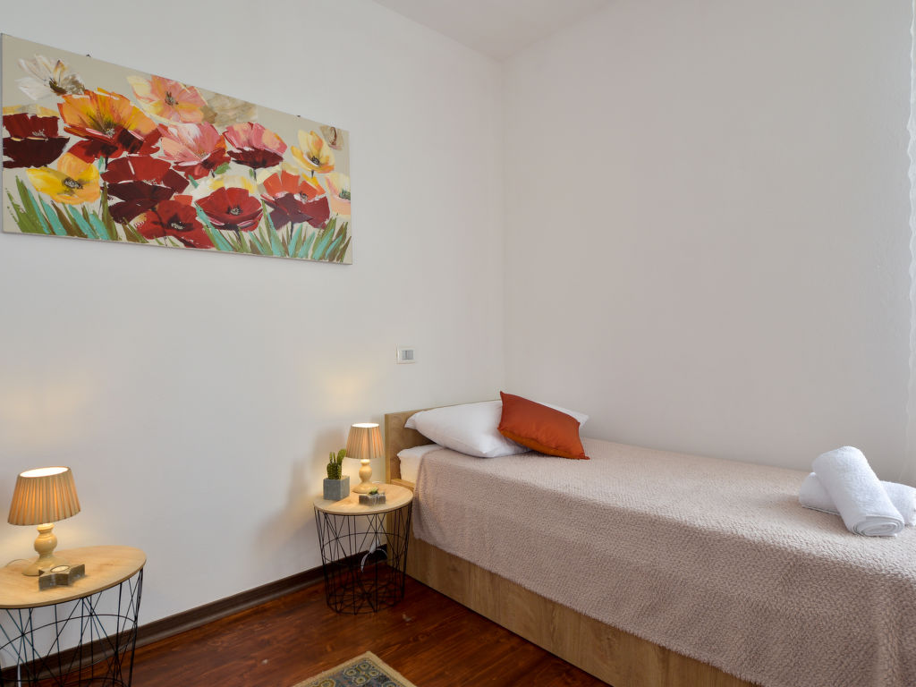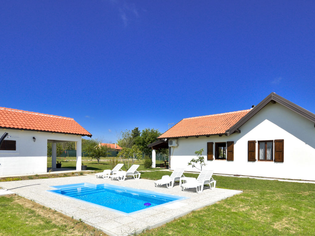 Smilčić 9 km von Novigrad: Einfamilienhaus "Ena". Im Weiler Donji Kašić, 4 km vom Zentrum von Smilčić, 12 km vom Zentrum von Novigrad, ruhige, sonnige Lage, 12 km vom Meer. Zur Alleinbenutzung: Grundstück 1'500 m2 (eingezäunt), Schwimmbad eckig (6 x 2 m, 16 m2, 140 cm tief, 01.05.-01.10.) mit Innentreppe. Aussendusche, Gartenmöbel, Grill, Kinderspielplatz (Rutschbahn). Im Hause: Internetzugang, Trampolin, Waschmaschine. Zufahrt bis zum Haus (100 m Naturweg). Parkplatz (für 2 Autos) beim Haus auf dem Grundstück. Einkaufsgeschäft 3 km, Restaurant 12 km, Kieselstrand 12 km, Steinstrand 12 km.
