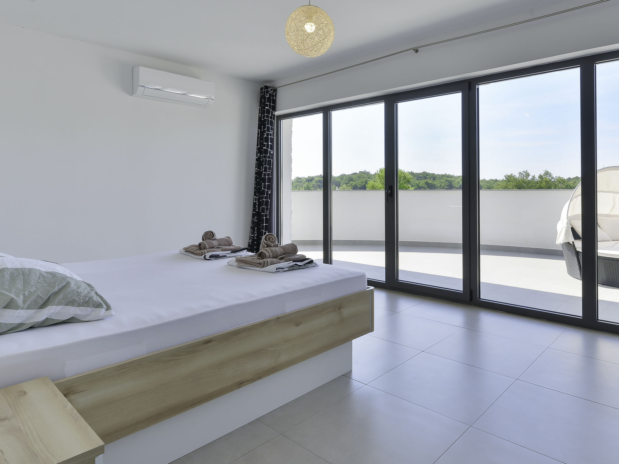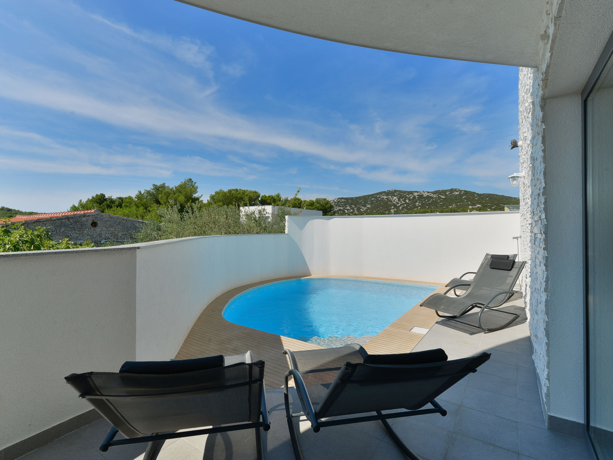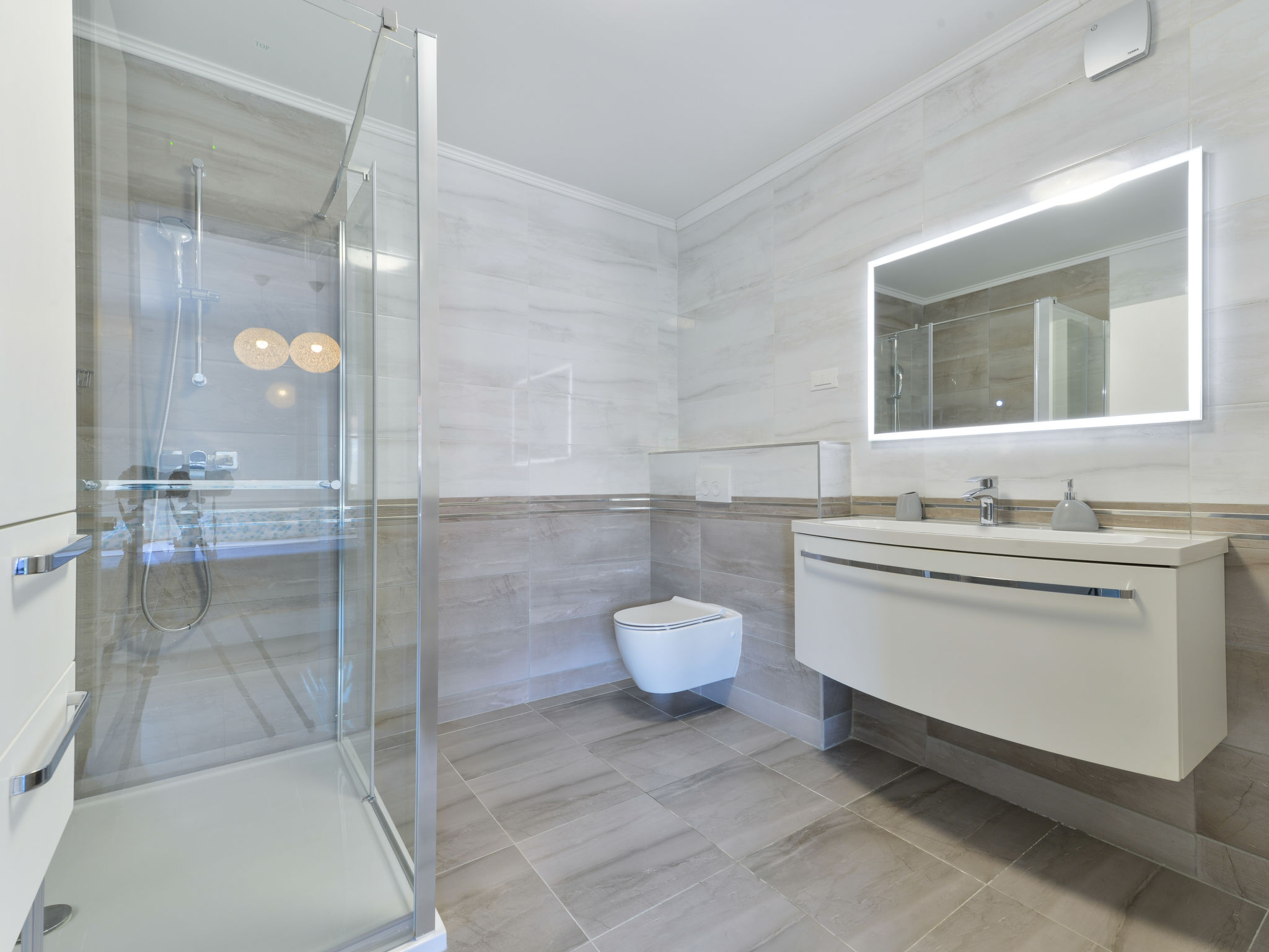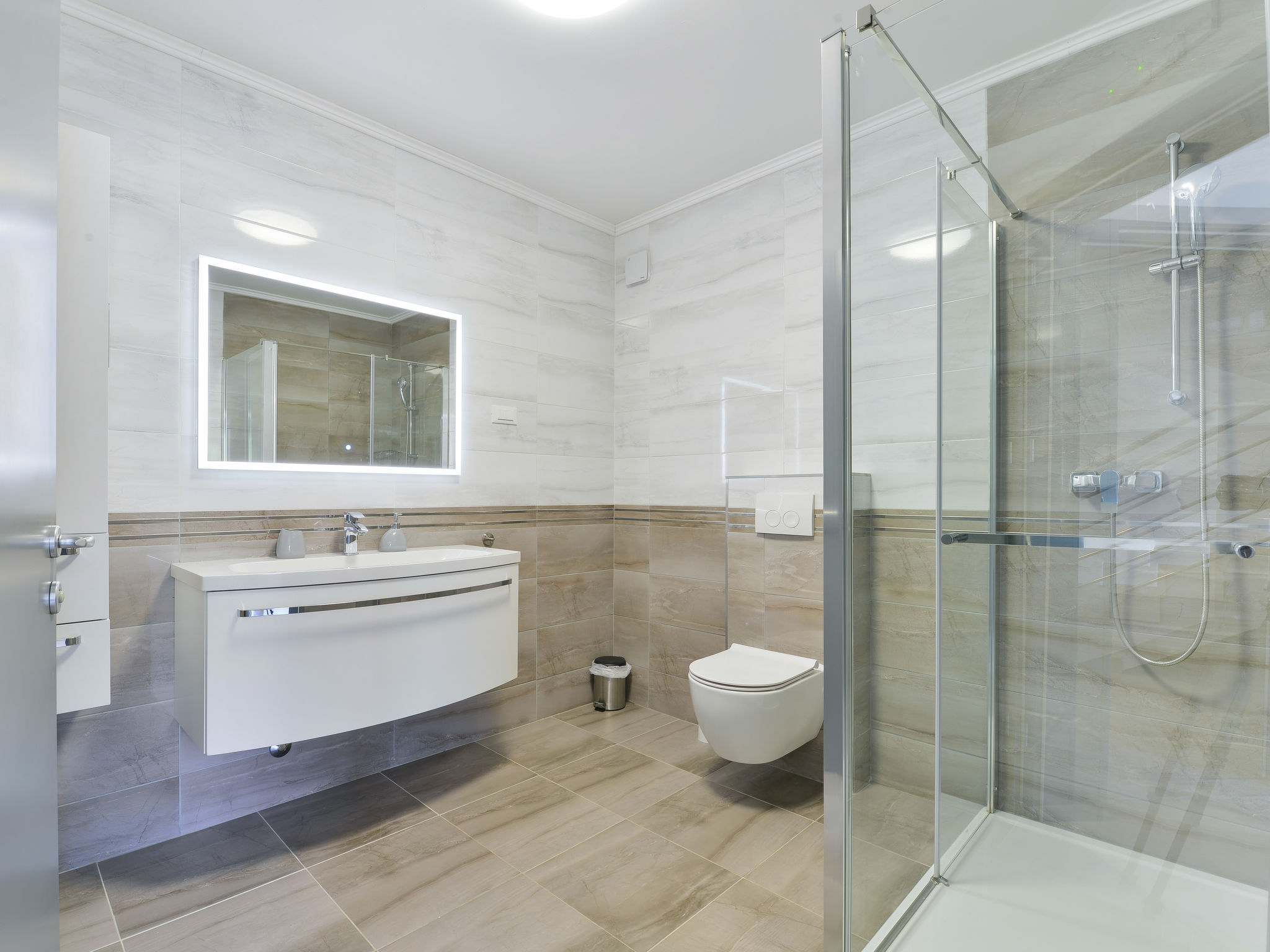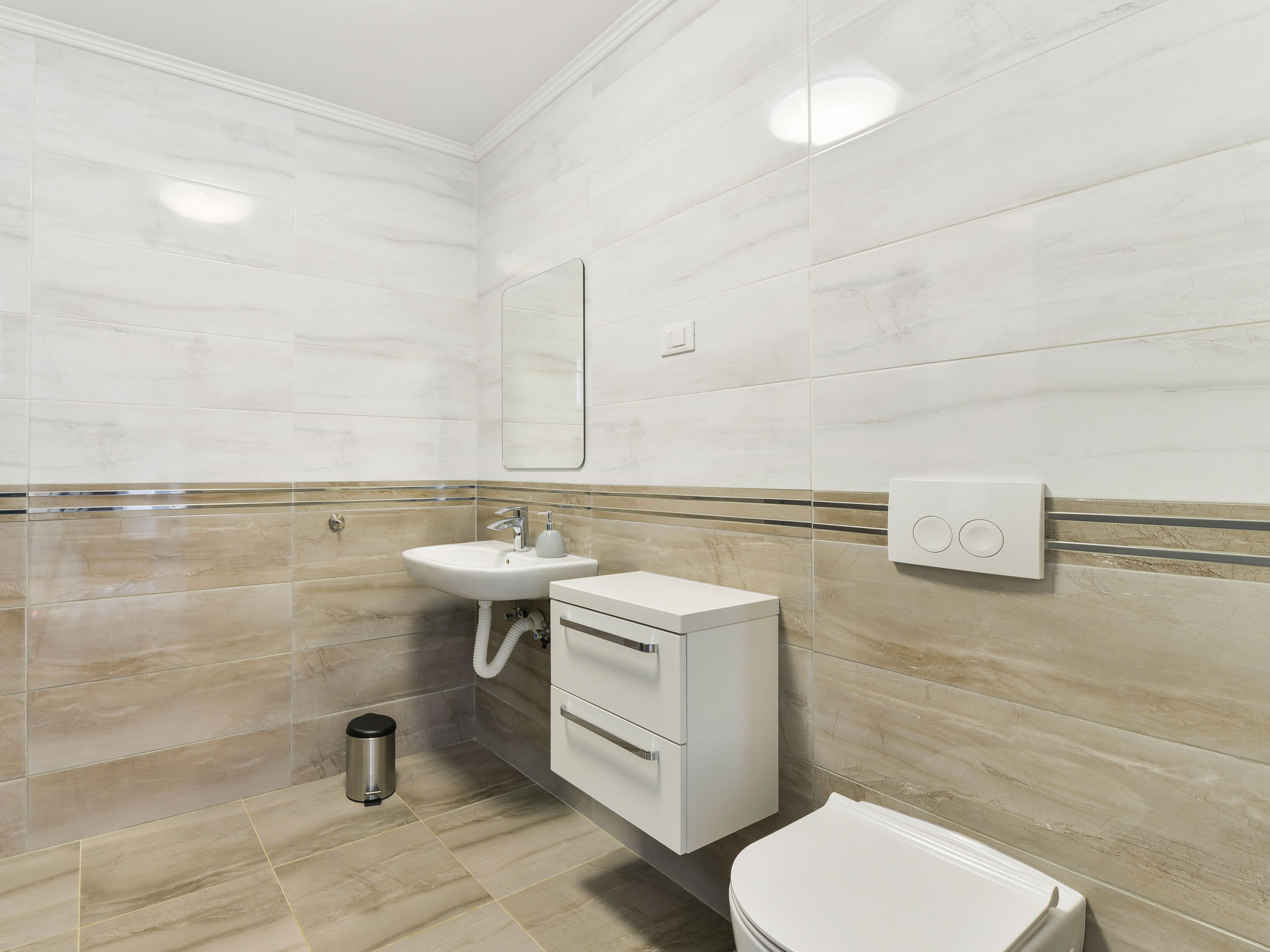 5-Zimmer-Doppelhaushälfte 260 m2 auf 2 Stockwerken, Südostlage. Modern eingerichtet: Wohn-/Esszimmer 45 m2 mit 1 Diwanbett (125 cm, Länge 220 cm), 1 Klappbett (80 cm, Länge 190 cm), Sat-TV (Flachbildschirm), Klimaanlage. Ausgang zur Terrasse. 1 Zimmer 20 m2 mit 1 franz. Bett (180 cm, Länge 200 cm), Dusche/WC und Sat-TV (Flachbildschirm), Klimaanlage. Ausgang zum Balkon. Offene Küche (Backofen, Geschirrspüler, 4 Glaskeramikherd Platten, Mikrowelle, Tiefkühler, elektrische Kaffeemaschine). Sep. WC. Obergeschoss: 2 Zimmer 20 m2, jedes Zimmer mit 1 franz. Bett (180 cm, Länge 200 cm), Dusche/WC und Sat-TV (Flachbildschirm), Klimaanlage. Ausgang zur Terrasse. 1 Zimmer 20 m2 mit 1 franz. Bett (180 cm, Länge 200 cm), Dusche/WC und Sat-TV (Flachbildschirm), Klimaanlage. Ausgang zum Balkon. Warmluftheizung. 2 Balkone 6 m2, Terrasse 80 m2 teilweise überdacht, Terrasse 38 m2, überdacht. Terrassenmöbel, Liegestühle. Sicht auf das Schwimmbad. Zur Verfügung: Safe, Bügeleisen, Babybett. Internet (Wireless LAN, gratis).