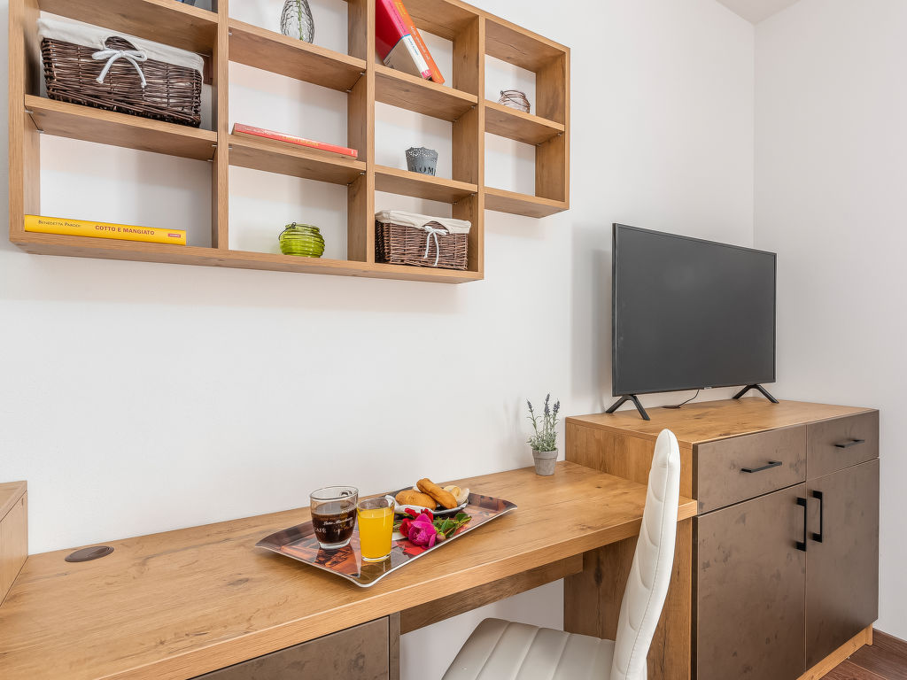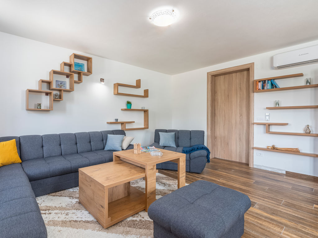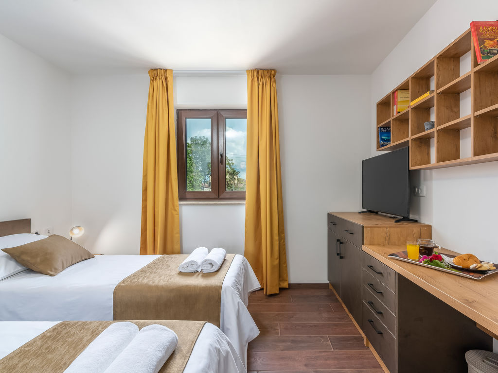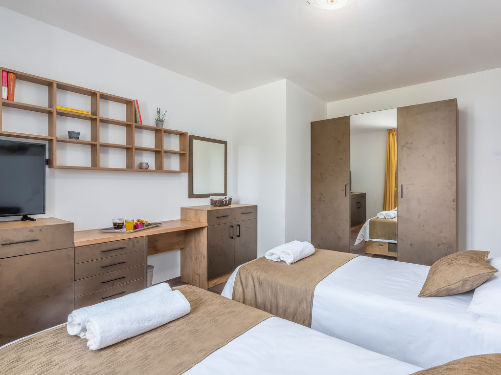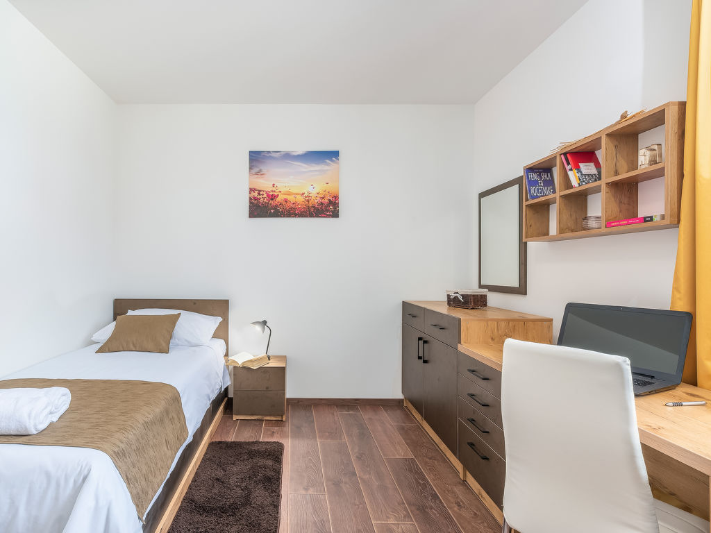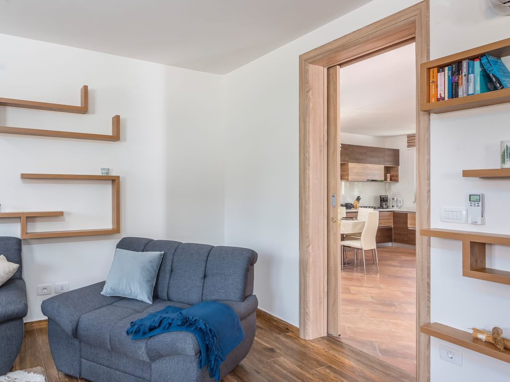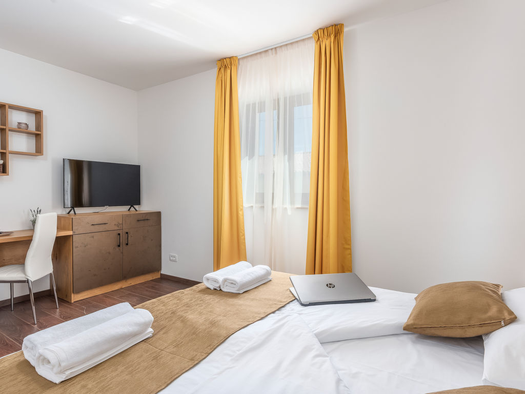 4-Zimmer-Haus 128 m2. Geschmackvoll eingerichtet: Wohnzimmer 18 m2 mit 1 Diwanbett (140 cm, Länge 200 cm), Sat-TV (Flachbildschirm), Klimaanlage. 1 Zimmer mit 1 franz. Bett (180 cm, Länge 200 cm), Sat-TV (Flachbildschirm), Klimaanlage. 1 Zimmer mit 2 Betten (80 cm, Länge 200 cm), Sat-TV (Flachbildschirm), Klimaanlage. 1 Zimmer mit 1 Bett (90 cm, Länge 200 cm), 1 Ausziehbett (Länge 200 cm), Sat-TV (Flachbildschirm), Klimaanlage. Offene Küche (4 Kochplatten, Backofen, Geschirrspüler, Mikrowelle, Tiefkühler, elektrische Kaffeemaschine) mit Esstisch und Sat-TV (Flachbildschirm), Klimaanlage. Bad/Bidet/WC, Dusche/WC. Terrasse 15 m2, überdacht. Gartengrill (mobil), Liegestühle. Zur Verfügung: Safe, Babybett, Haartrockner. Internet (Wireless LAN, gratis).