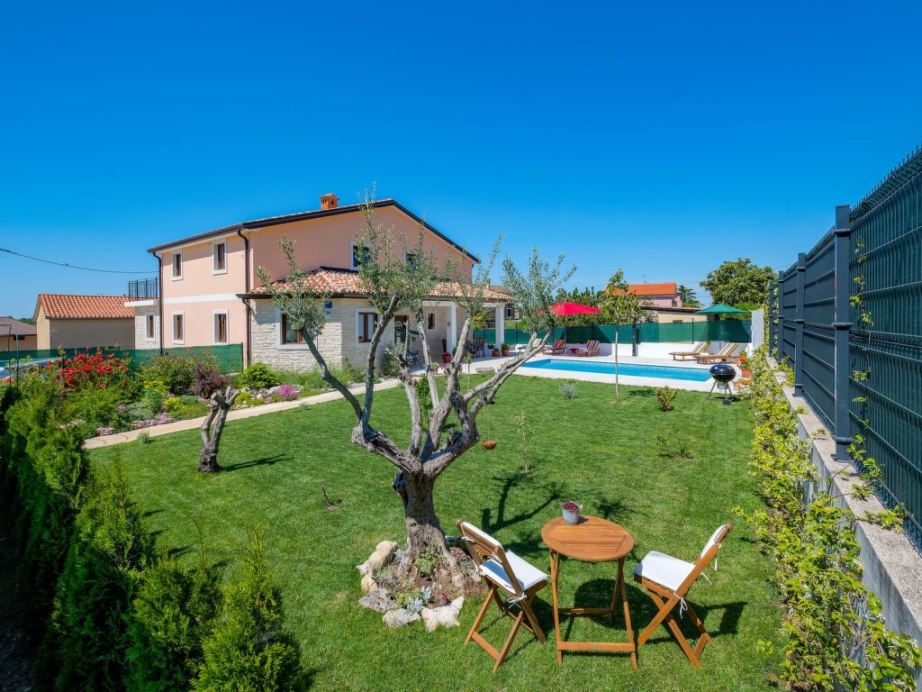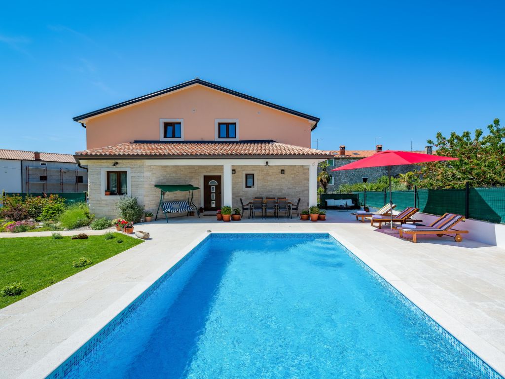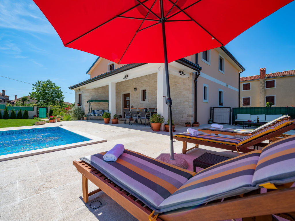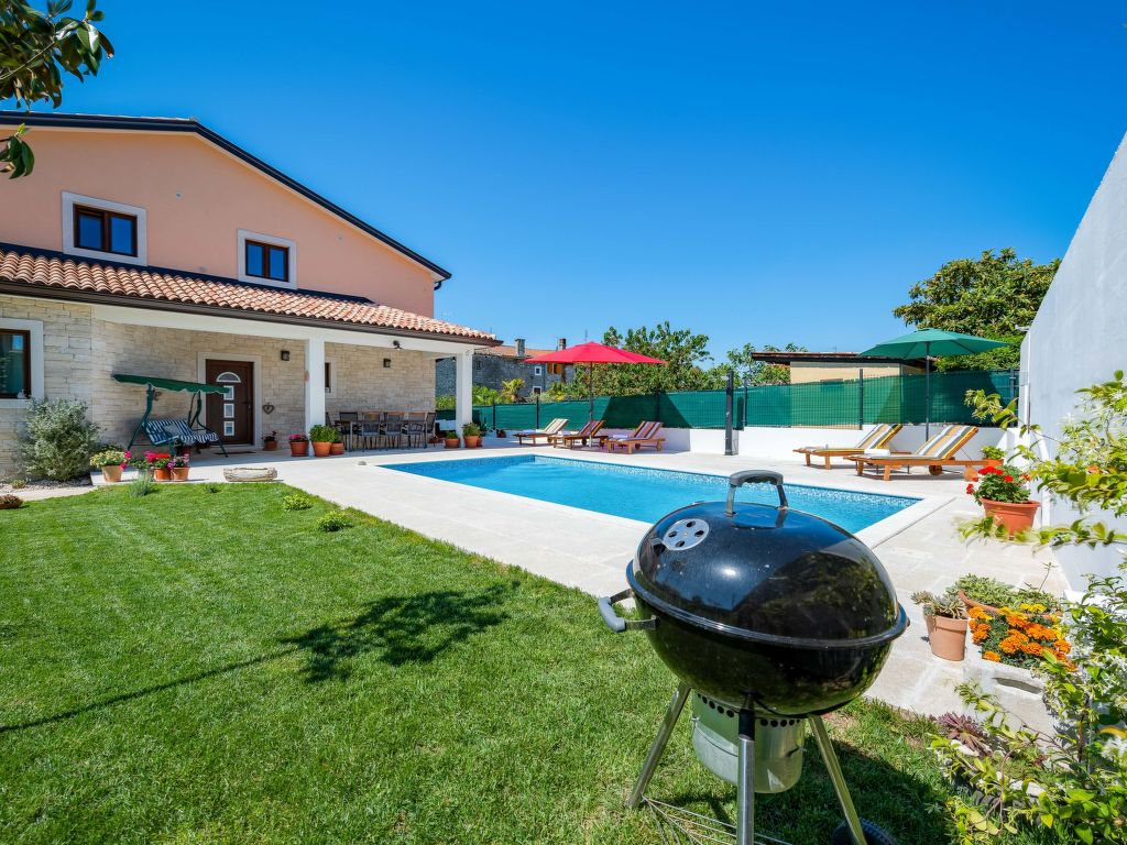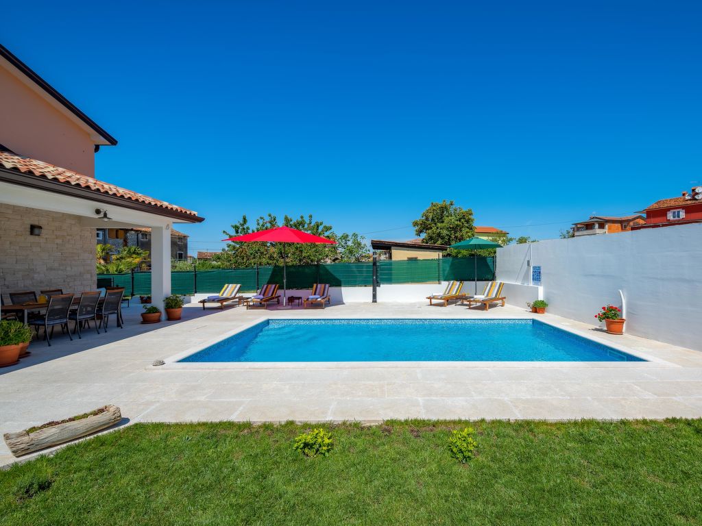 Schönes Einfamilienhaus "Villa Sa-Ra", Baujahr 2019. Im Weiler Nova Vas, 2.5 km vom Zentrum von Brtonigla, 8 km vom Zentrum von Novigrad, ruhige, sonnige Lage, 8 km vom Meer. Zur Alleinbenutzung: Grundstück 300 m2 (eingezäunt), Garten mit Rasen und Pflanzen, Schwimmbad eckig (7 x 4 m, 30 m2, 150 cm tief, 15.04.-10.10.) mit Innentreppe. Aussendusche, Gartenmöbel. Im Hause: Internetzugang, Waschmaschine. Parkplatz (für 4 Autos) beim Haus auf dem Grundstück. Einkaufsgeschäft 200 m, Supermarkt 8 km, Restaurant 200 m, Kieselstrand 8 km, Felsstrand 8 km. Wanderwege ab Haus 50 m, Radweg 100 m, Kinderspielplatz 15 m. Nahe gelegene Sehenswürdigkeiten: aquapark 3 km. Das veranstalten von Partys ist nicht gestattet. .