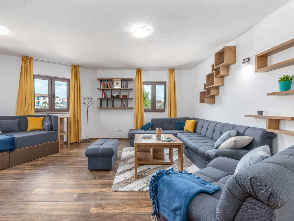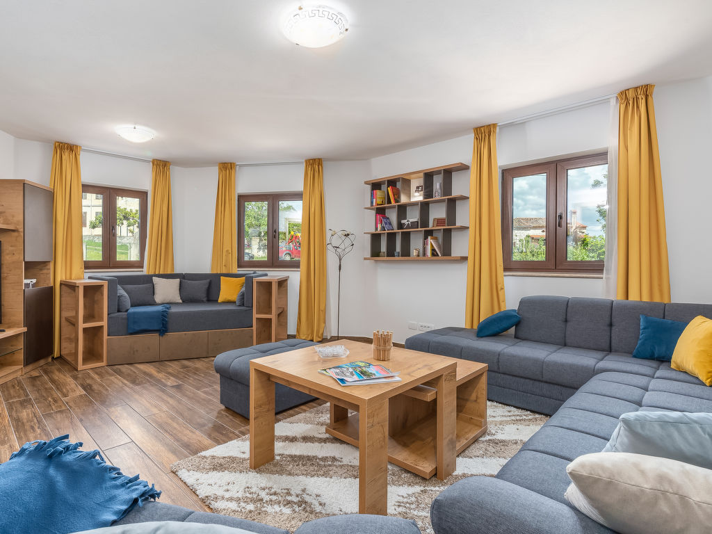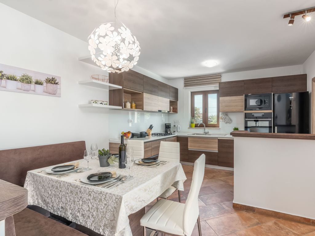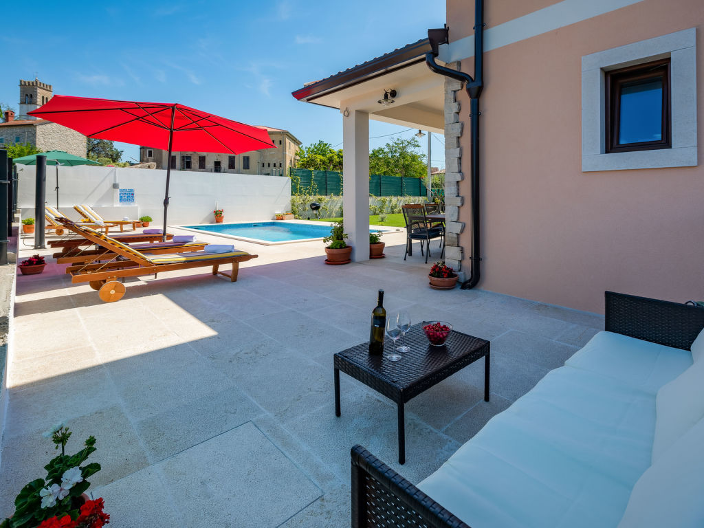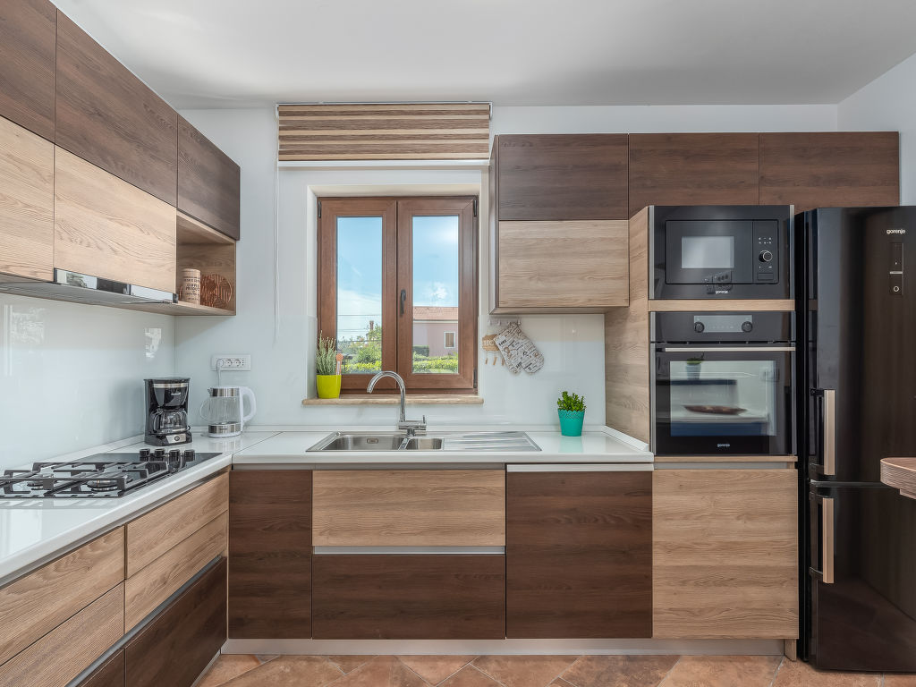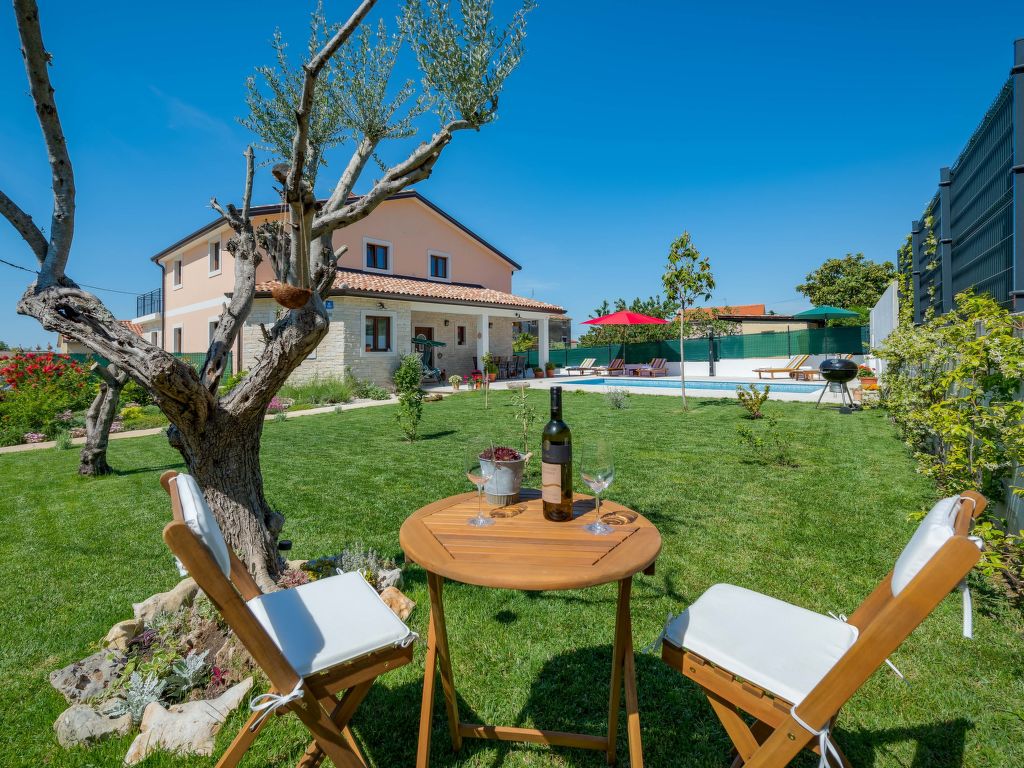 Schönes Einfamilienhaus "Villa Sa-Ra", Baujahr 2019. Im Weiler Nova Vas, 2.5 km vom Zentrum von Brtonigla, 8 km vom Zentrum von Novigrad, ruhige, sonnige Lage, 8 km vom Meer. Zur Alleinbenutzung: Grundstück 300 m2 (eingezäunt), Garten mit Rasen und Pflanzen, Schwimmbad eckig (7 x 4 m, 30 m2, 150 cm tief, 15.04.-10.10.) mit Innentreppe. Aussendusche, Gartenmöbel. Im Hause: Internetzugang, Waschmaschine. Parkplatz (für 4 Autos) beim Haus auf dem Grundstück. Einkaufsgeschäft 200 m, Supermarkt 8 km, Restaurant 200 m, Kieselstrand 8 km, Felsstrand 8 km. Wanderwege ab Haus 50 m, Radweg 100 m, Kinderspielplatz 15 m. Nahe gelegene Sehenswürdigkeiten: aquapark 3 km. Das veranstalten von Partys ist nicht gestattet. .