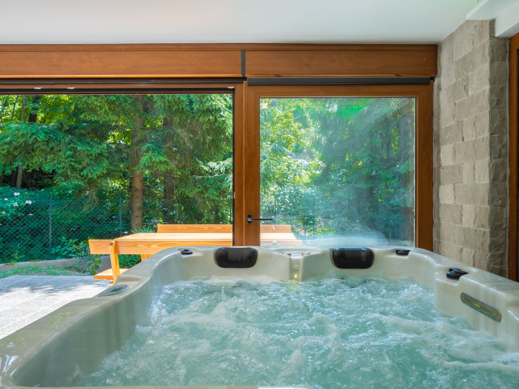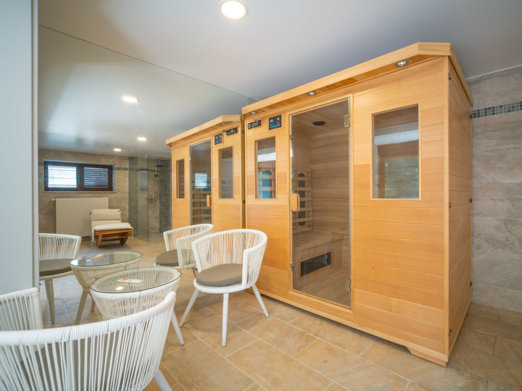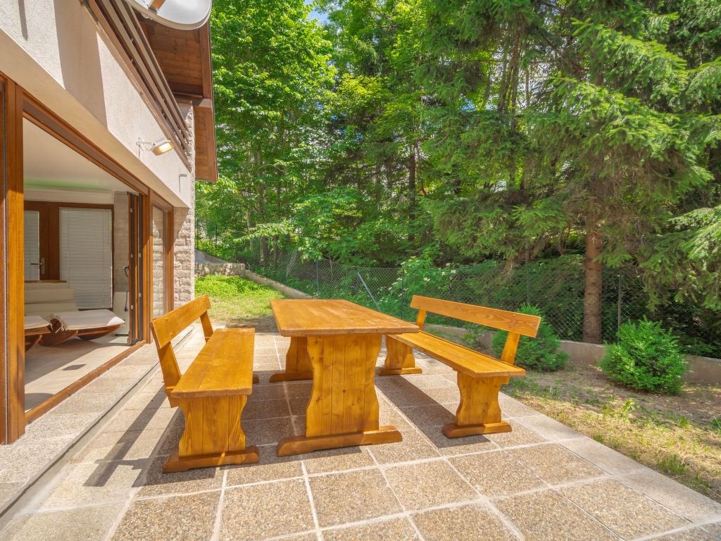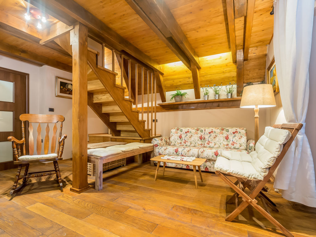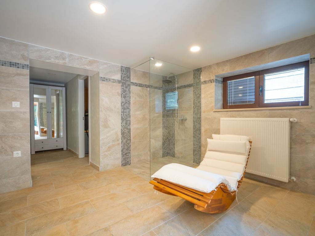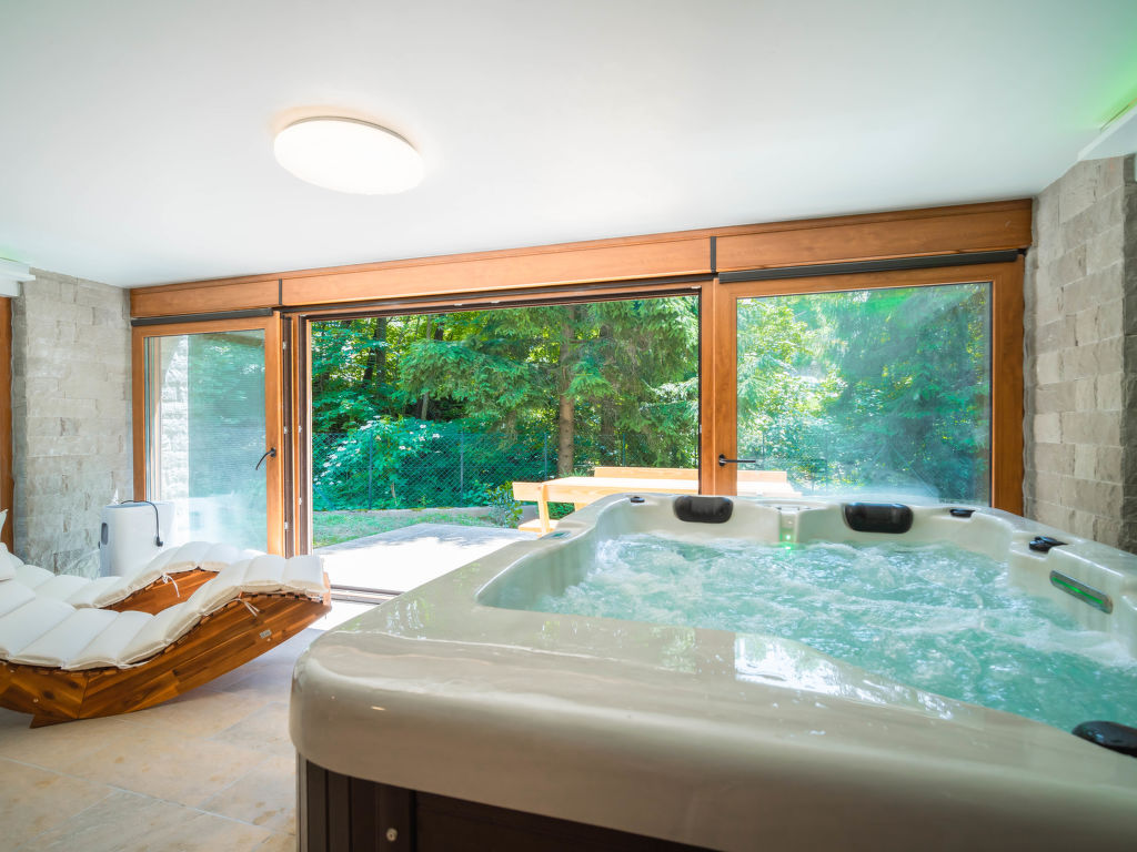 3-Zimmer-Chalet 110 m2 auf 3 Stockwerken. Dusche/Bidet/WC. Obergeschoss: (Aussentreppe) Wohn-/Esszimmer 25 m2 mit Kabel-TV (Flachbildschirm), Klimaanlage. Ausgang zur Terrasse. Offene Küche (Backofen, 4 Glaskeramikherd Platten, Mikrowelle). Bad/WC. Dachgeschoss: 2 abgeschrägte Zimmer, Deckenhöhe 105 - 280 cm, jedes Zimmer mit 1 Doppelbett (2 x 80 cm, Länge 190 cm). Heizung. Terrasse 18 m2, überdacht. Terrassenmöbel, Liegestühle. Zur Verfügung: Internet (Wireless LAN, gratis). Erdgeschoss: Wellnesslandschaft mit Sprudelbad, Infrarotsauna, Liegestühlen (alles im Preis inbegriffen). Kleines Fenster in einem Schlafzimmer in der obersten Etage. Heizung ist nur im Zeitraum ab 01.09. bis 31.05. möglich.