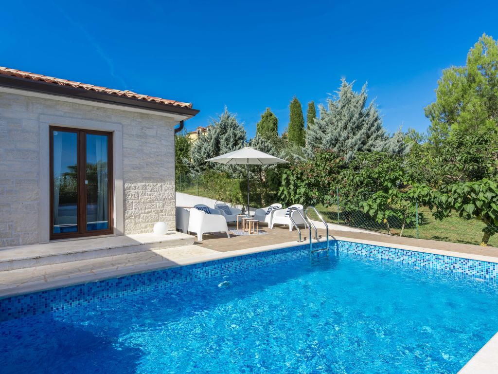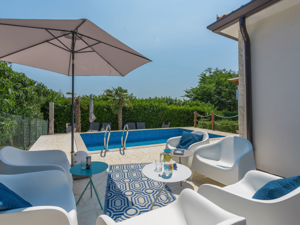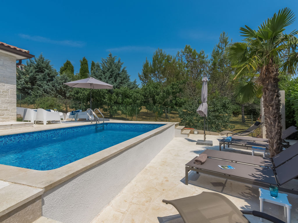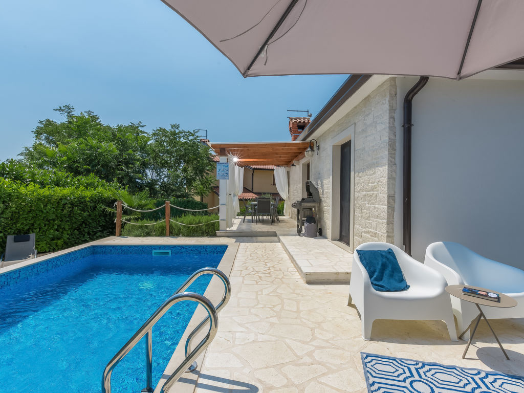 Schönes Einfamilienhaus "Villa Joy". Im Weiler Nova Vas, 2.5 km vom Zentrum von Brtonigla, 8 km vom Zentrum von Novigrad, ruhige, sonnige Lage, 8 km vom Meer. Zur Alleinbenutzung: Grundstück 500 m2 (eingezäunt), Garten mit Rasen und Pflanzen, Schwimmbad eckig (6 x 4 m, 150 cm tief, 08.05.-15.10.). Aussendusche, Gartenmöbel. Im Hause: Internetzugang, Waschmaschine. Parkplatz (für 2 Autos) beim Haus auf dem Grundstück. Einkaufsgeschäft 200 m, Supermarkt 8 km, Restaurant 200 m, Kieselstrand 8 km, Felsstrand 8 km. Wanderwege ab Haus 50 m, Radweg 100 m. Nahe gelegene Sehenswürdigkeiten: aquapark 3 km.
