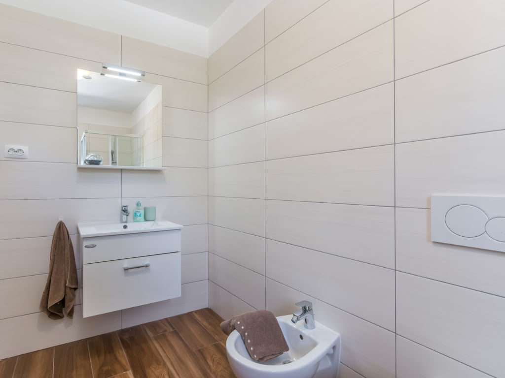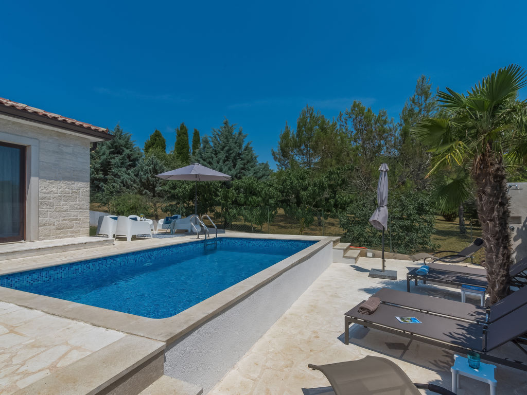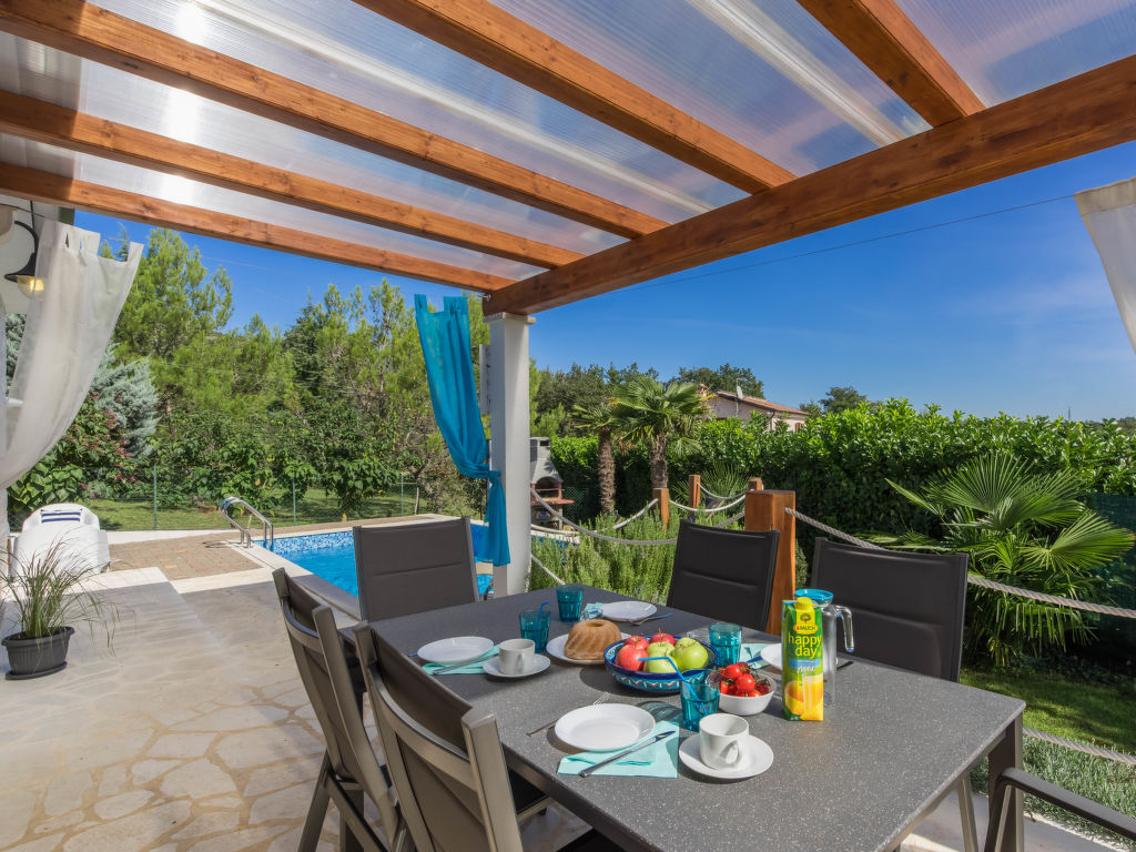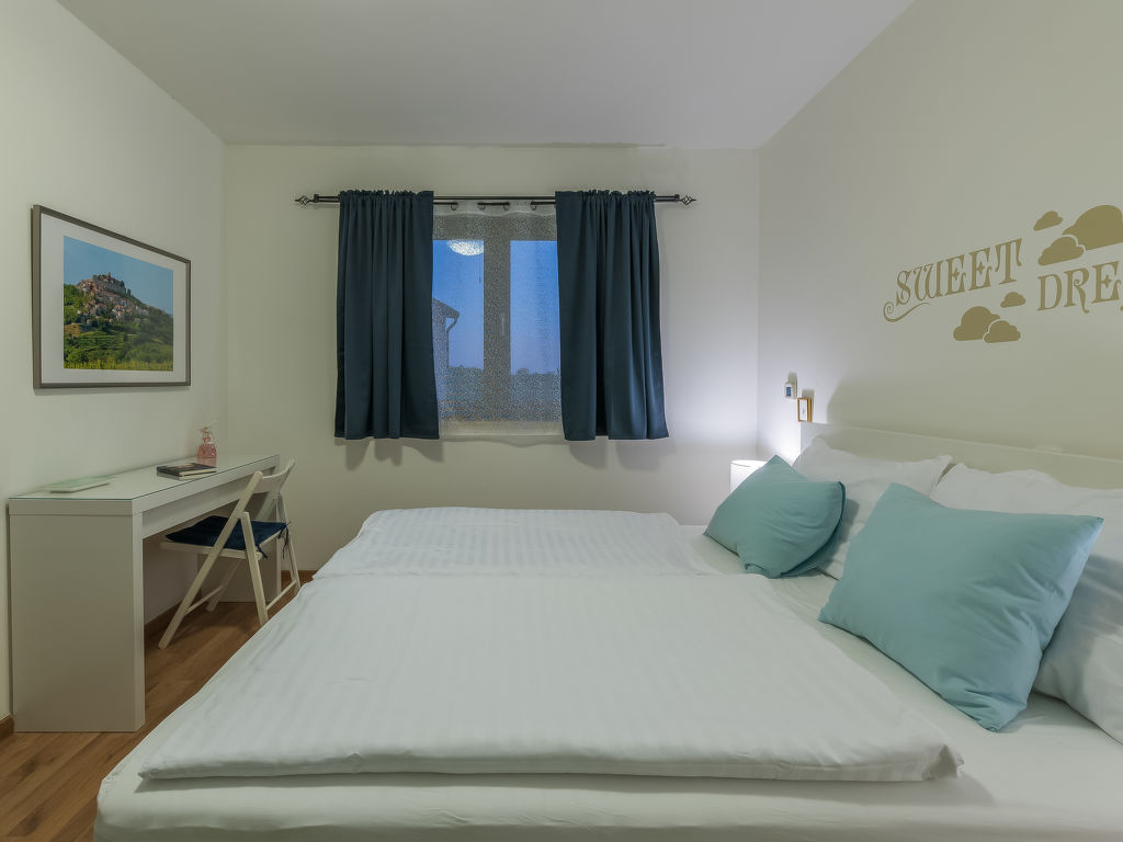 Schönes Einfamilienhaus "Villa Joy". Im Weiler Nova Vas, 2.5 km vom Zentrum von Brtonigla, 8 km vom Zentrum von Novigrad, ruhige, sonnige Lage, 8 km vom Meer. Zur Alleinbenutzung: Grundstück 500 m2 (eingezäunt), Garten mit Rasen und Pflanzen, Schwimmbad eckig (6 x 4 m, 150 cm tief, 08.05.-15.10.). Aussendusche, Gartenmöbel. Im Hause: Internetzugang, Waschmaschine. Parkplatz (für 2 Autos) beim Haus auf dem Grundstück. Einkaufsgeschäft 200 m, Supermarkt 8 km, Restaurant 200 m, Kieselstrand 8 km, Felsstrand 8 km. Wanderwege ab Haus 50 m, Radweg 100 m. Nahe gelegene Sehenswürdigkeiten: aquapark 3 km.