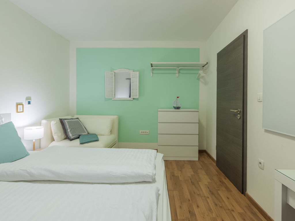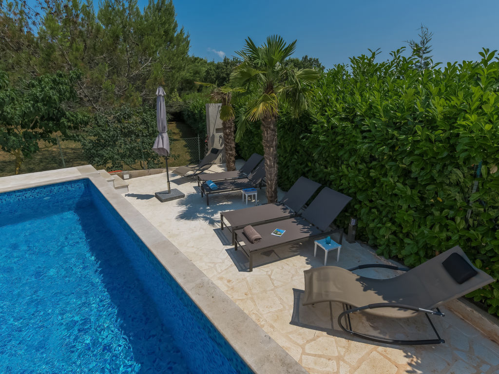4-Zimmer-Haus 100 m2. Geschmackvoll eingerichtet: Wohn-/Esszimmer 20 m2 mit Sat-TV (Flachbildschirm), Klimaanlage. Ausgang zur Terrasse. 1 Zimmer mit 1 Doppelbett (2 x 90 cm, Länge 200 cm), Klimaanlage. 1 Zimmer mit 1 Doppelbett (2 x 90 cm, Länge 200 cm). 1 Zimmer mit 1 franz. Bett (160 cm, Länge 200 cm), Dusche/Bidet/WC und Sat-TV (Flachbildschirm), Klimaanlage. Ausgang zum Schwimmbad. Offene Küche (Backofen, Geschirrspüler, 4 Glaskeramikherd Platten, Tiefkühler, elektrische Kaffeemaschine). Dusche/Bidet/WC, sep. WC. Terrasse 15 m2, überdacht. Terrassenmöbel, Gartengrill (mobil), Liegestühle. Sicht auf das Schwimmbad. Zur Verfügung: Haartrockner. Internet (Wireless LAN, gratis). Bitte beachten: Maximal 1 Haustier/Hund erlaubt. Rauchmelder.