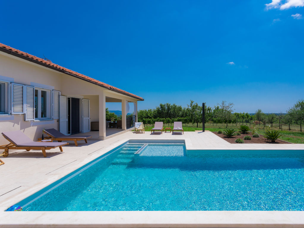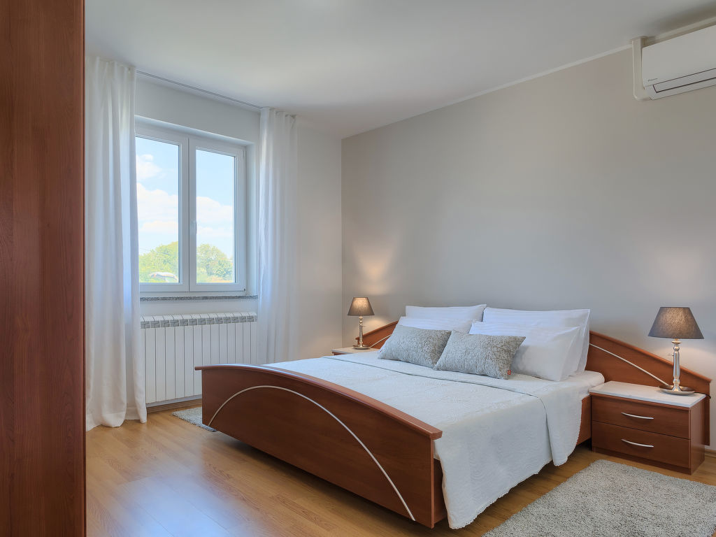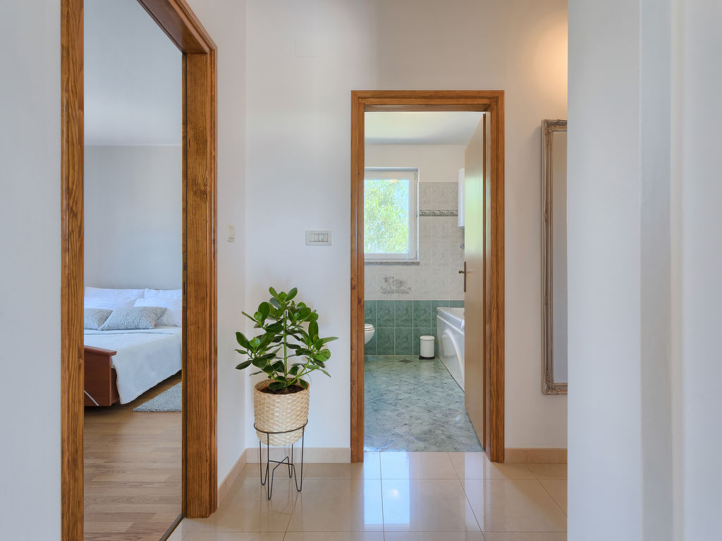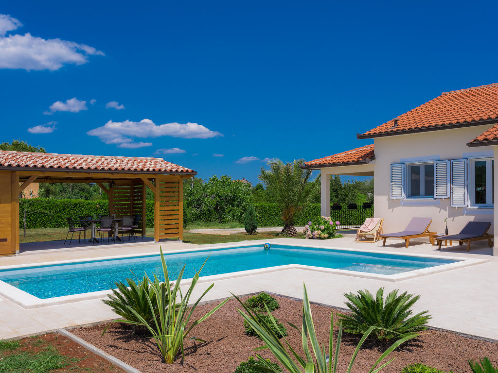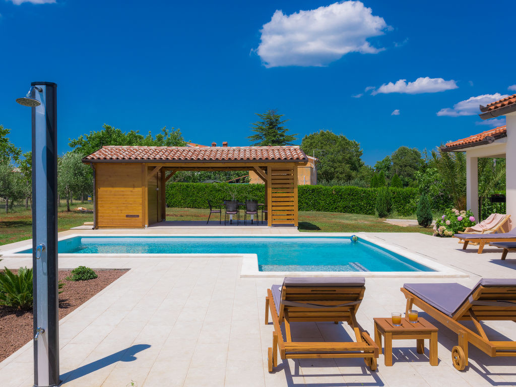 Schönes Einfamilienhaus "Eugen". Im Weiler Camlići, 5 km vom Zentrum von Barban, ruhige, sonnige Lage, 14 km vom Meer, im Grünen. Zur Alleinbenutzung: Grundstück 3'500 m2 mit Rasen, Obstgarten, Schwimmbad eckig, beheizt (8 x 4 m, 150 cm tief, 15.04.-15.10.) mit Innentreppe. WC im Poolbereich, Kinderbecken, Aussendusche, Terrasse (18 m2), Gartenmöbel. Im Hause: Internetzugang, Waschmaschine. Parkplatz (für 3 Autos) beim Haus auf dem Grundstück. Einkaufsgeschäft 5 km, Supermarkt 5 km, Restaurant 5 km, Kieselstrand 14 km. Reitstall 12.5 km, Wanderwege ab Haus 50 m, Radweg 100 m. Nahe gelegene Sehenswürdigkeiten: adventure park 11.5 km. Schwimmbad beheizt (extra). Es ist notwendig 7 Tage im Voraus bekannt zu geben, ob die Schwimmbadheizung eingeschaltet werden soll. Das veranstalten von Partys ist nicht gestattet. Keine Vermietung an Jugendgruppen.