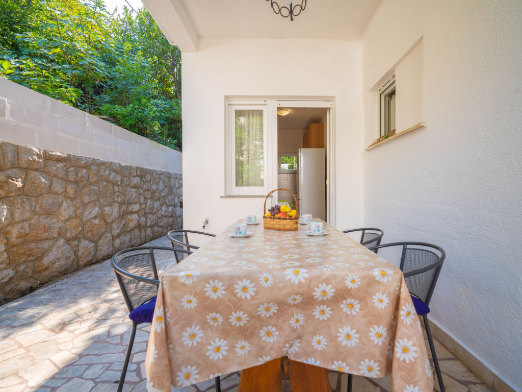 Jadranovo 7 km von Crikvenica: Zweifamilienhaus "Iris". 500 m vom Zentrum von Jadranovo, sonnige Lage, 5 m vom Meer, 5 m vom Strand. Zur Alleinbenutzung: Terrasse (35 m2). Im Hause: Internetzugang. Einzelgarage (extra), öffentliche Parkplätze extra. Einkaufsgeschäft 50 m, Restaurant, Kieselstrand, Strandbad 100 m, betonierter Strand 5 m.